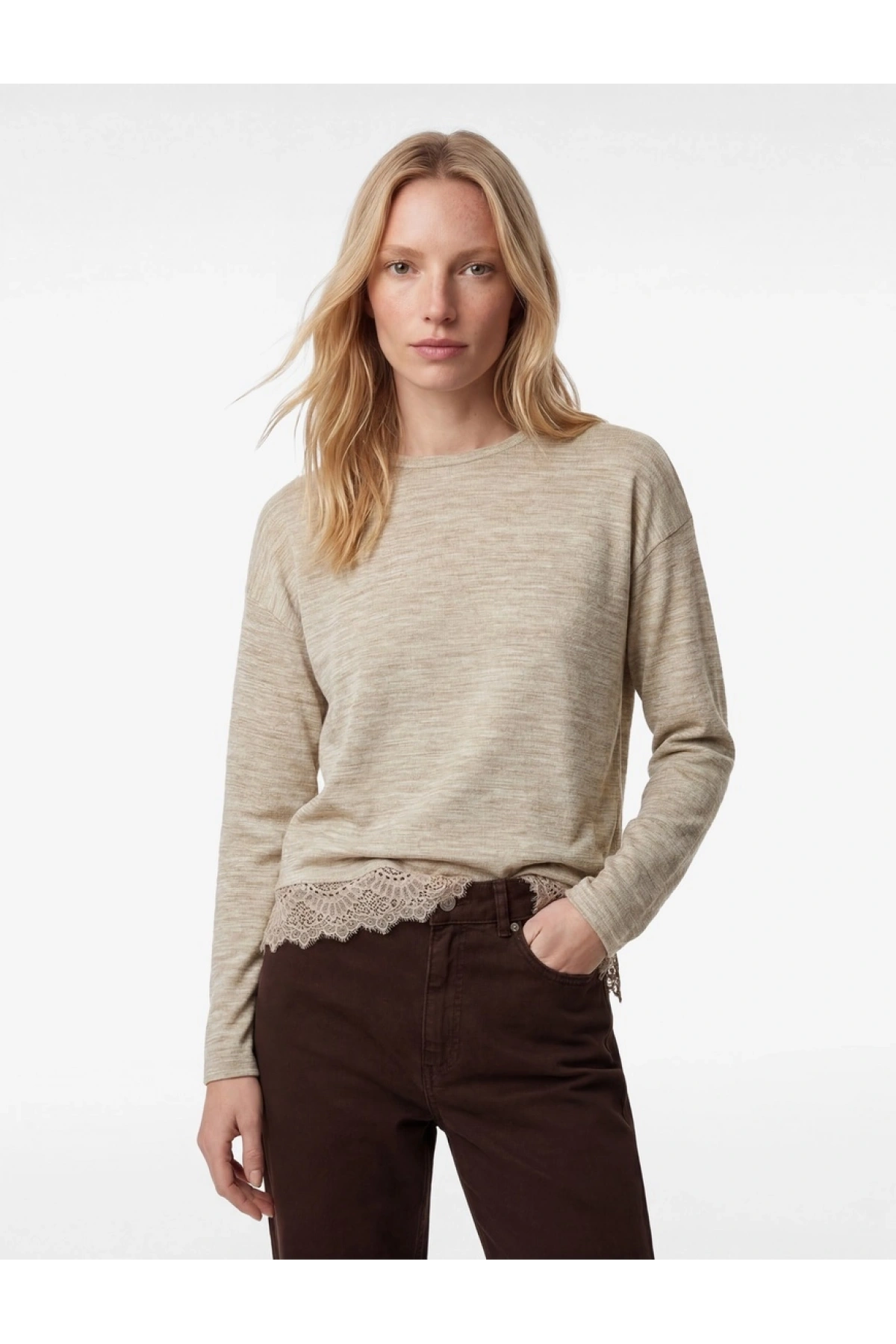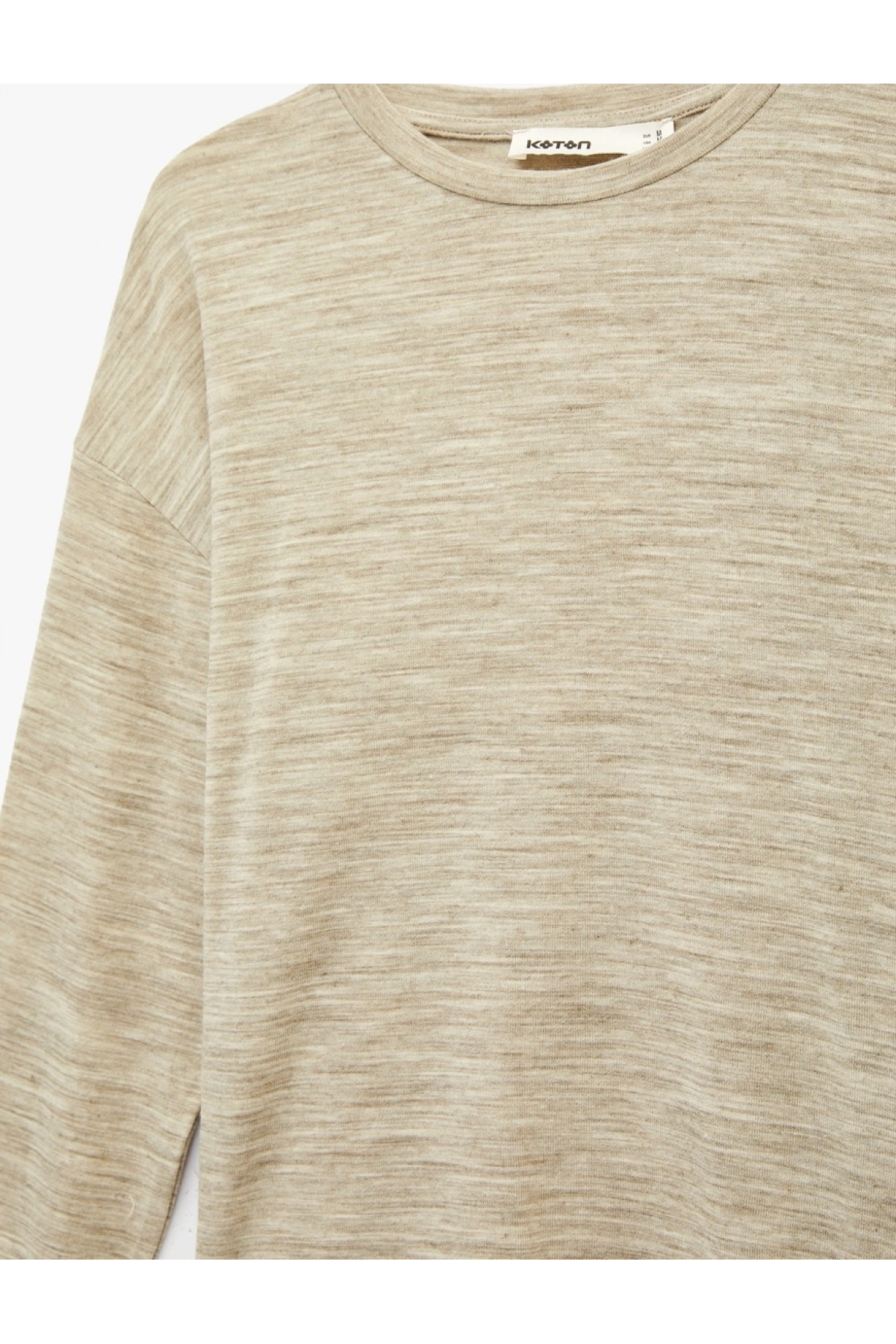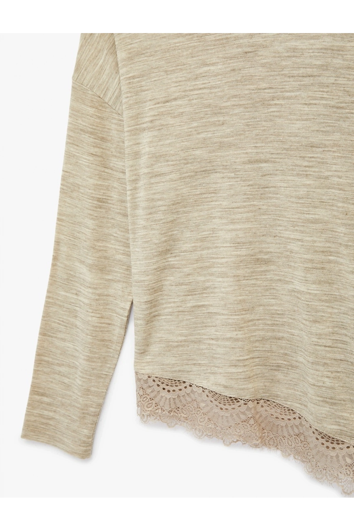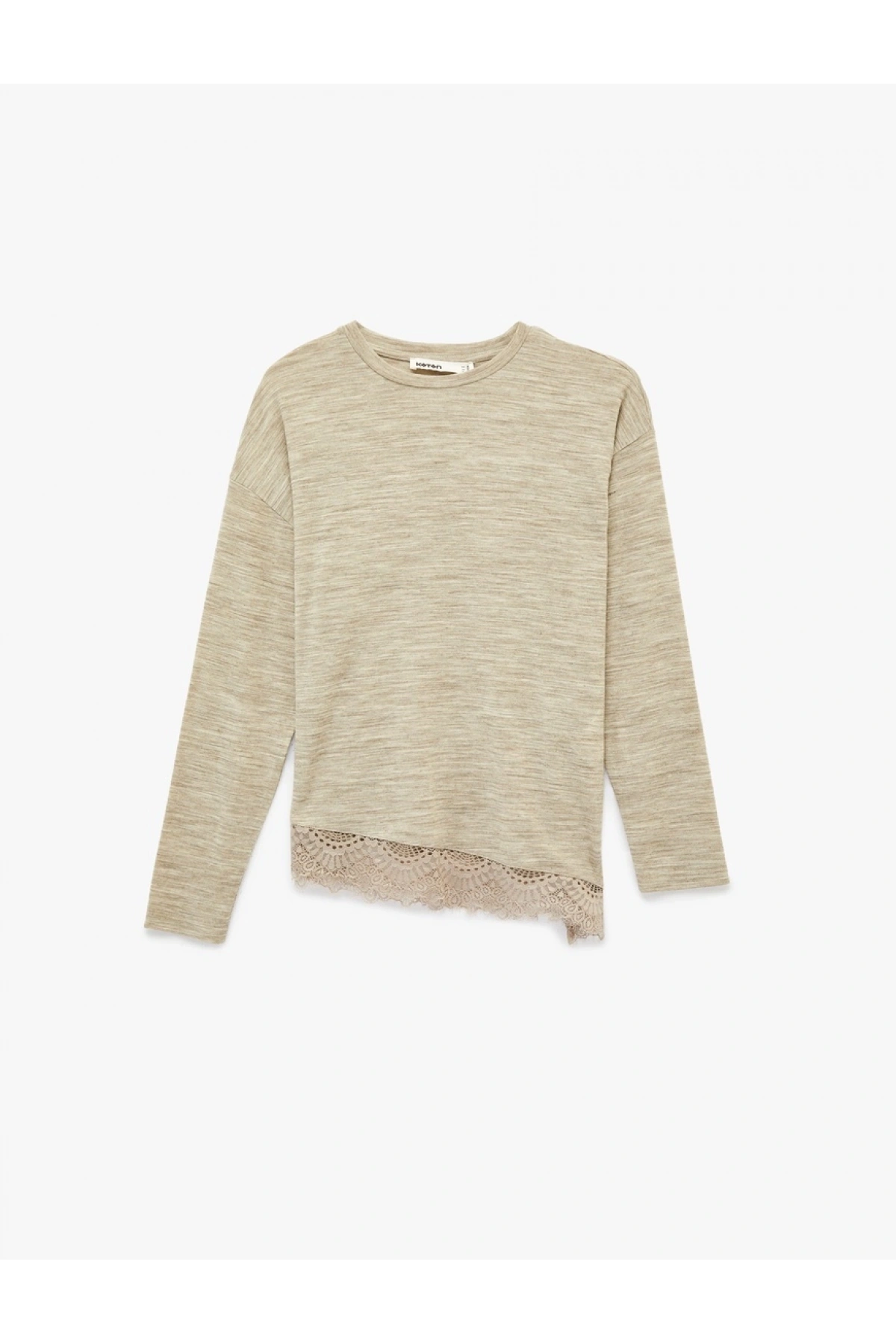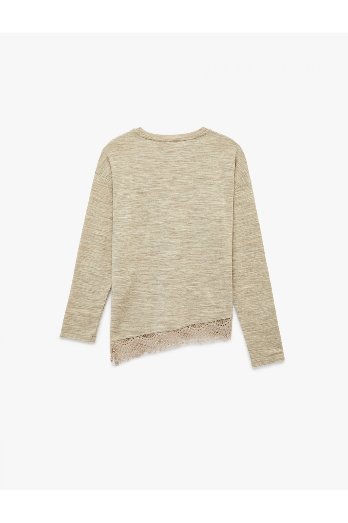 Koton Bisiklet Yaka Uzun Kollu Asimetrik Kesim Dantel Detaylı Tişört