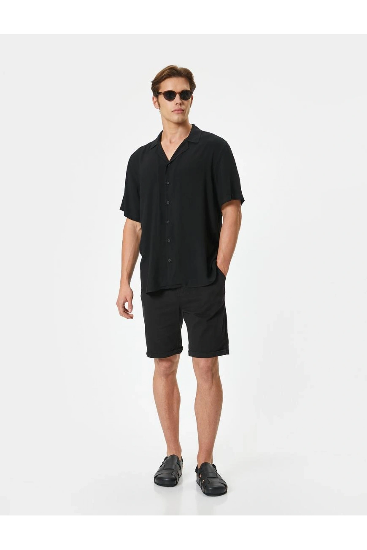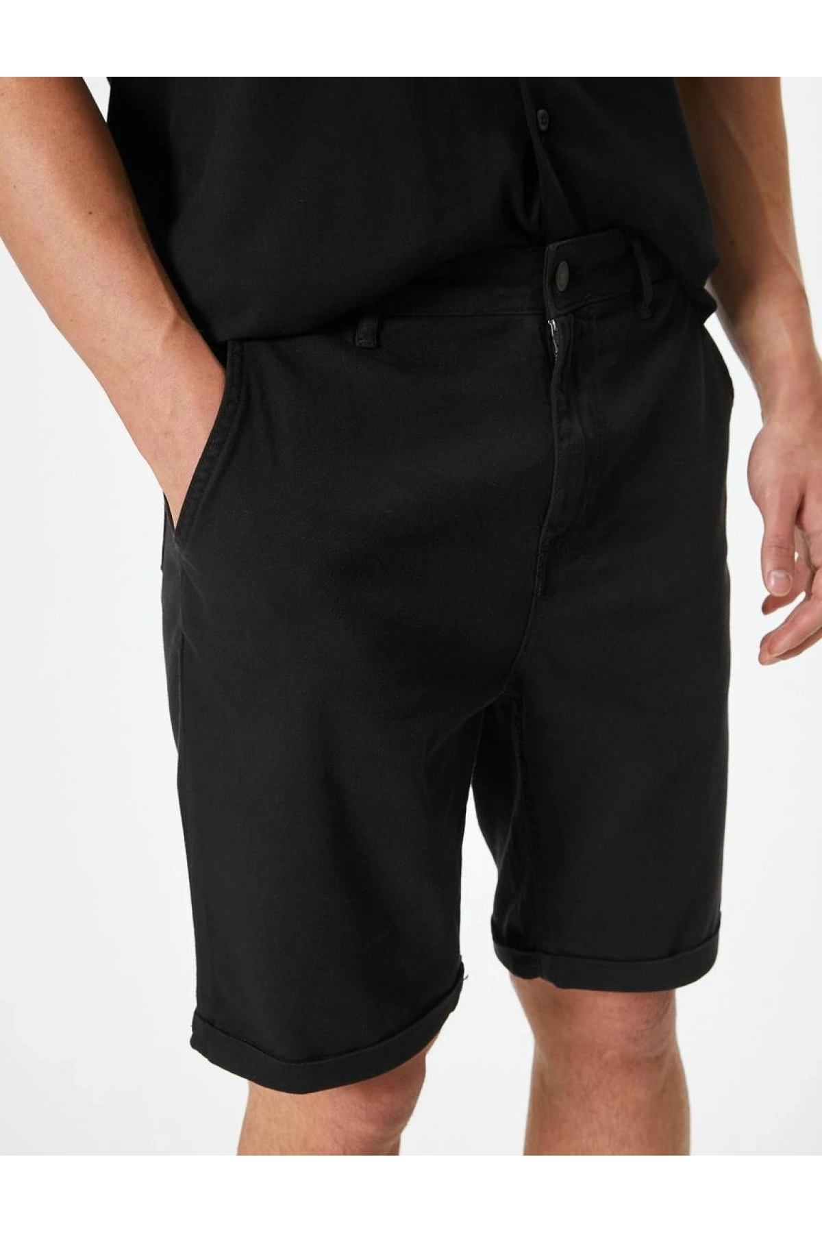 Kumaş Şort Bermuda Chino Slim Fit Düğmeli Cepli Katlı Paça