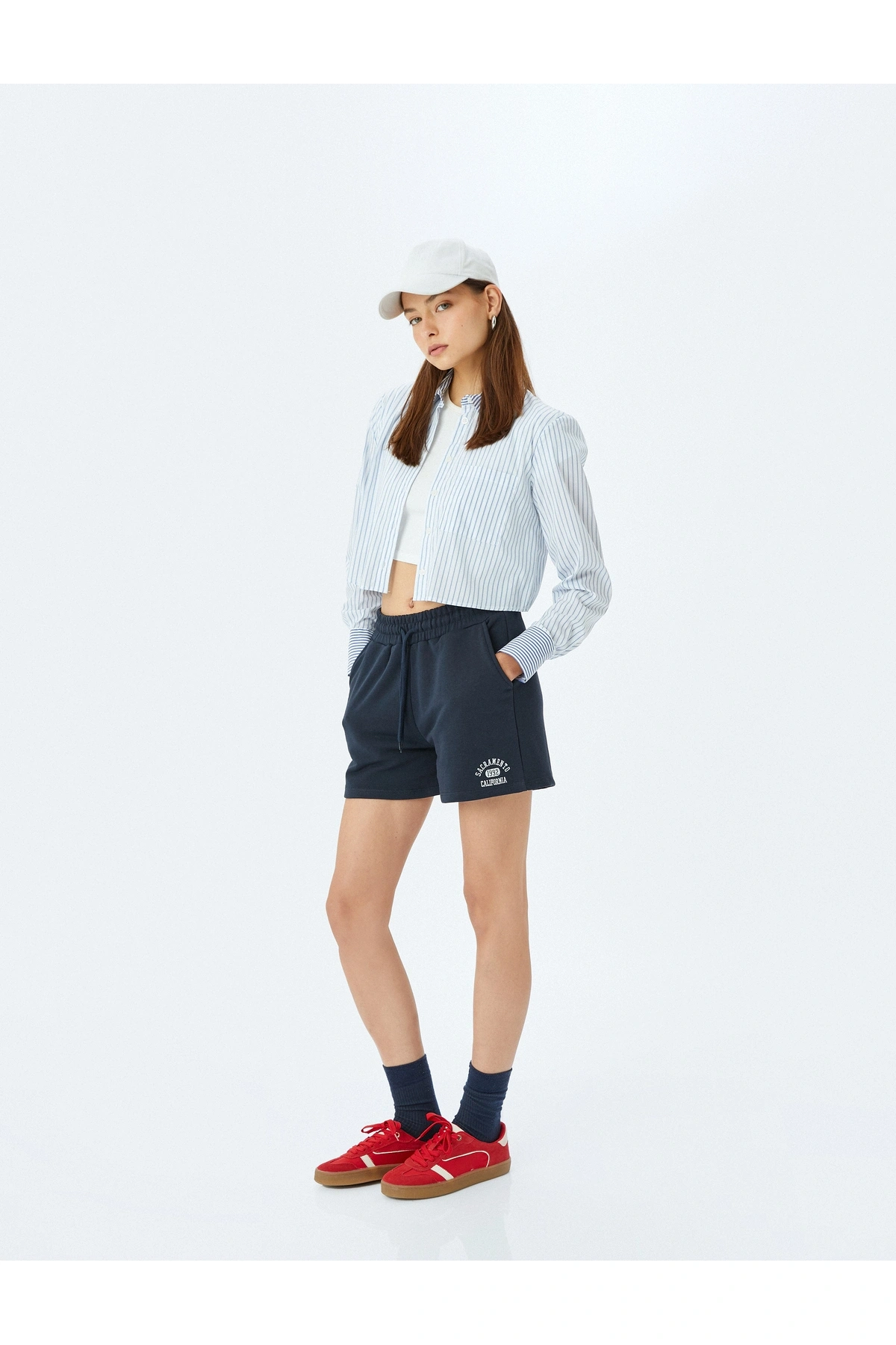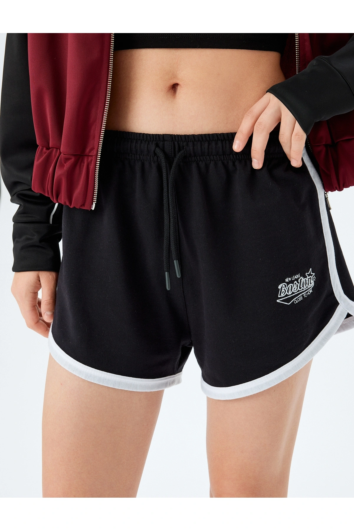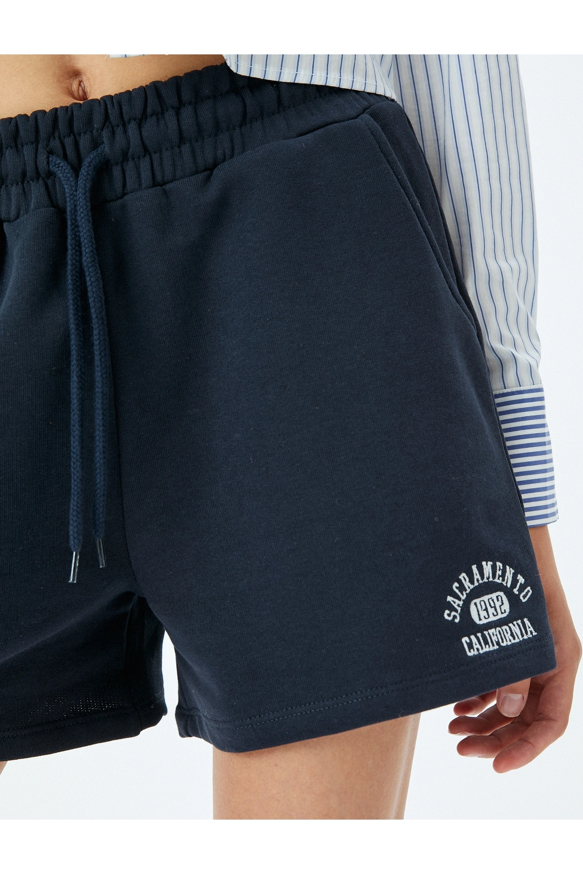 Koton Cep Detaylı Slogan Baskılı Beli Bağcıklı Biyeli Şort