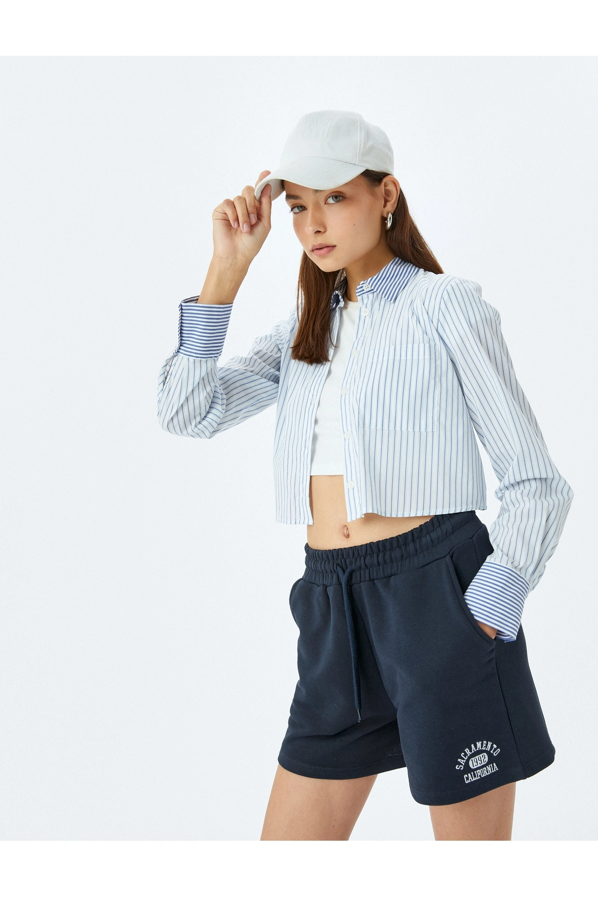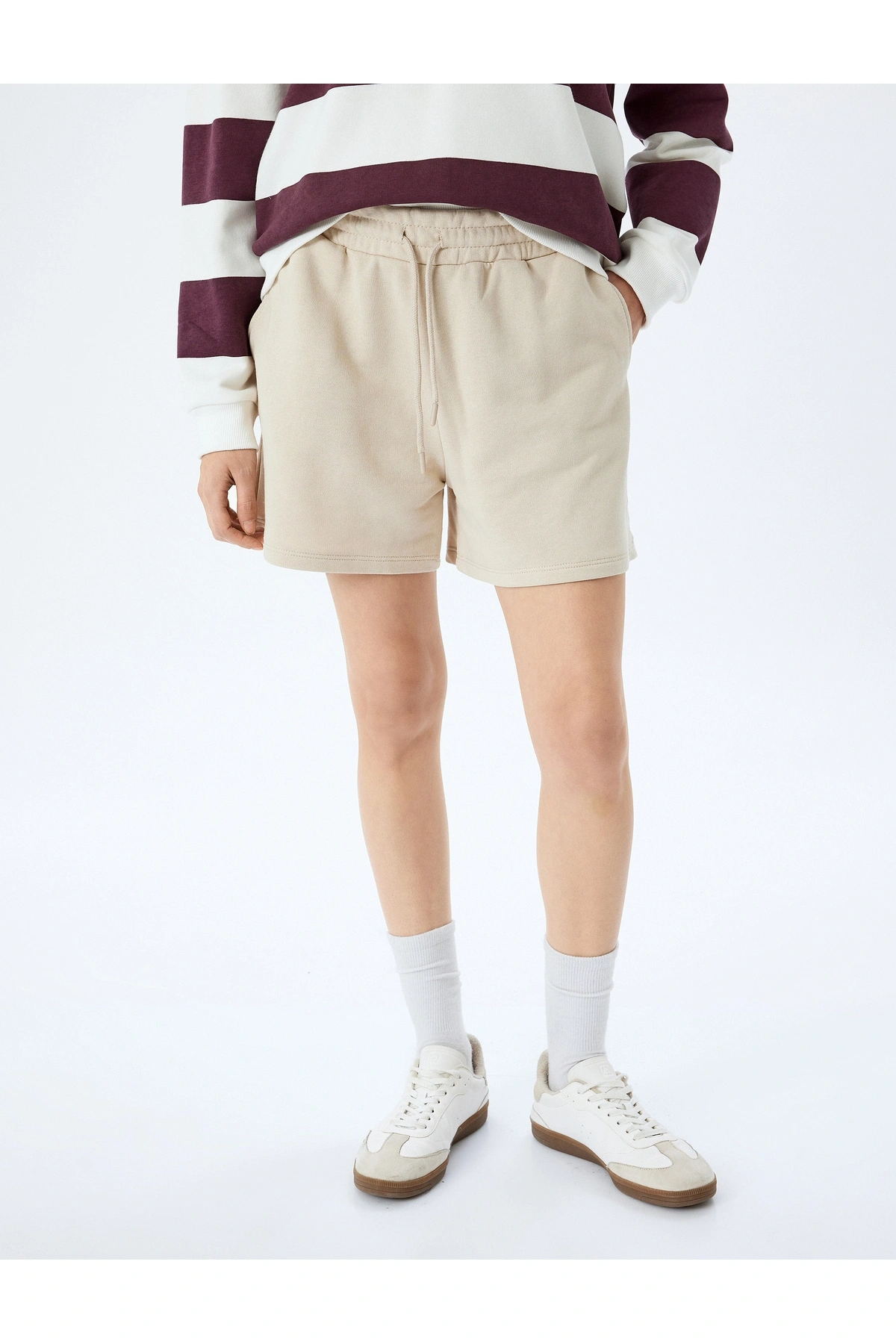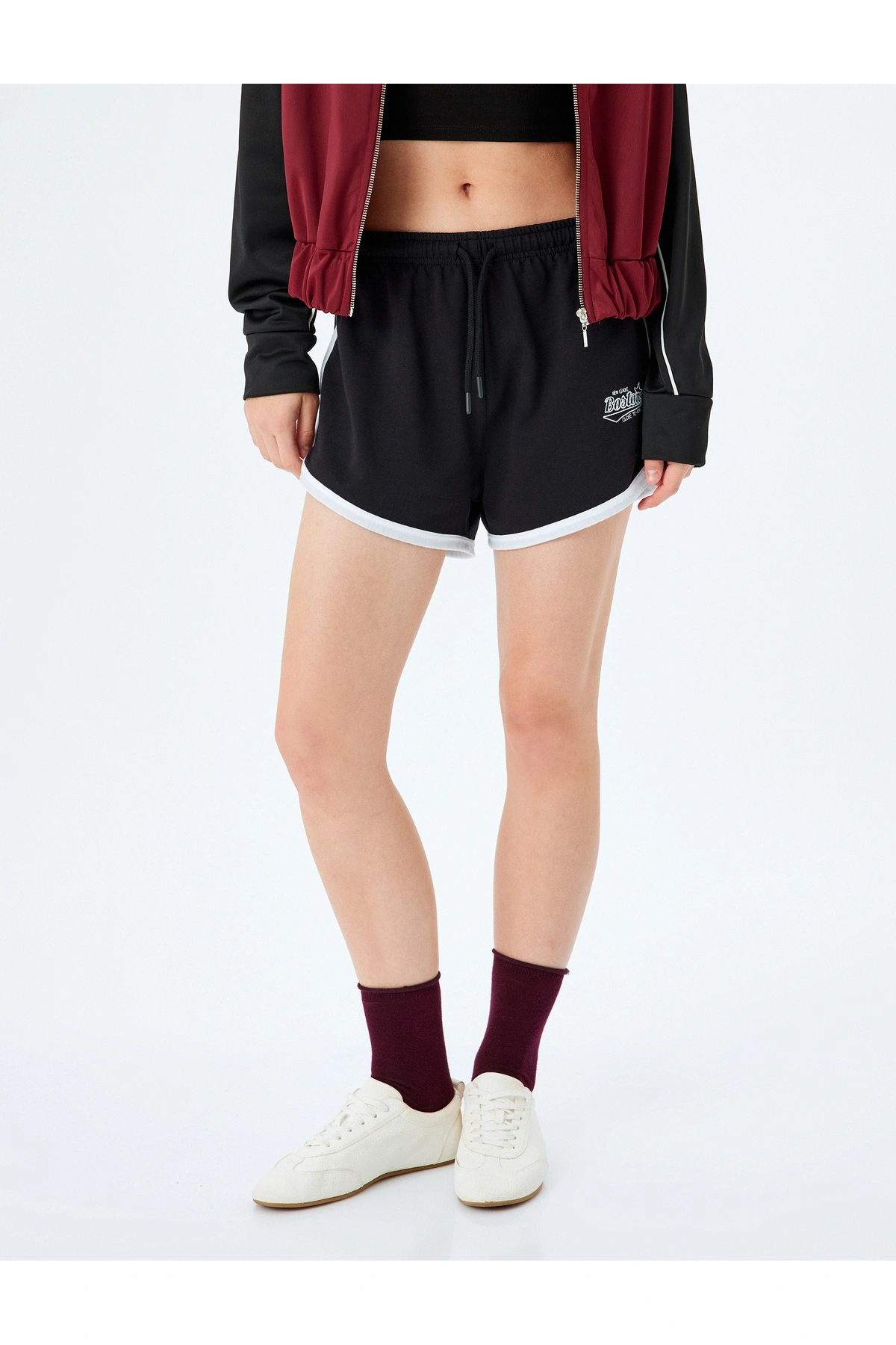 Koton Cep Detaylı Slogan Baskılı Beli Bağcıklı Biyeli Şort