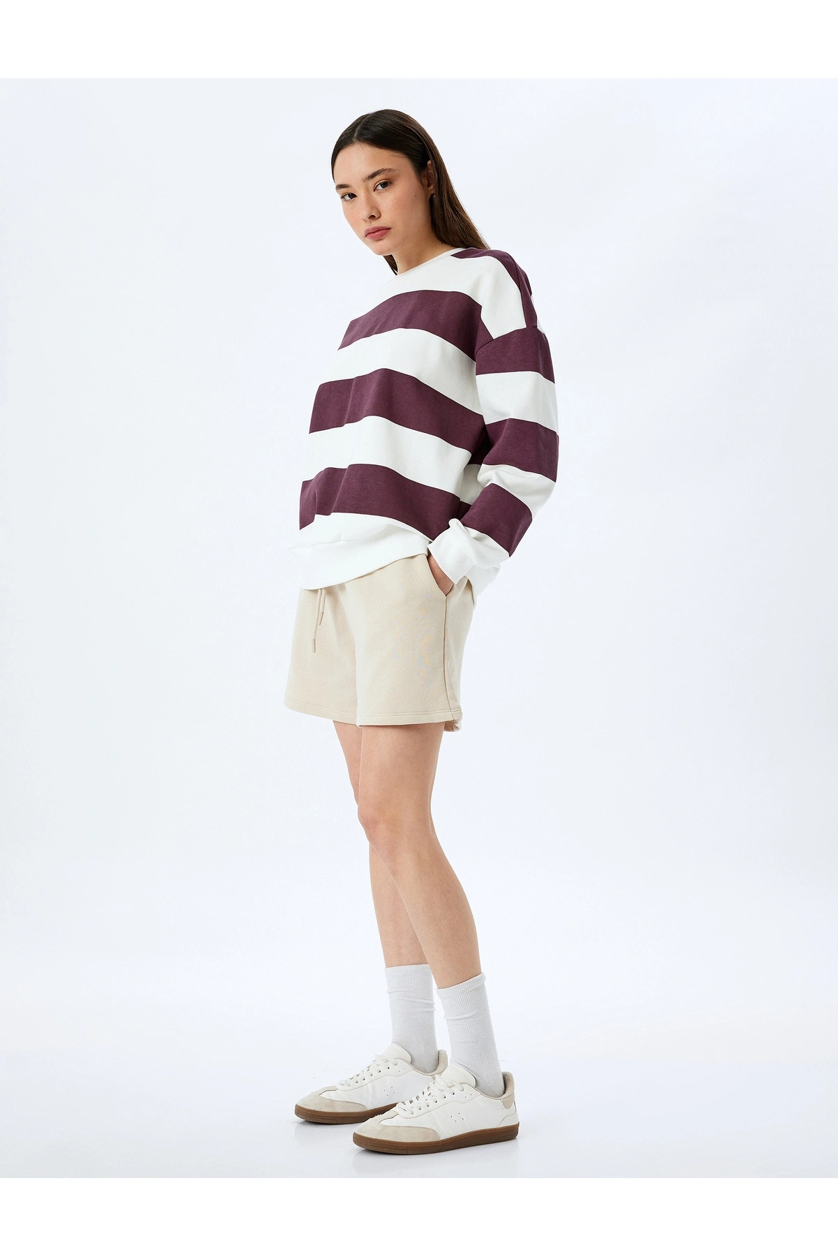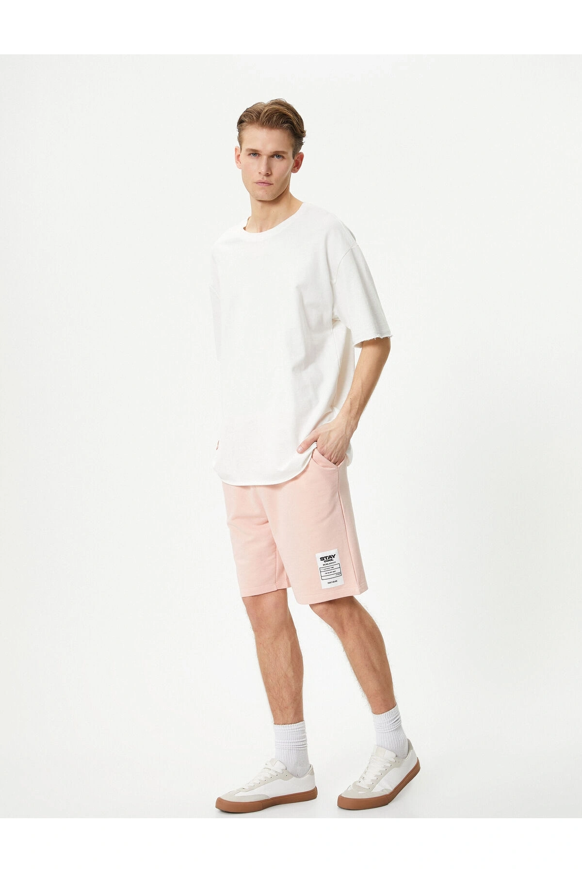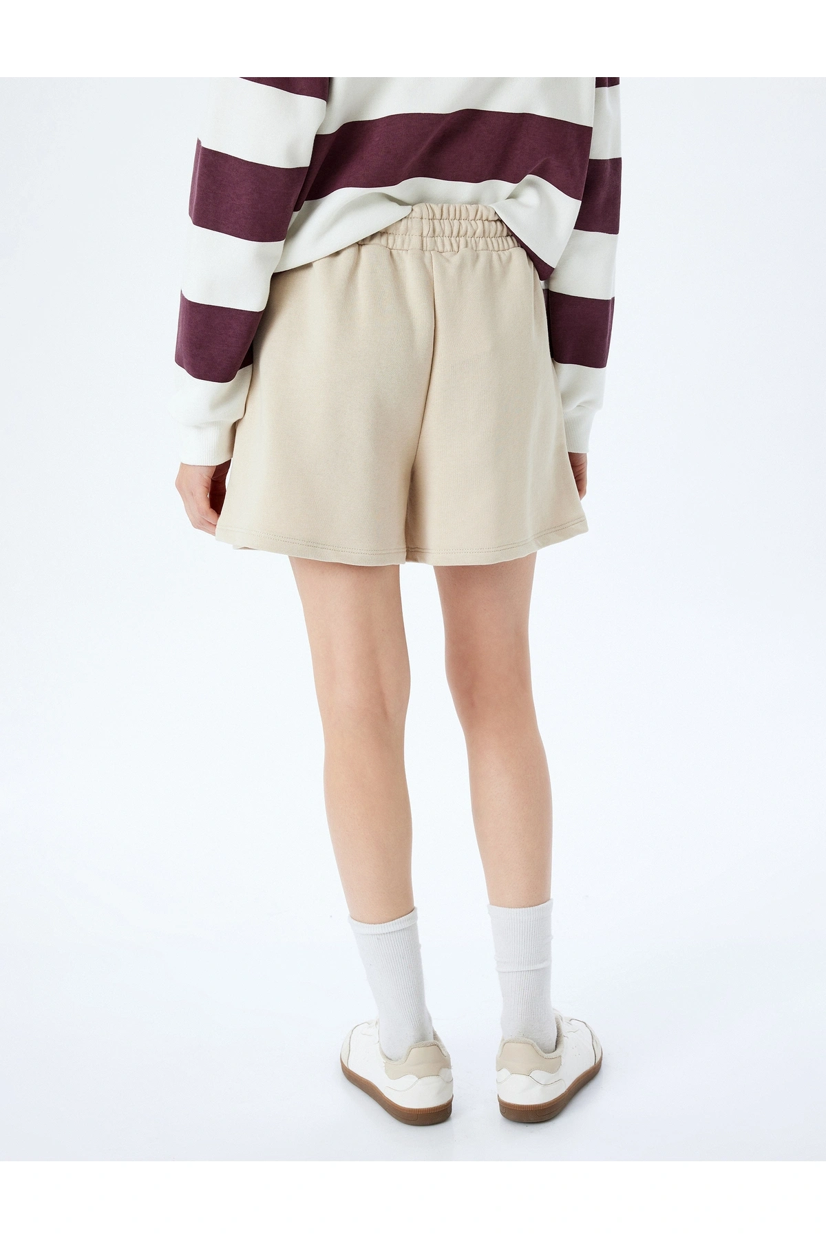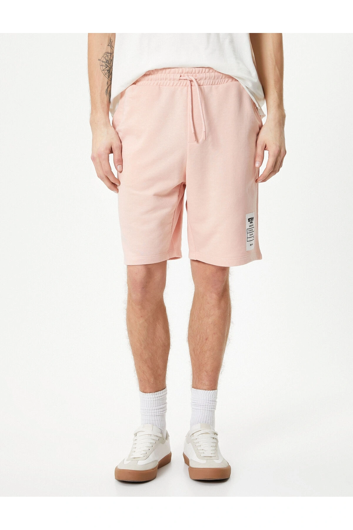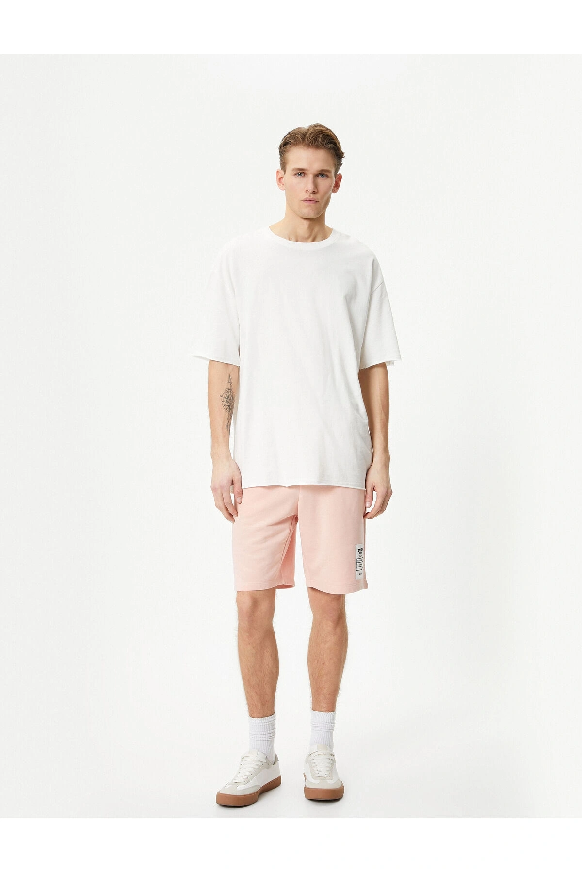 Koton Bermuda Şort Etiket Baskılı Beli Bağcıklı Cep Detaylı