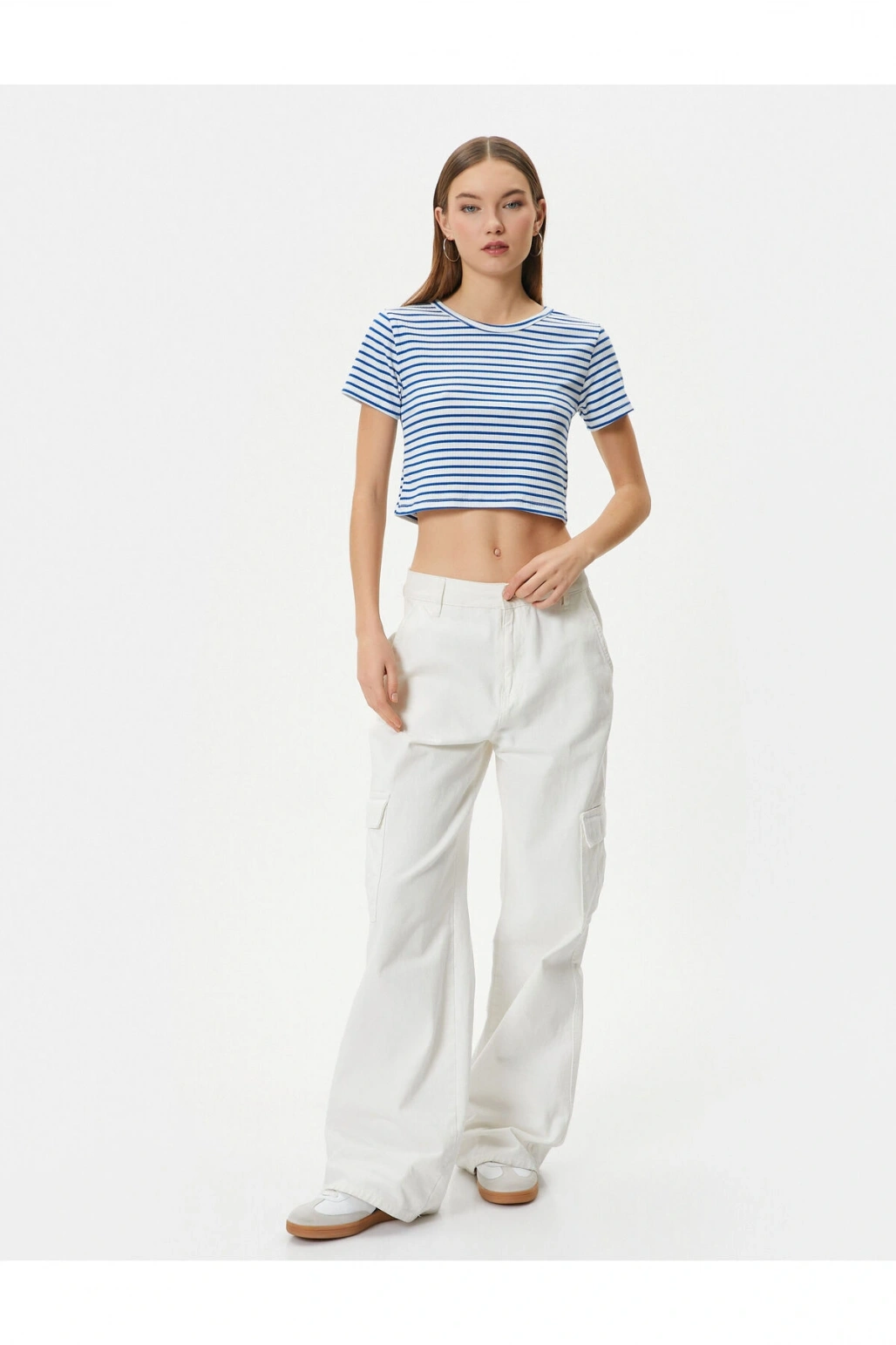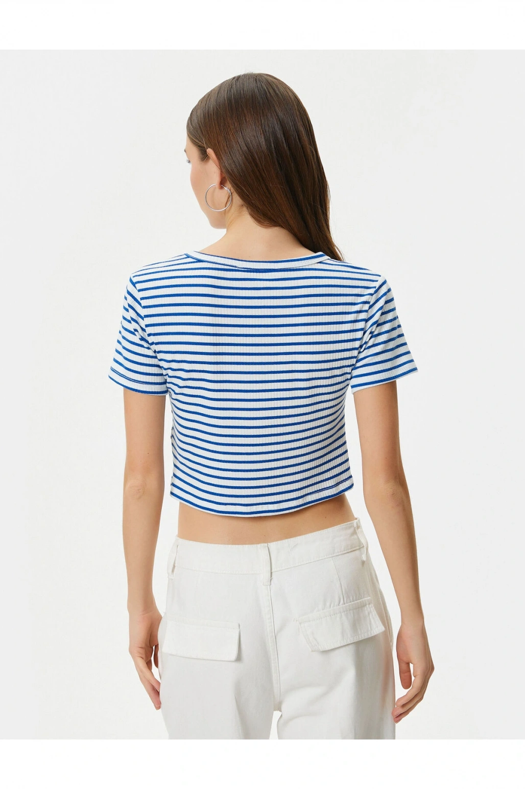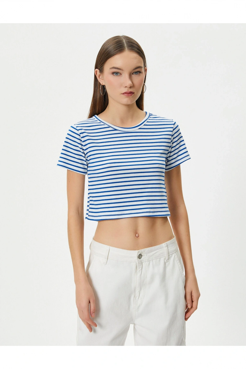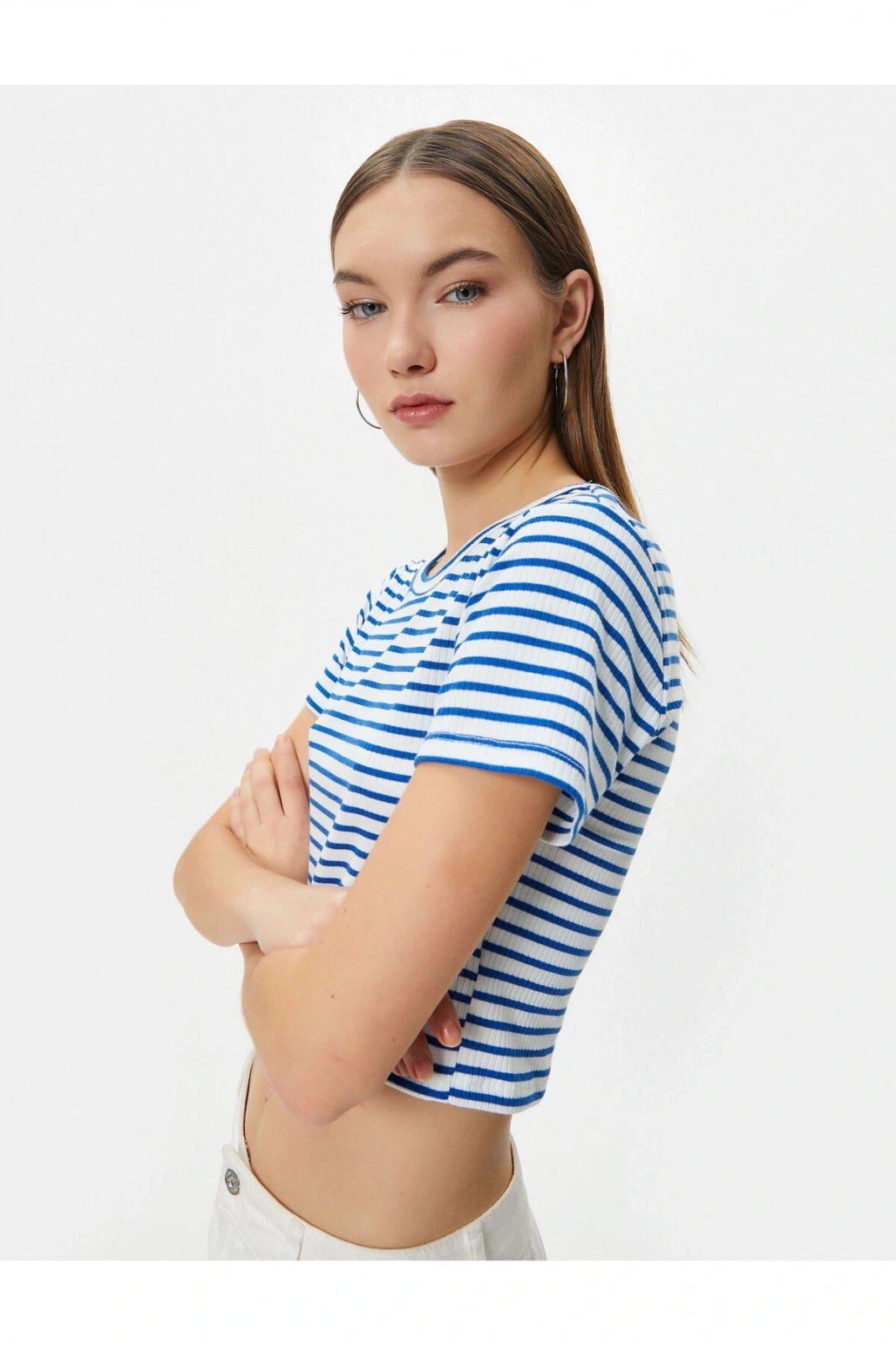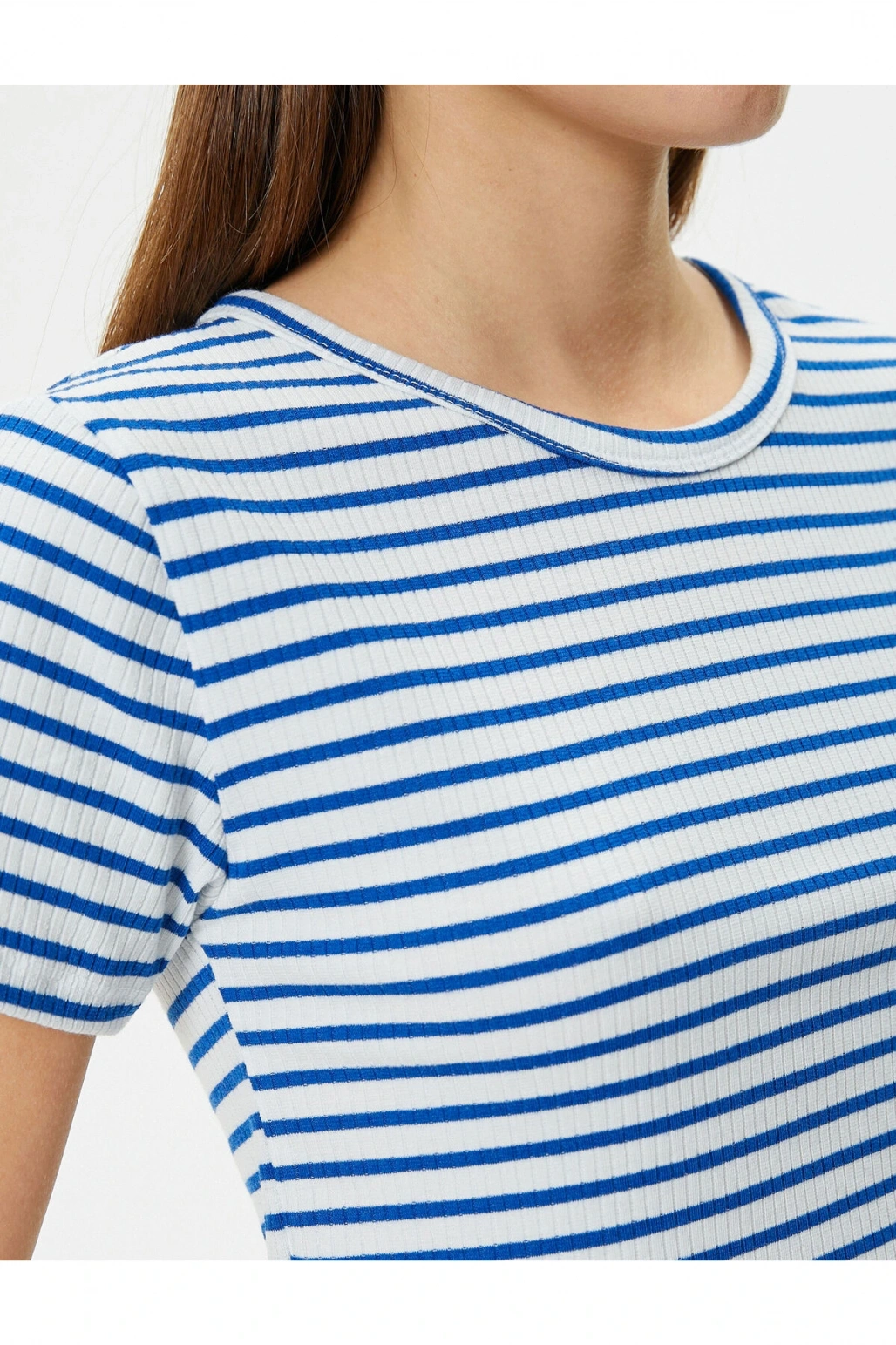 Crop Tişört Slim Fit Ribanalı Kısa Kollu Bisiklet Yaka