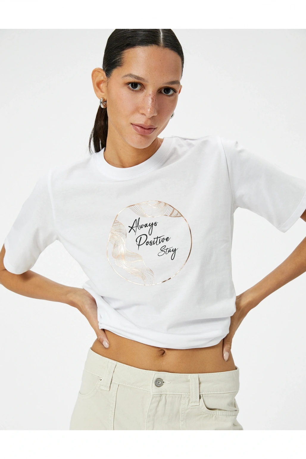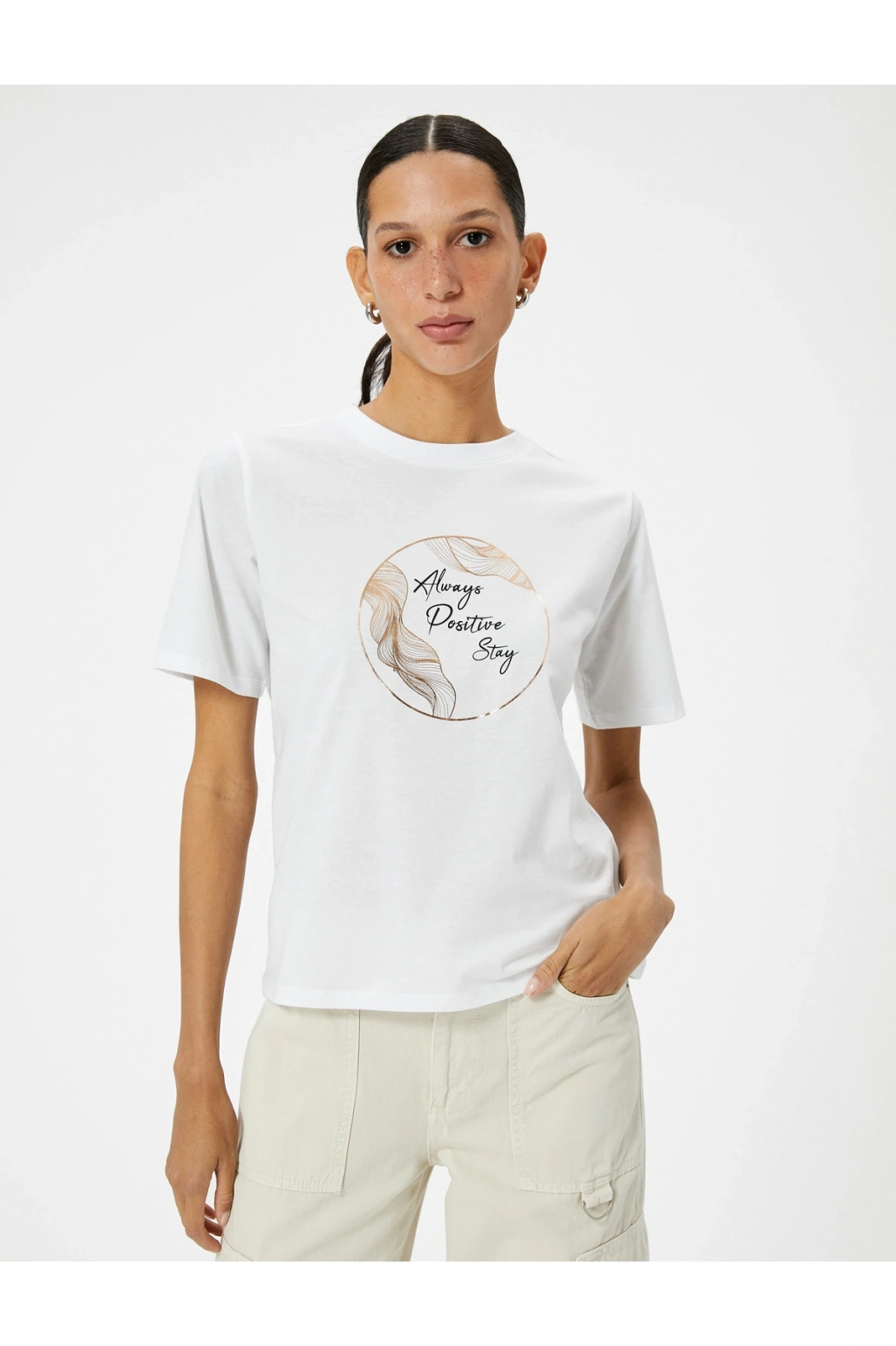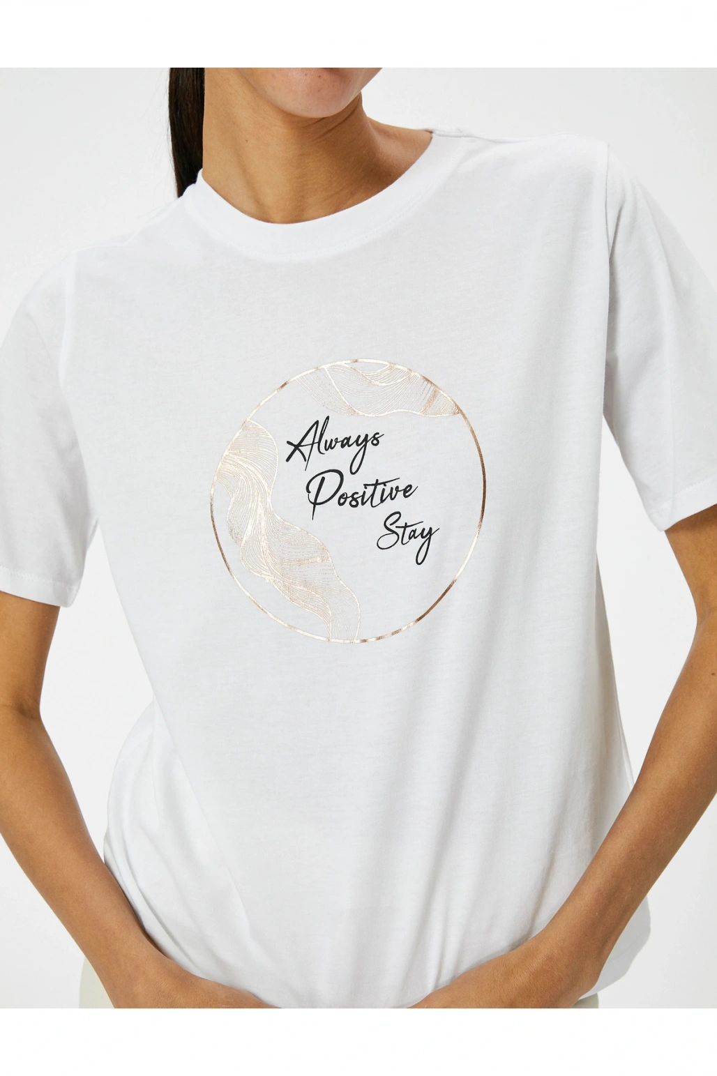 Baskılı Tişört Bisiklet Yaka Kısa Kollu Pamuklu