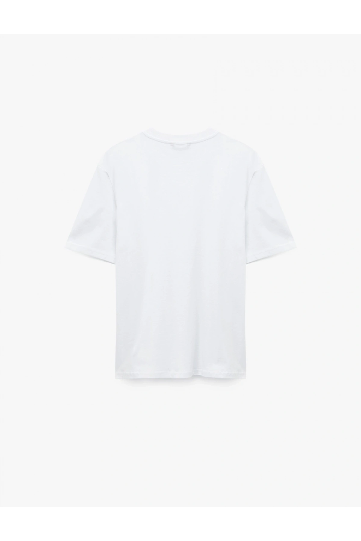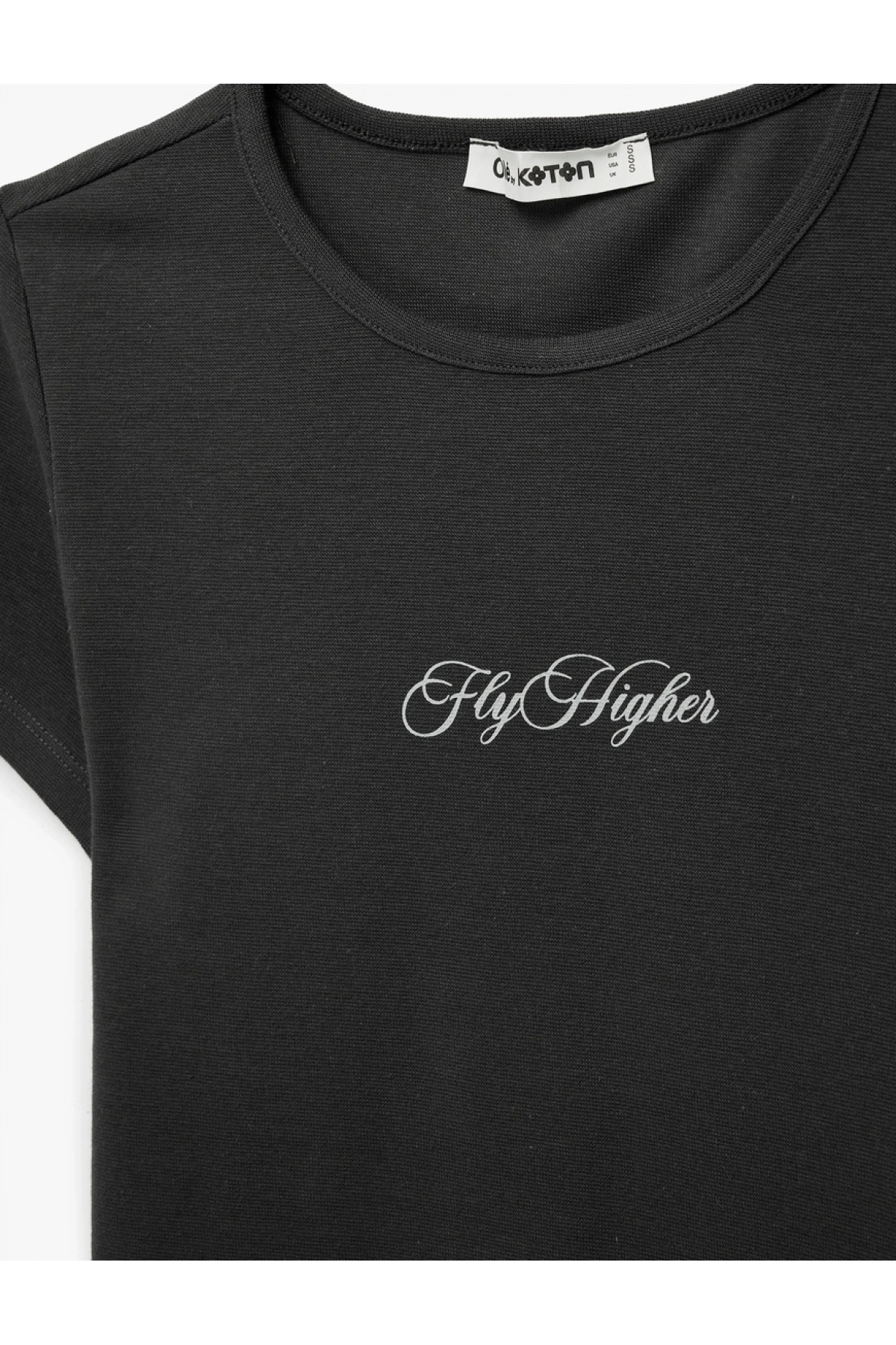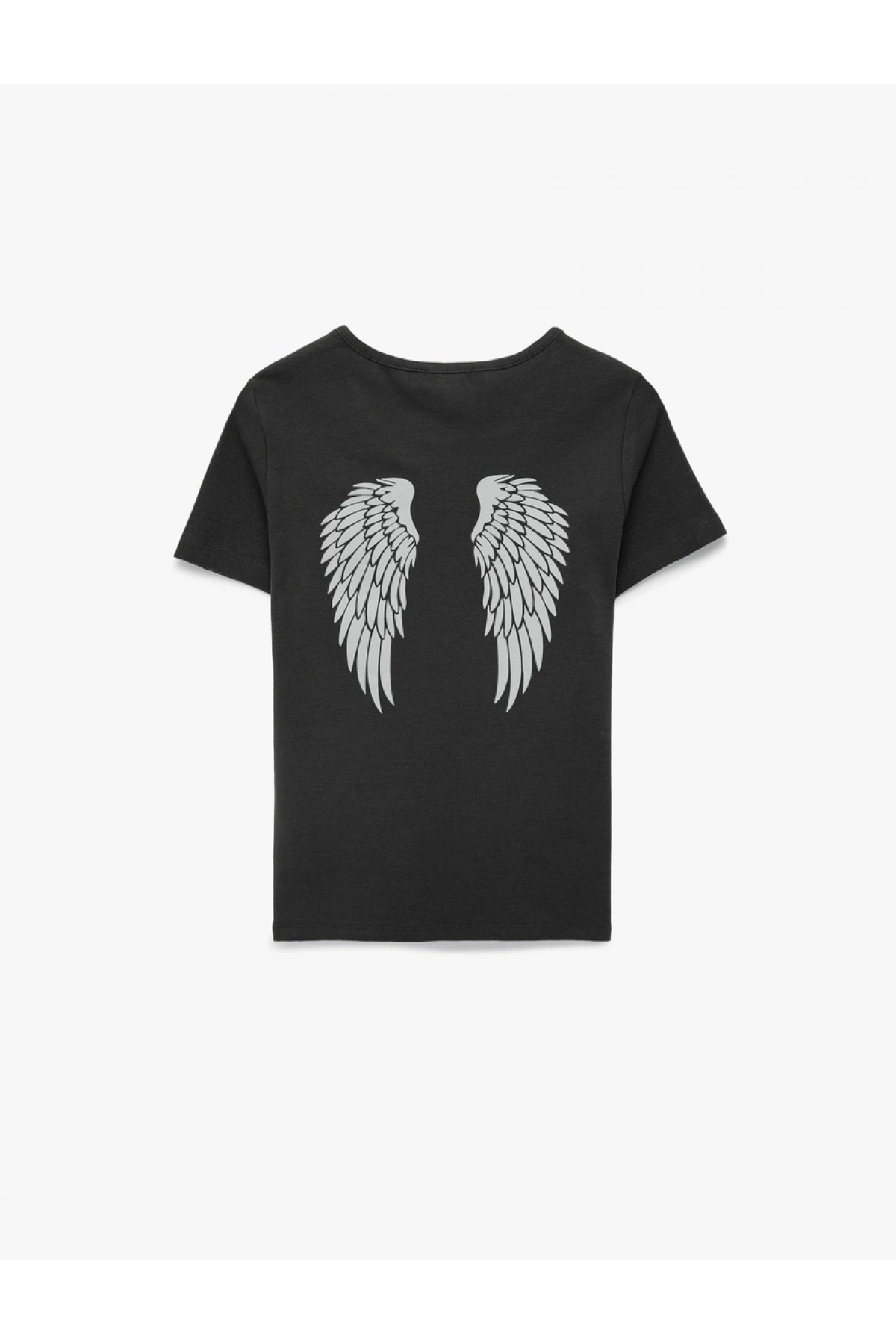 Koton Slim Fit Kısa Kollu Bisiklet Yaka Arkası Melek Baskılı Tişört