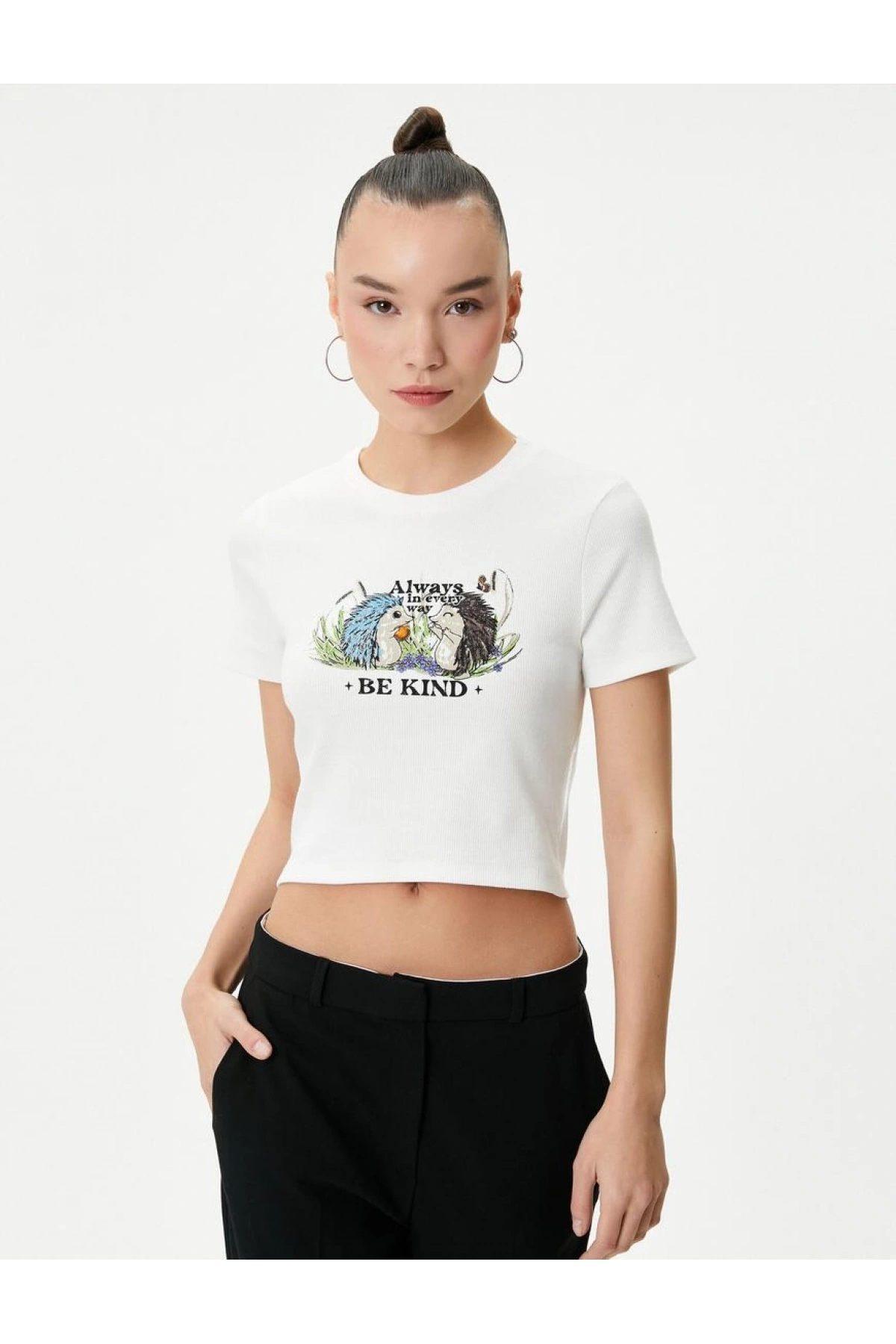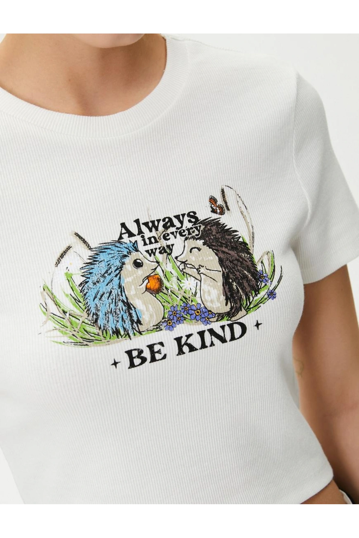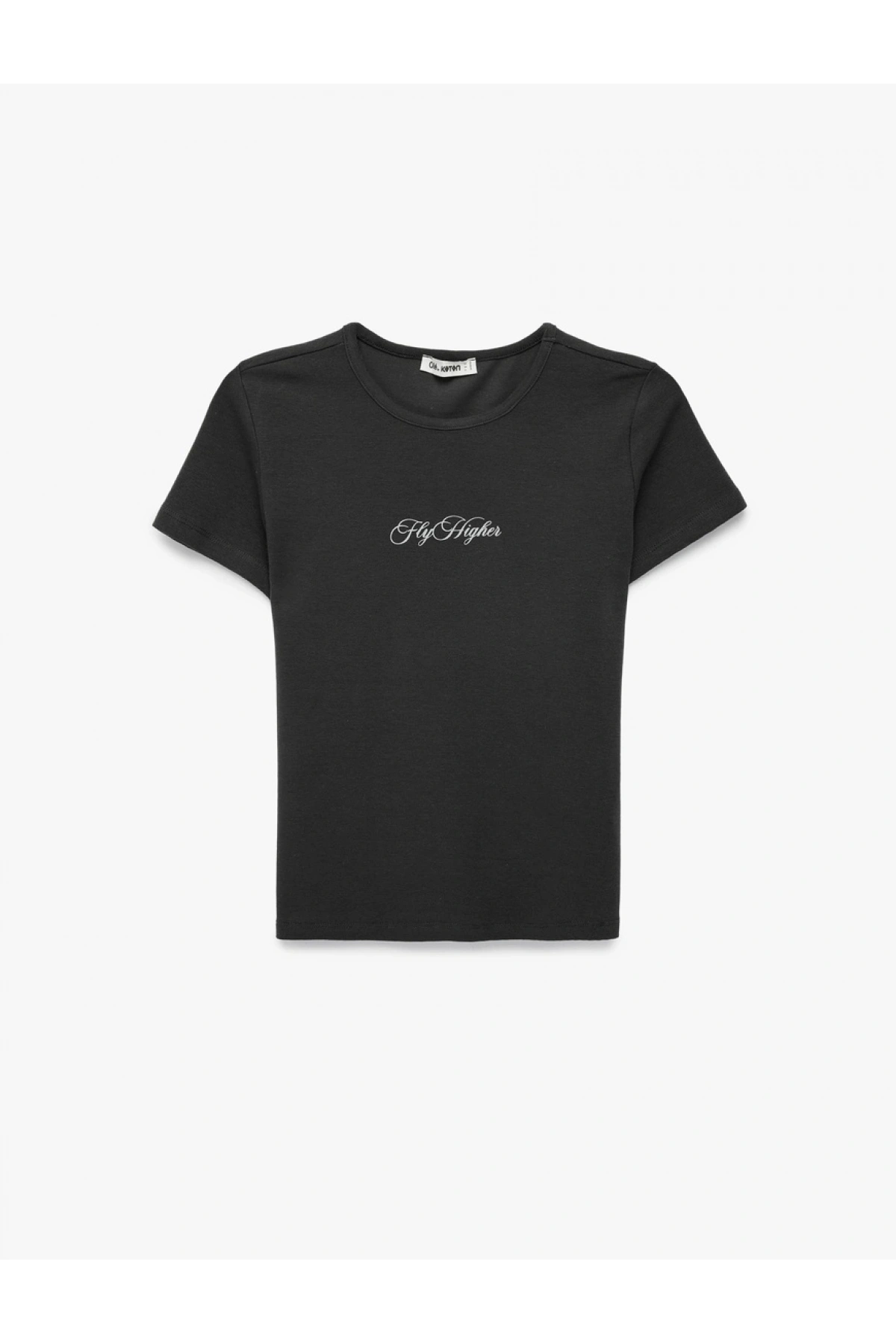 Koton Slim Fit Kısa Kollu Bisiklet Yaka Arkası Melek Baskılı Tişört