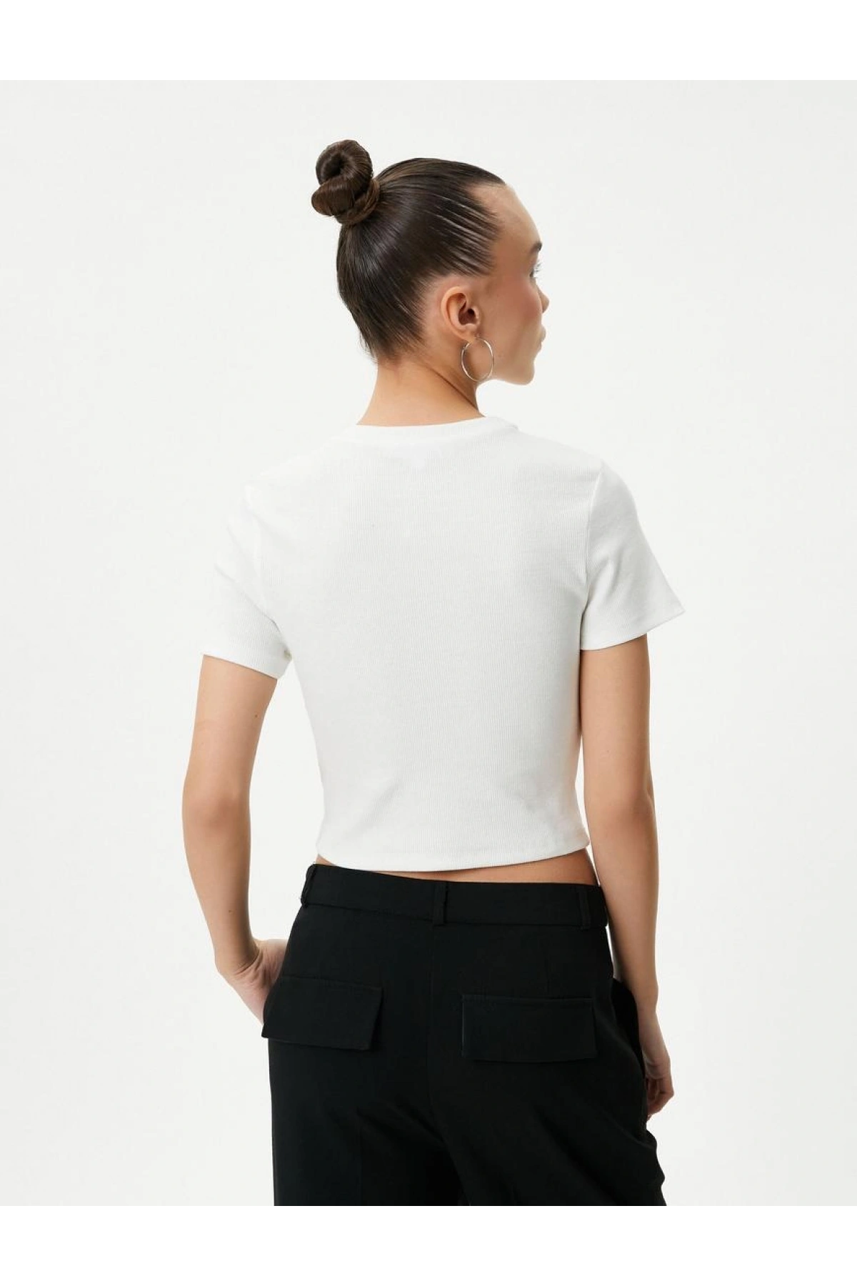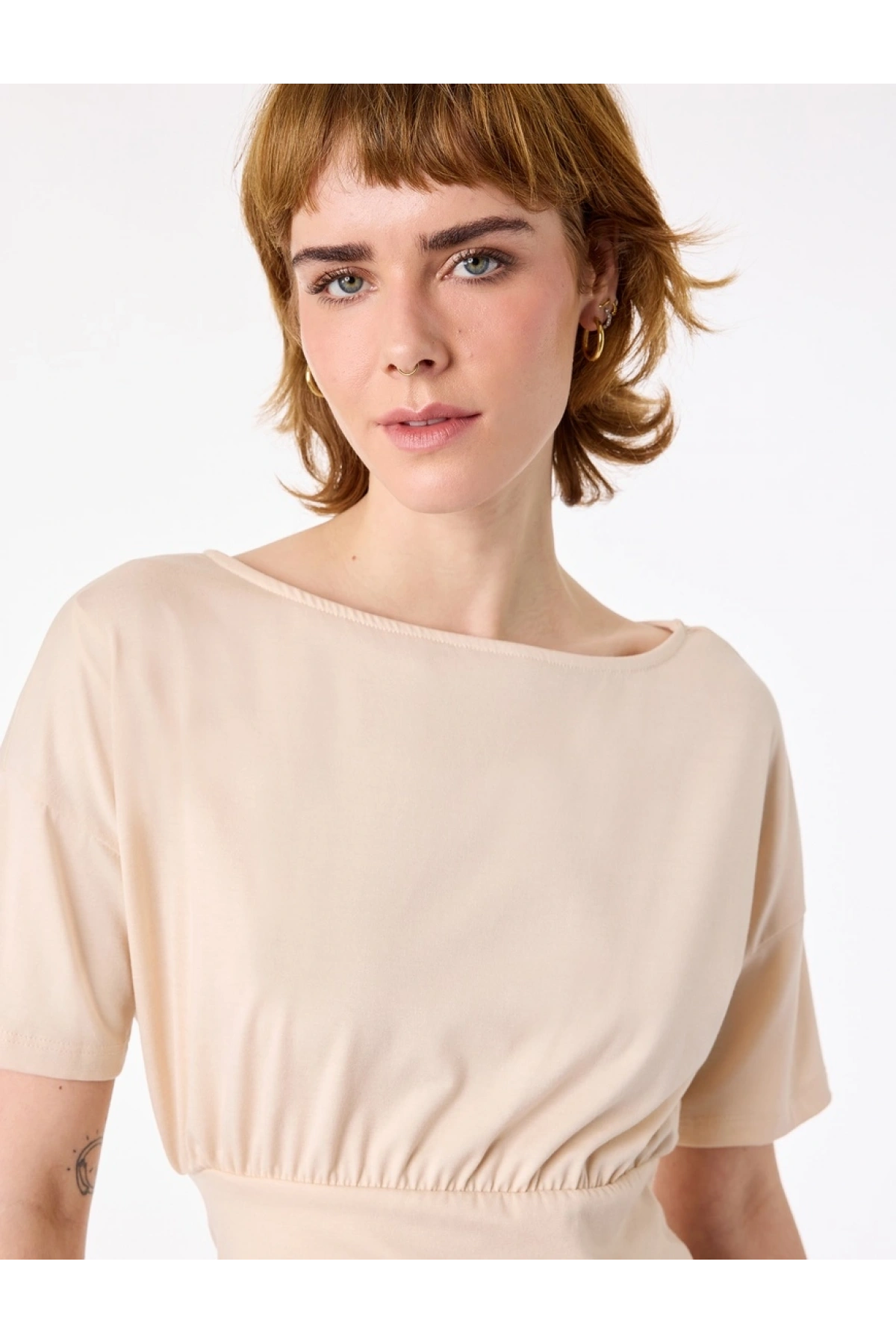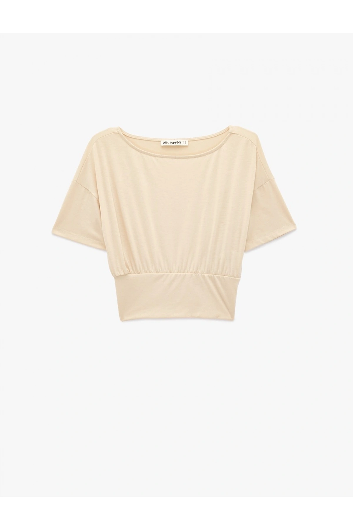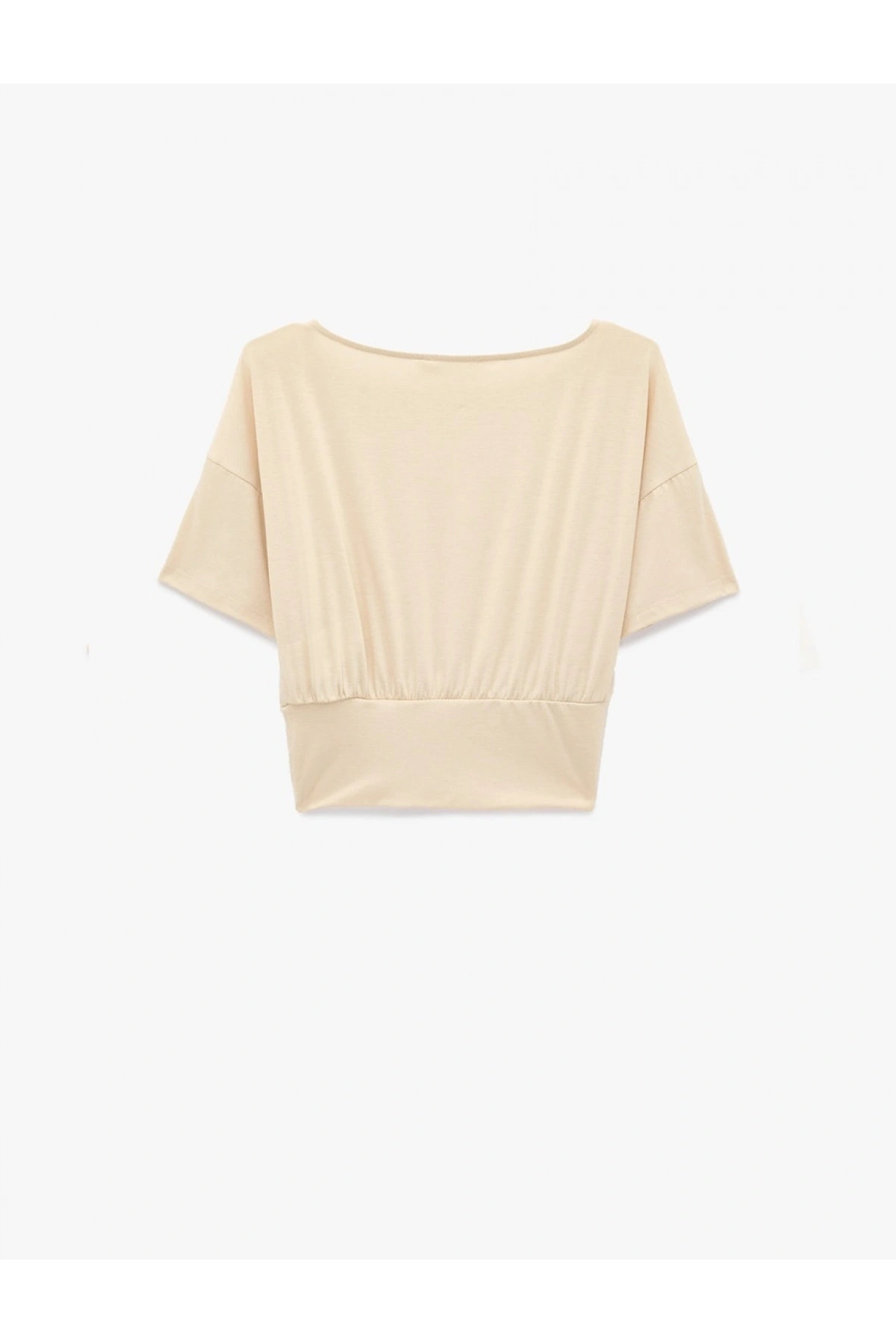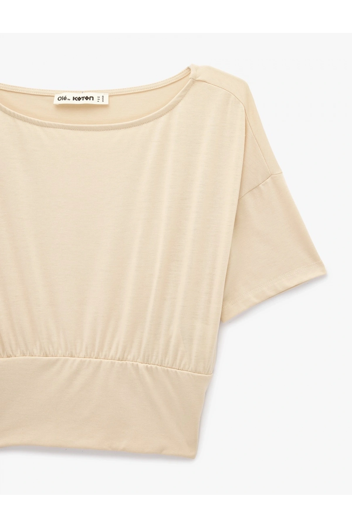 Koton Kısa Kollu Viskon Karışımlı Kayık Yaka Crop Tişört