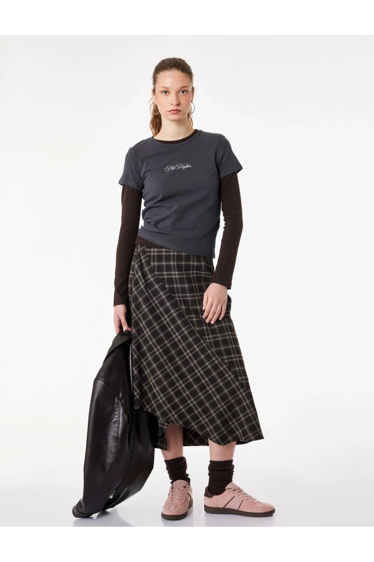 KOTON Bürümcük Kumaş Slim Fit Fiyonk Detaylı Midi Etek