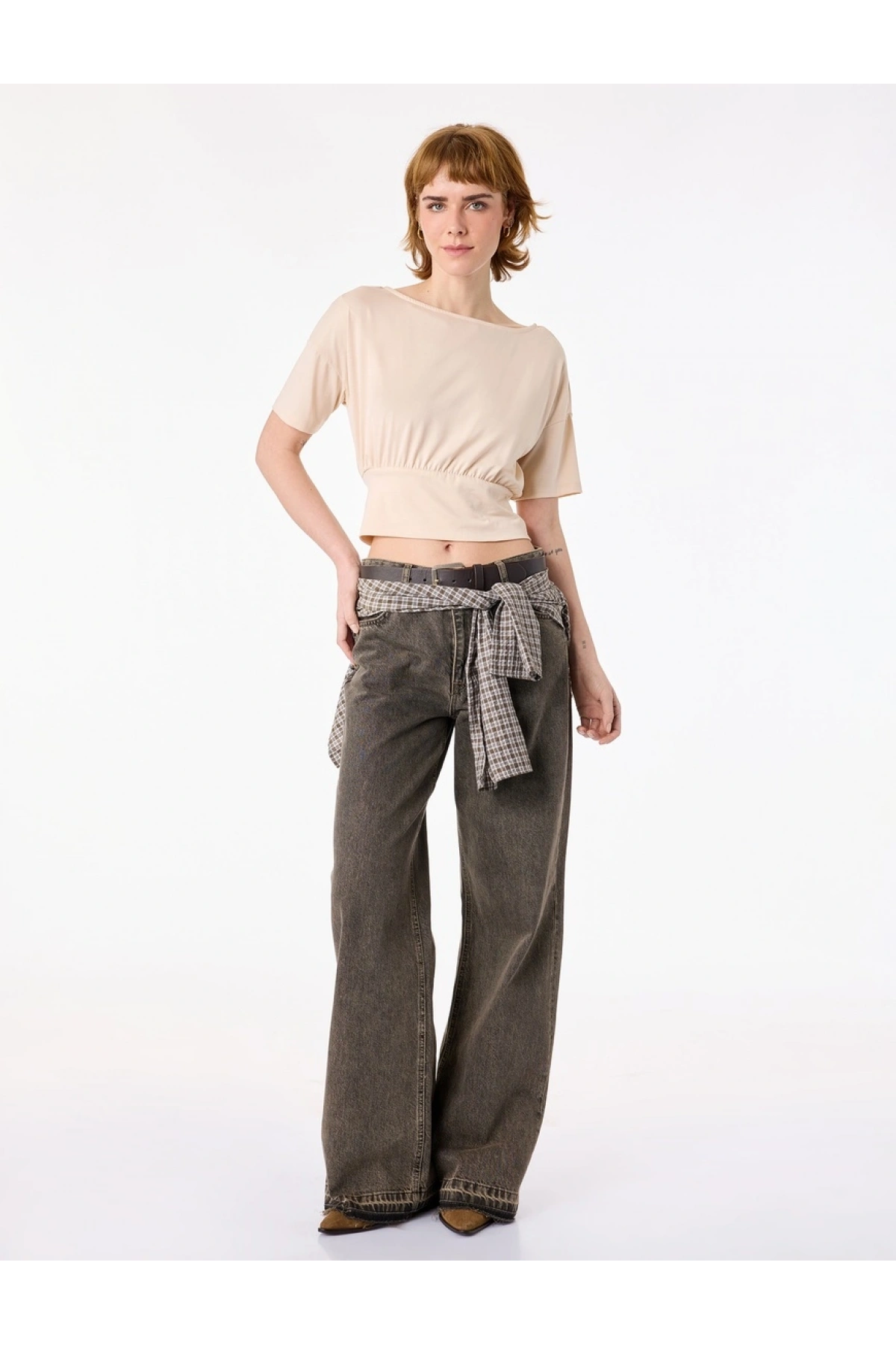 KOTON Geniş Paça Beli Lastikli Rahat Kalıp Pantolon Bürümcük