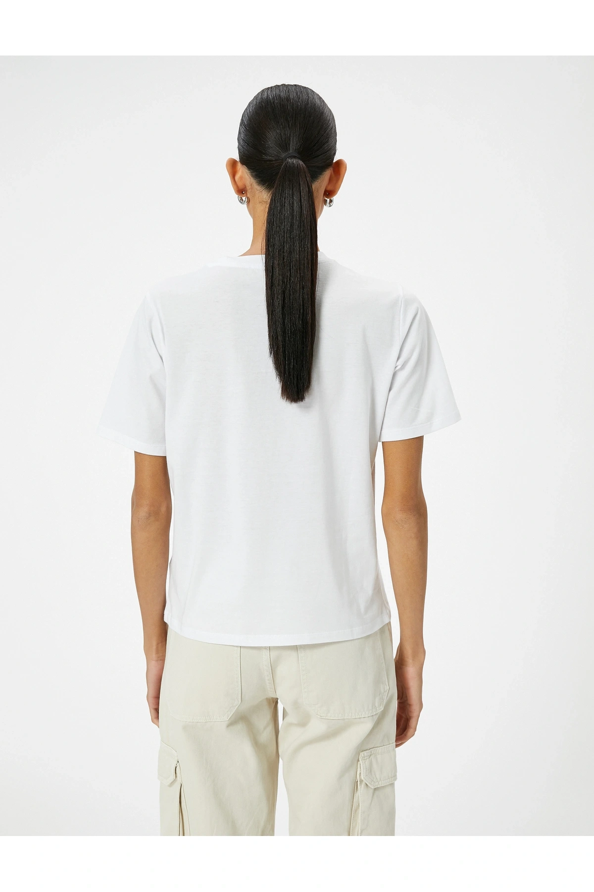 Crop Tişört Slim Fit Ribanalı Kısa Kollu Bisiklet Yaka