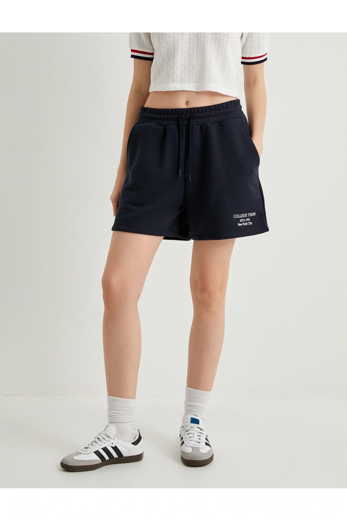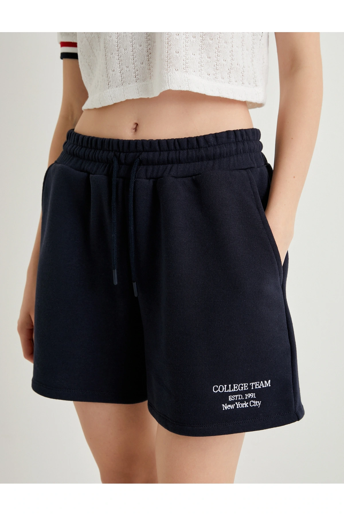 Mini Şort Cepli Rahat Kalıp Beli Bağlamalı
