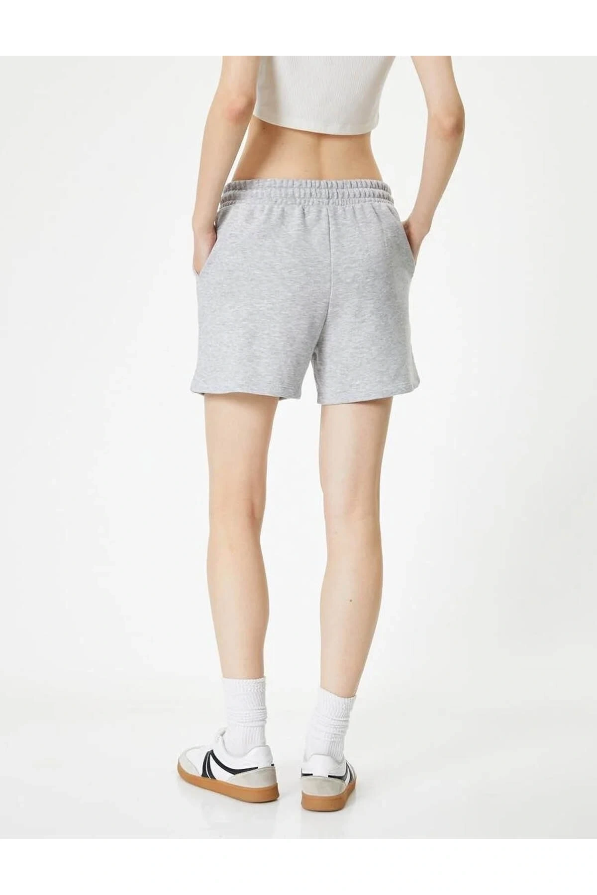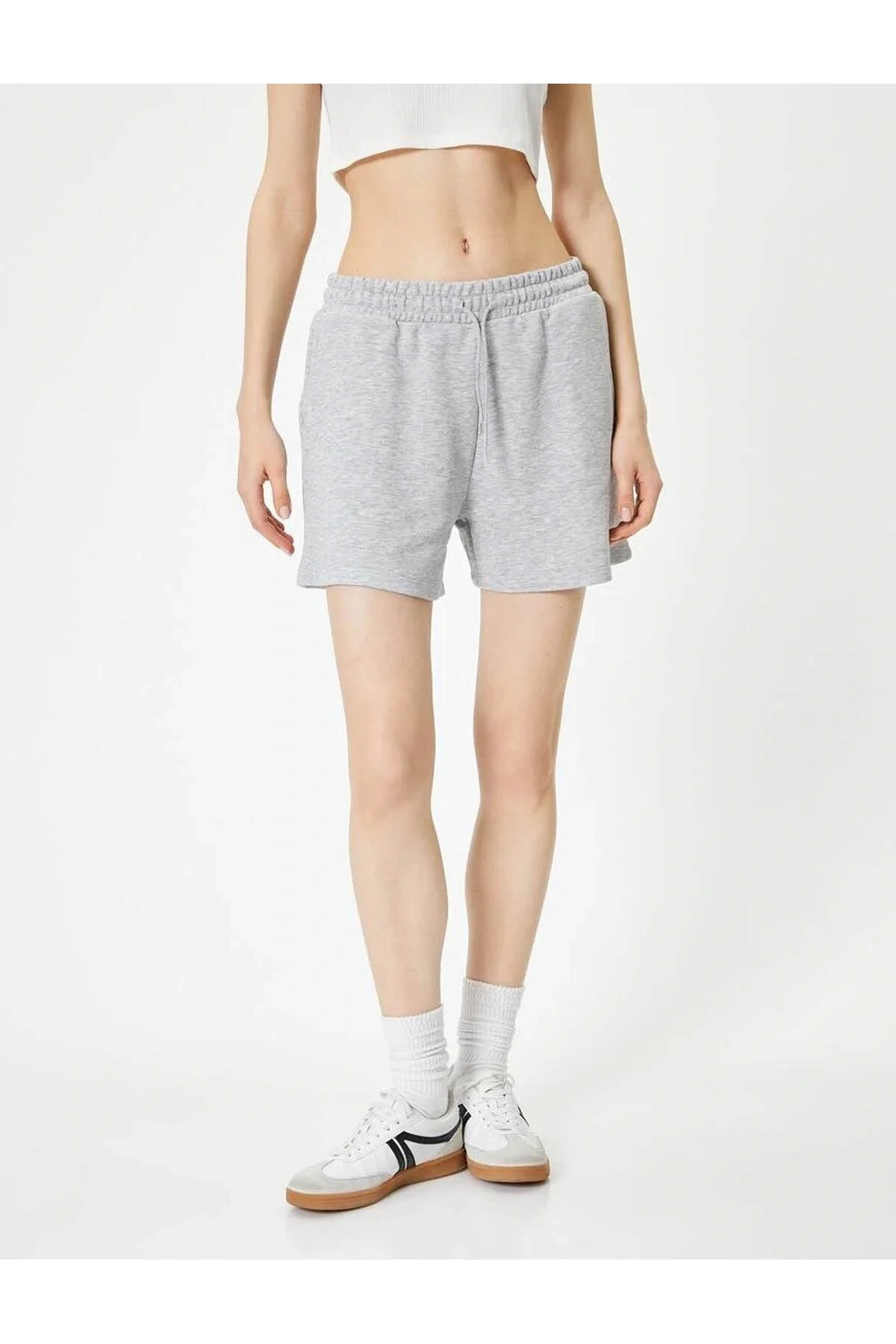 Basic Şort Beli Bağlamalı Cepli 4sal40005ık Gri Melanj