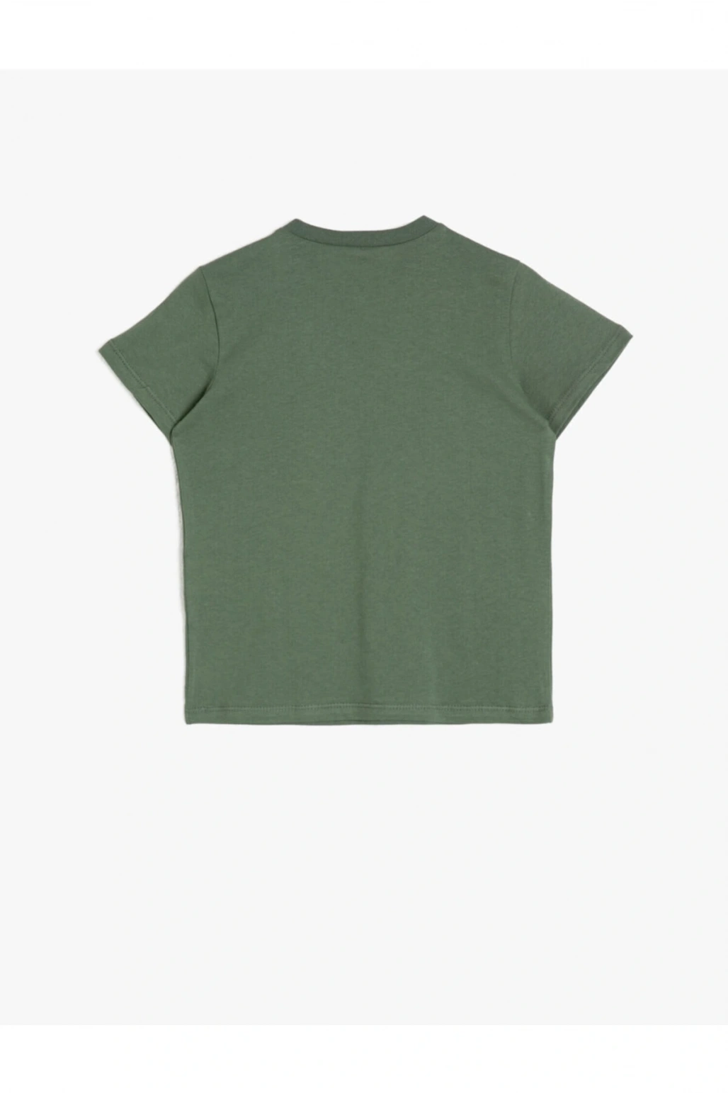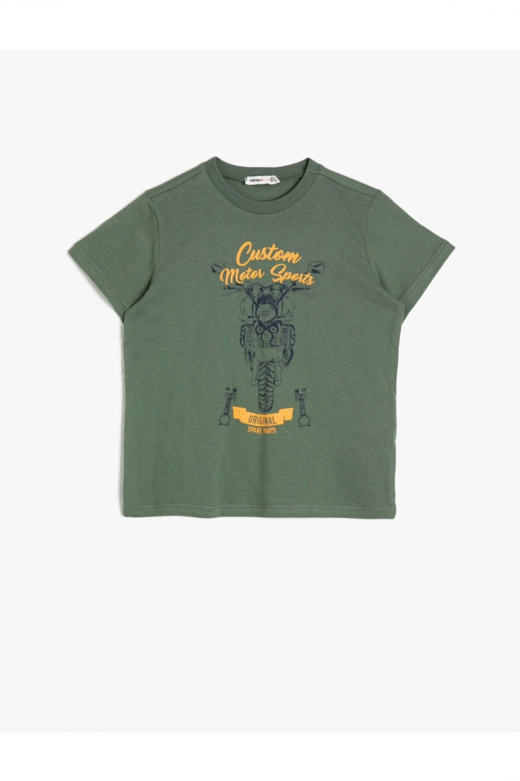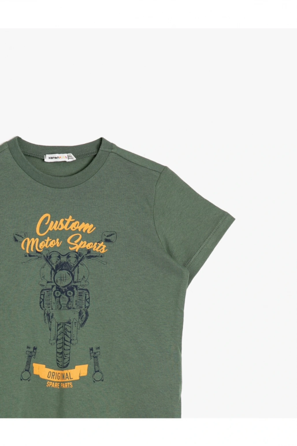 Erkek Çocuk Yeşil Bisiklet Yaka Baskılı T-Shirt