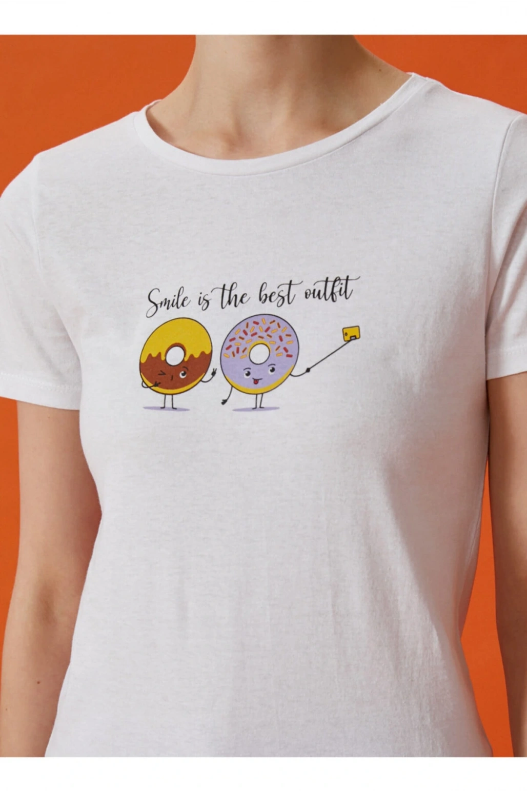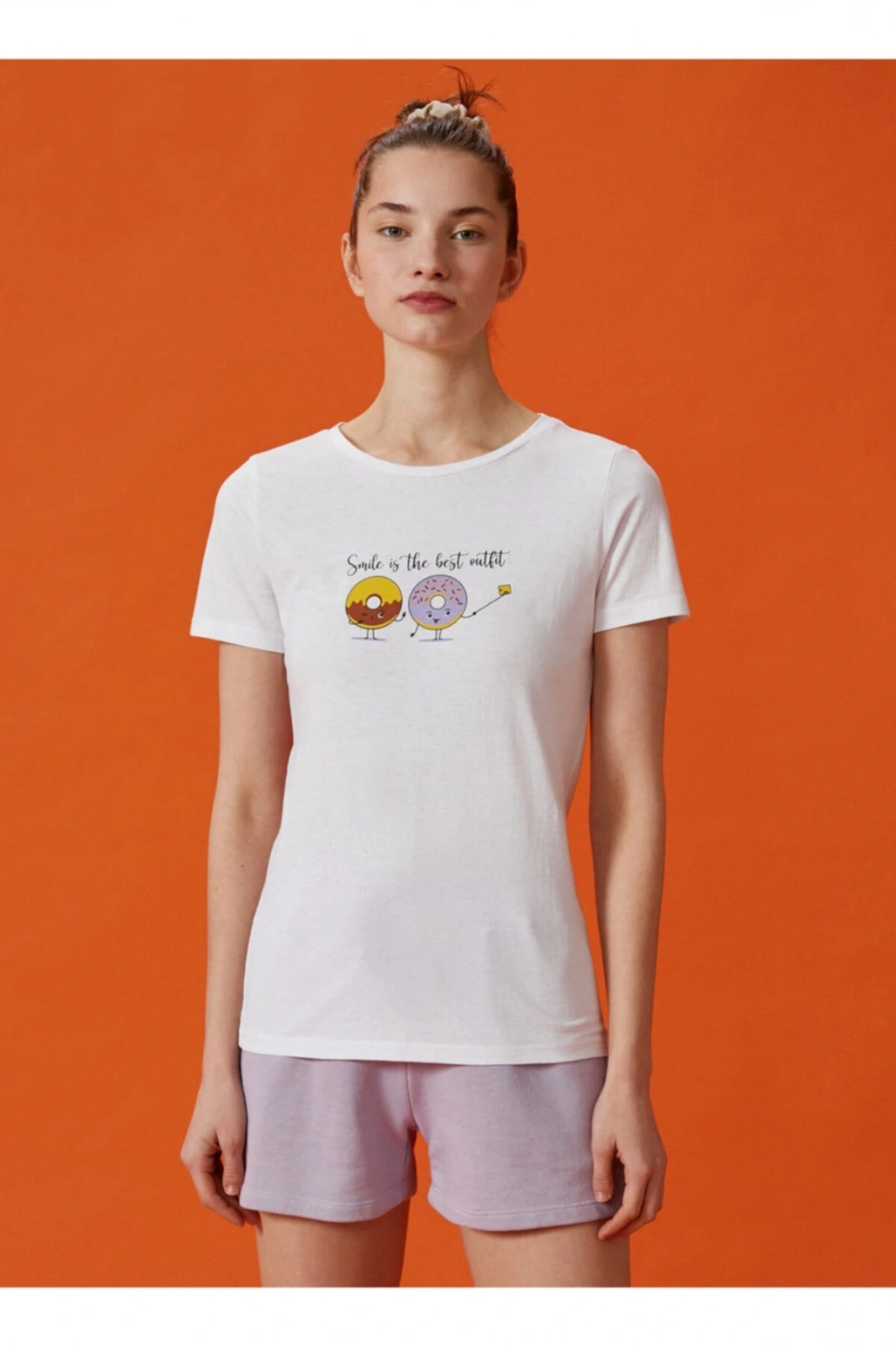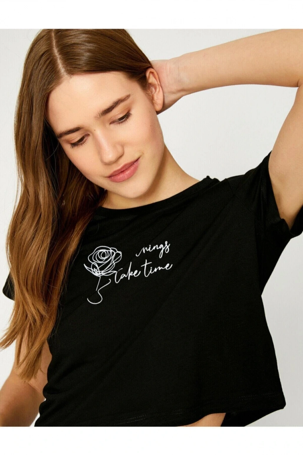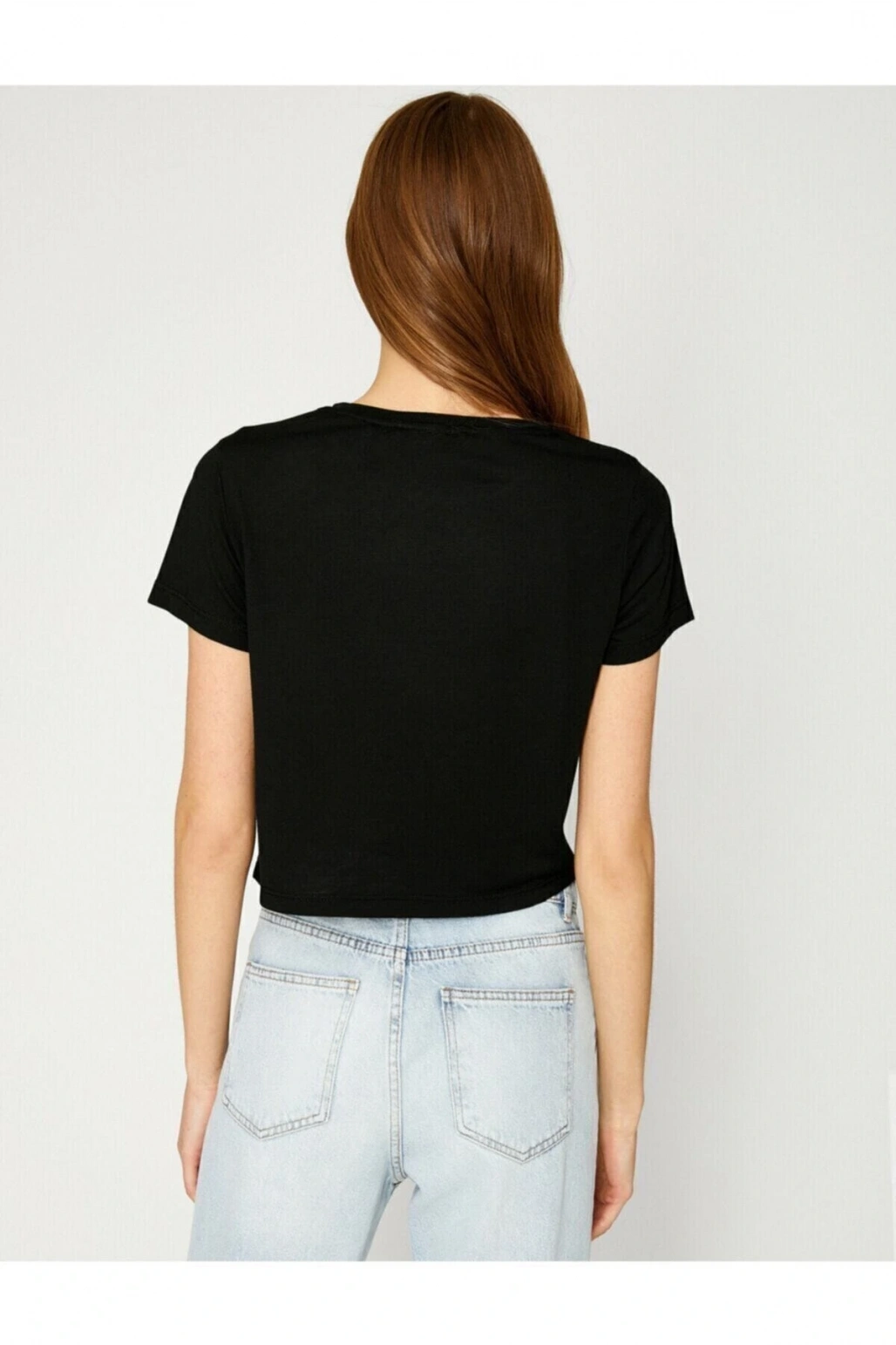 Kadın Bisiklet Yaka Kisa Kollu T-Shirt