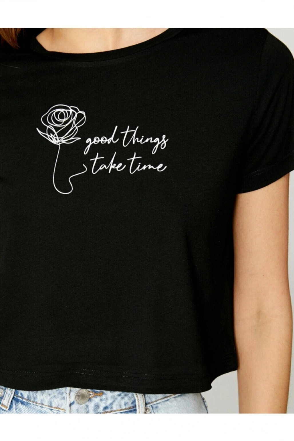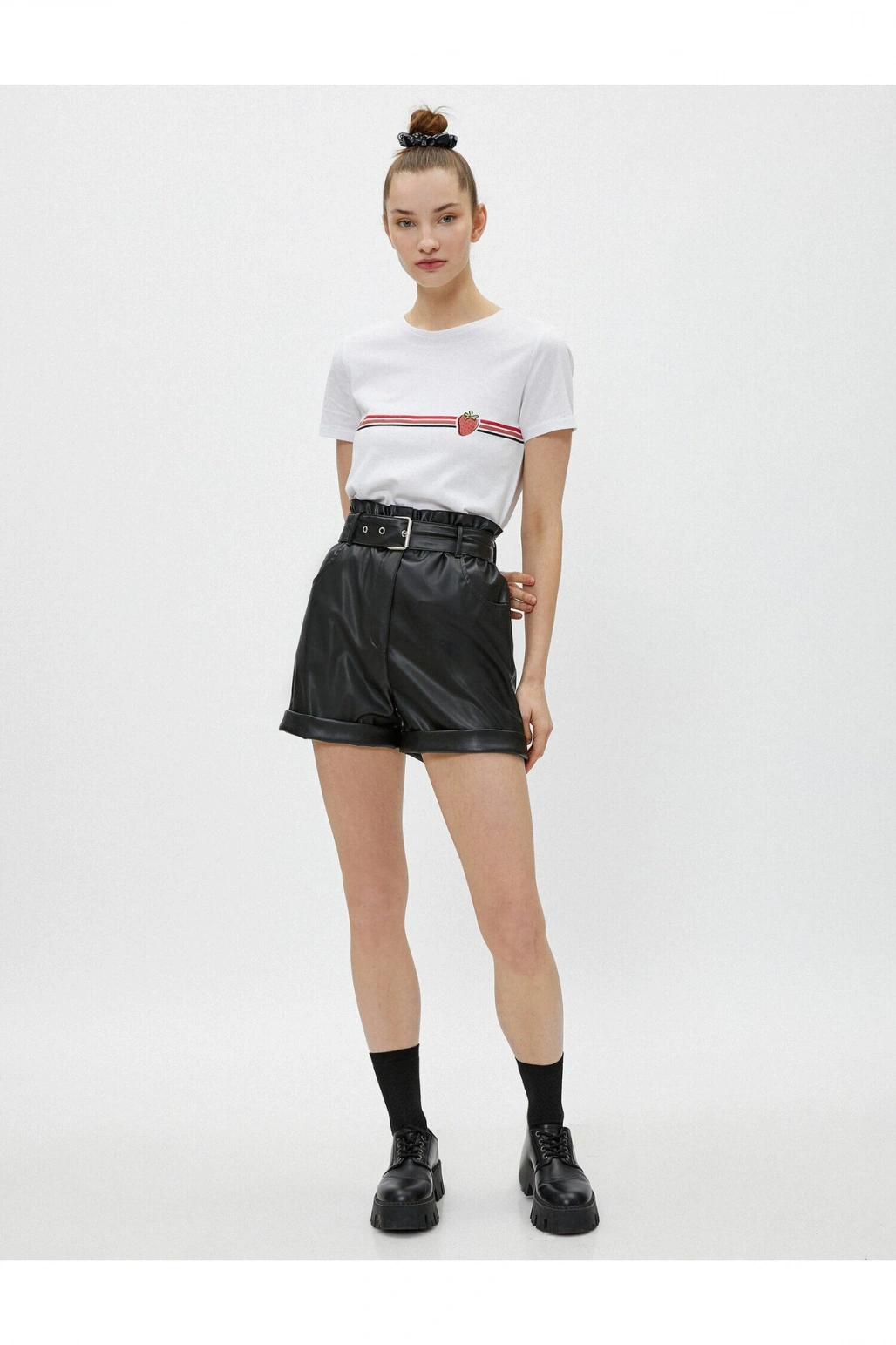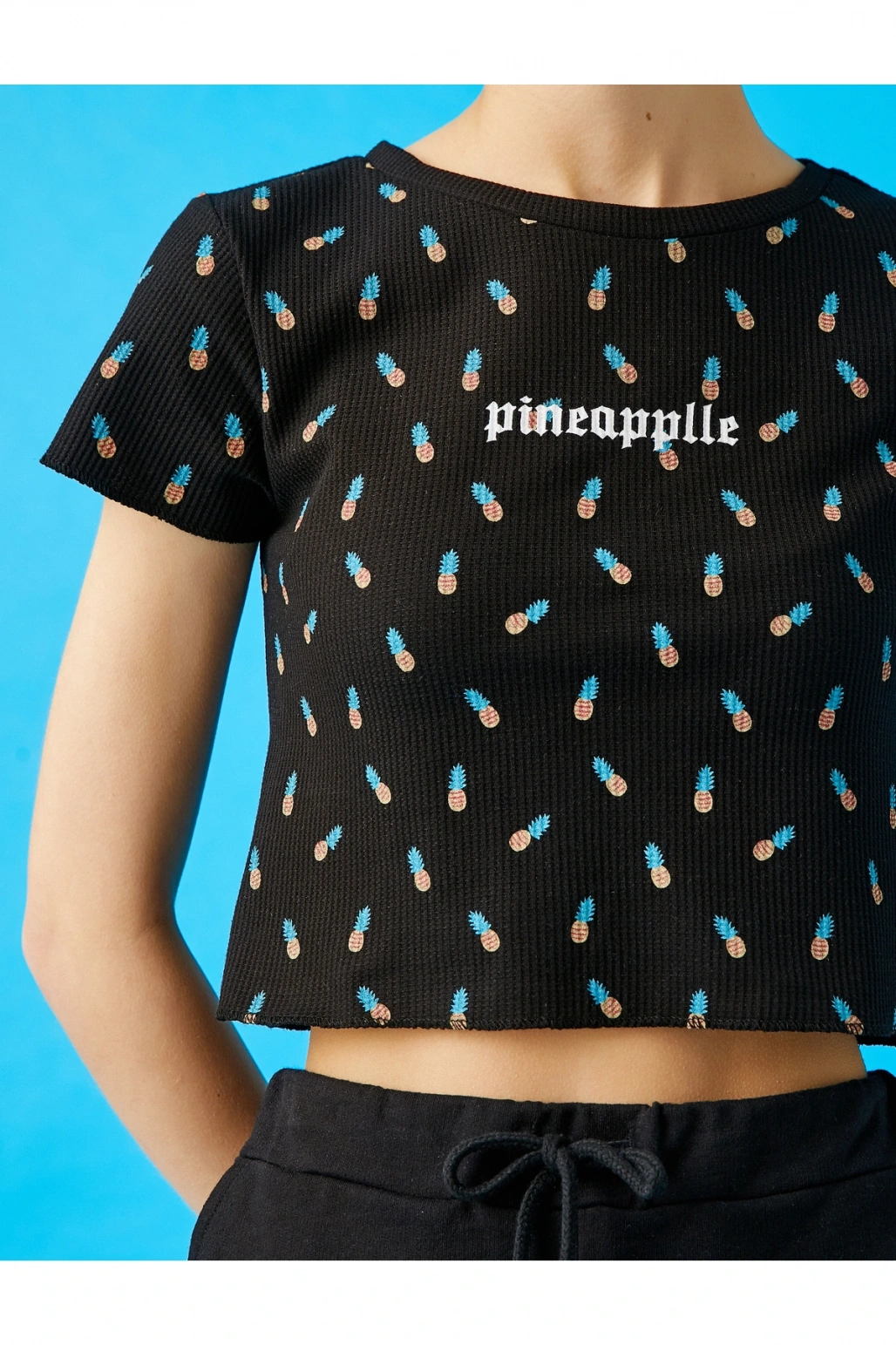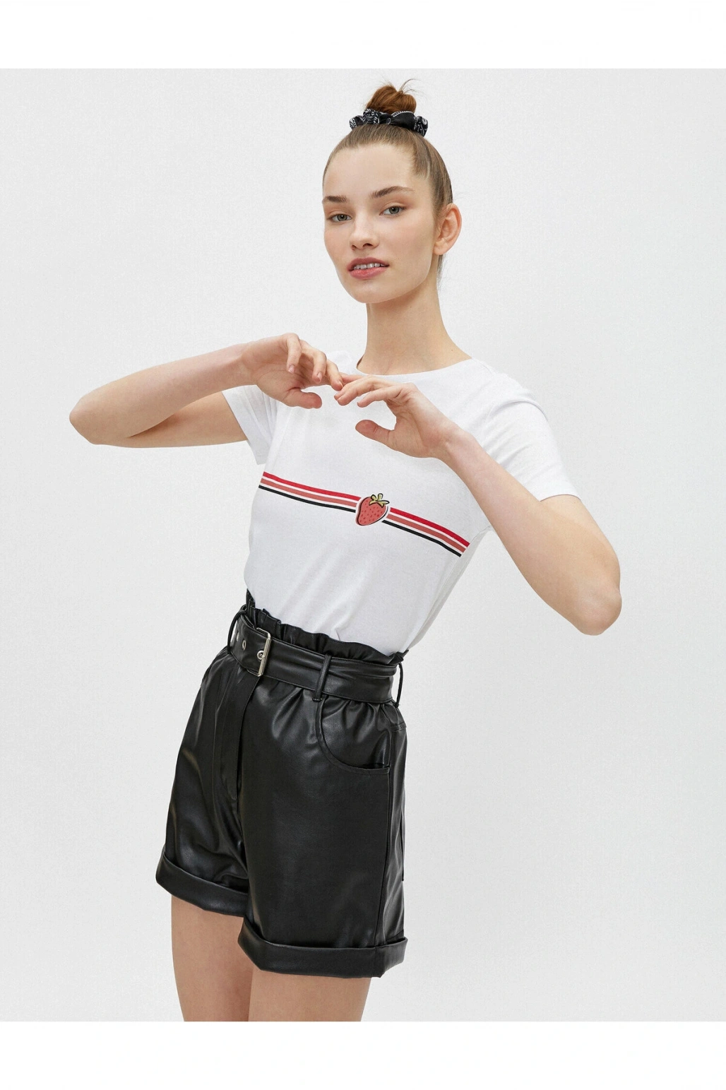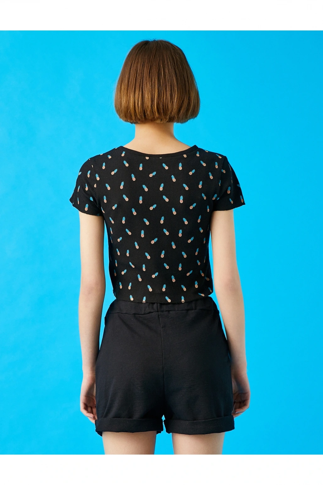 Kadın Bisiklet Yaka Kisa Kollu T-Shirt