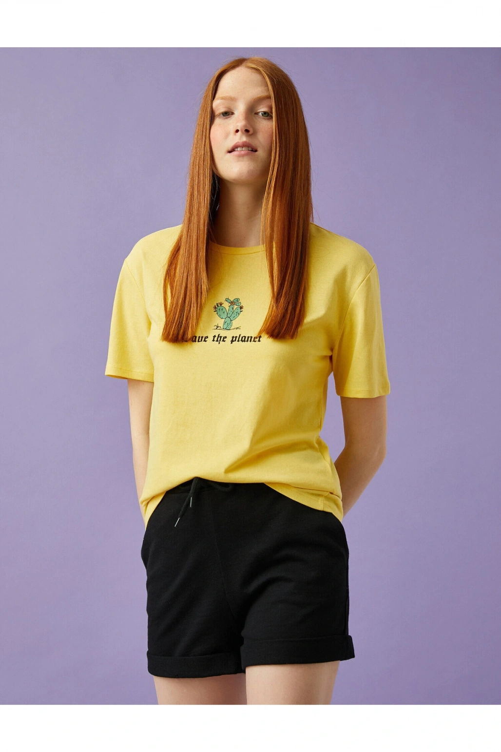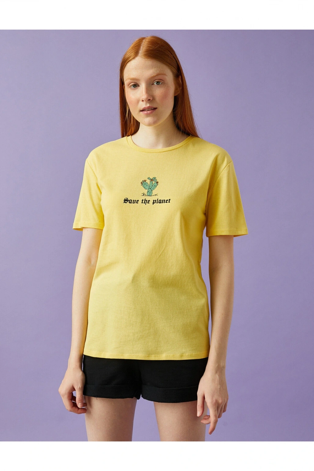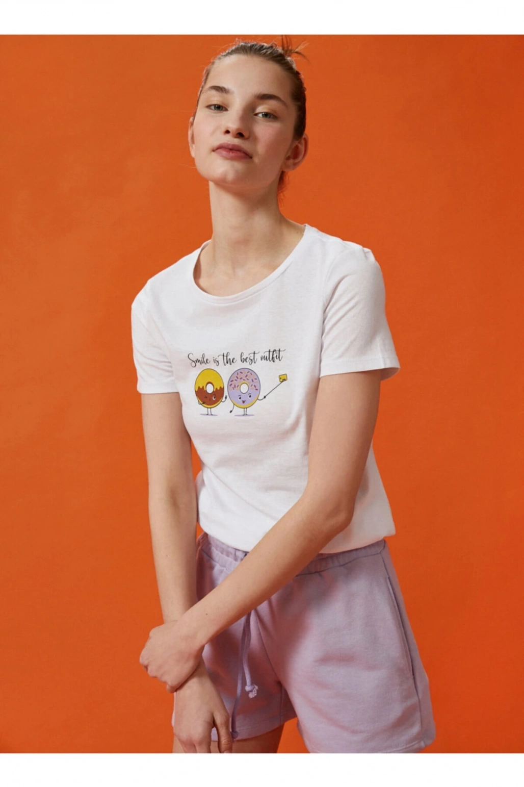 Baskılı Tişört Bisiklet Yaka Pamuklu