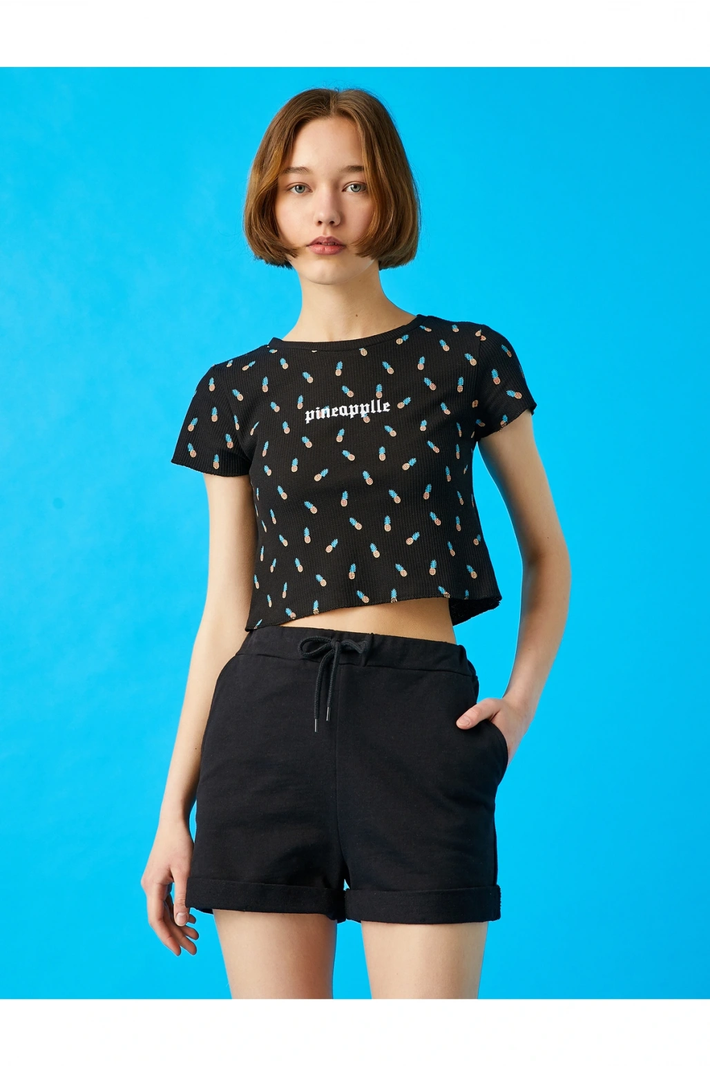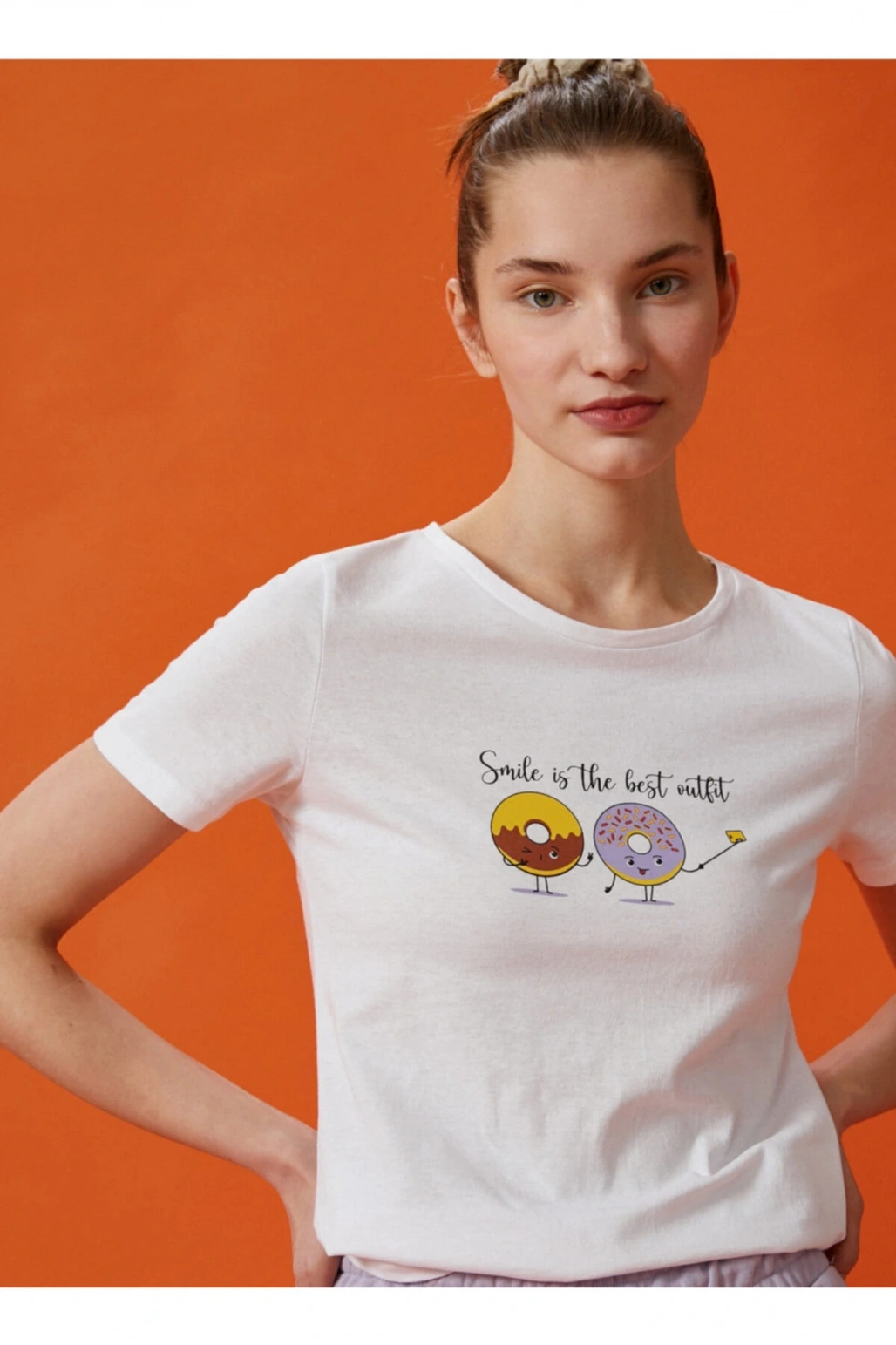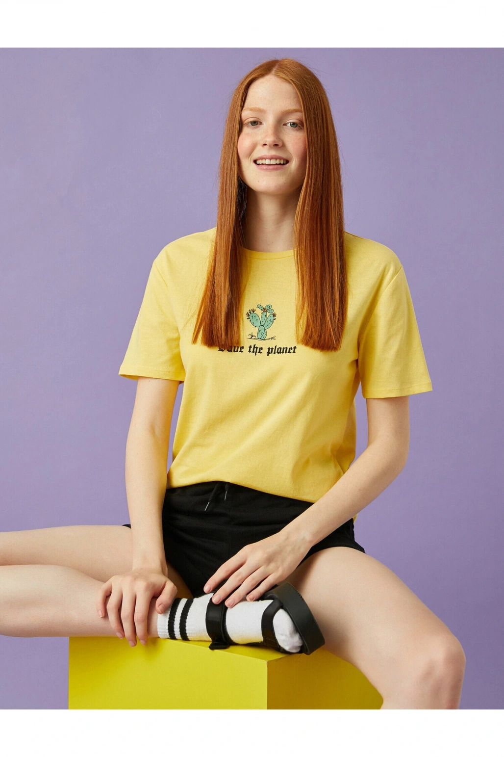 Baskılı Tişört Bisiklet Yaka Pamuklu