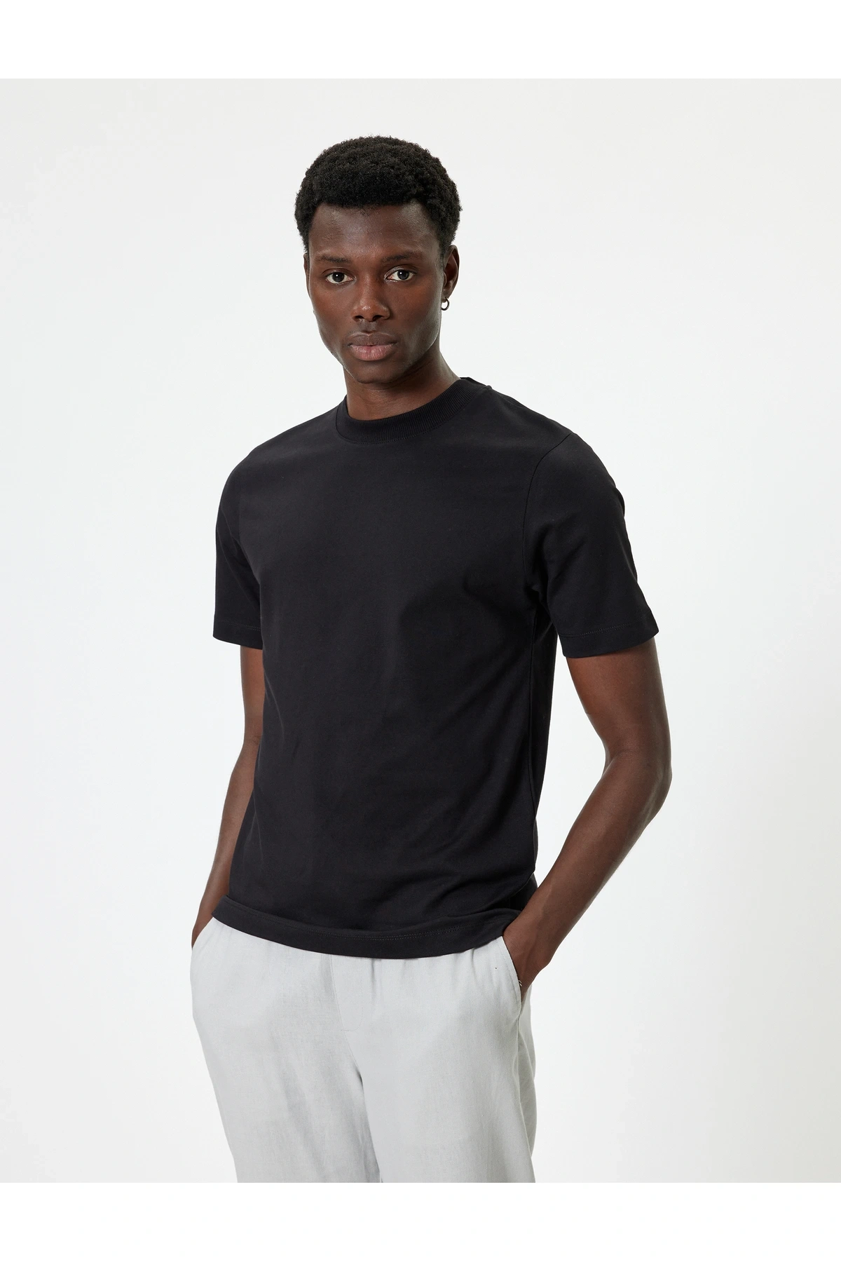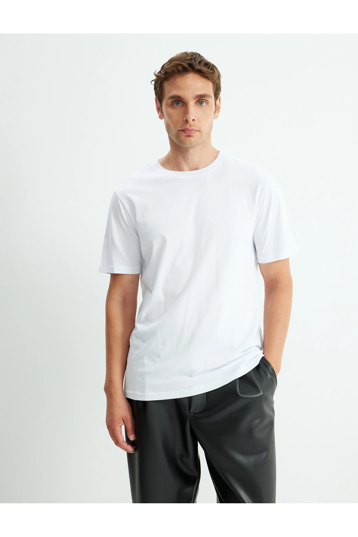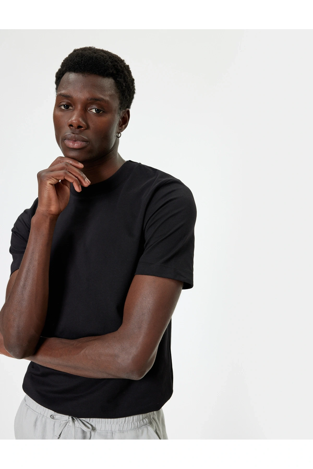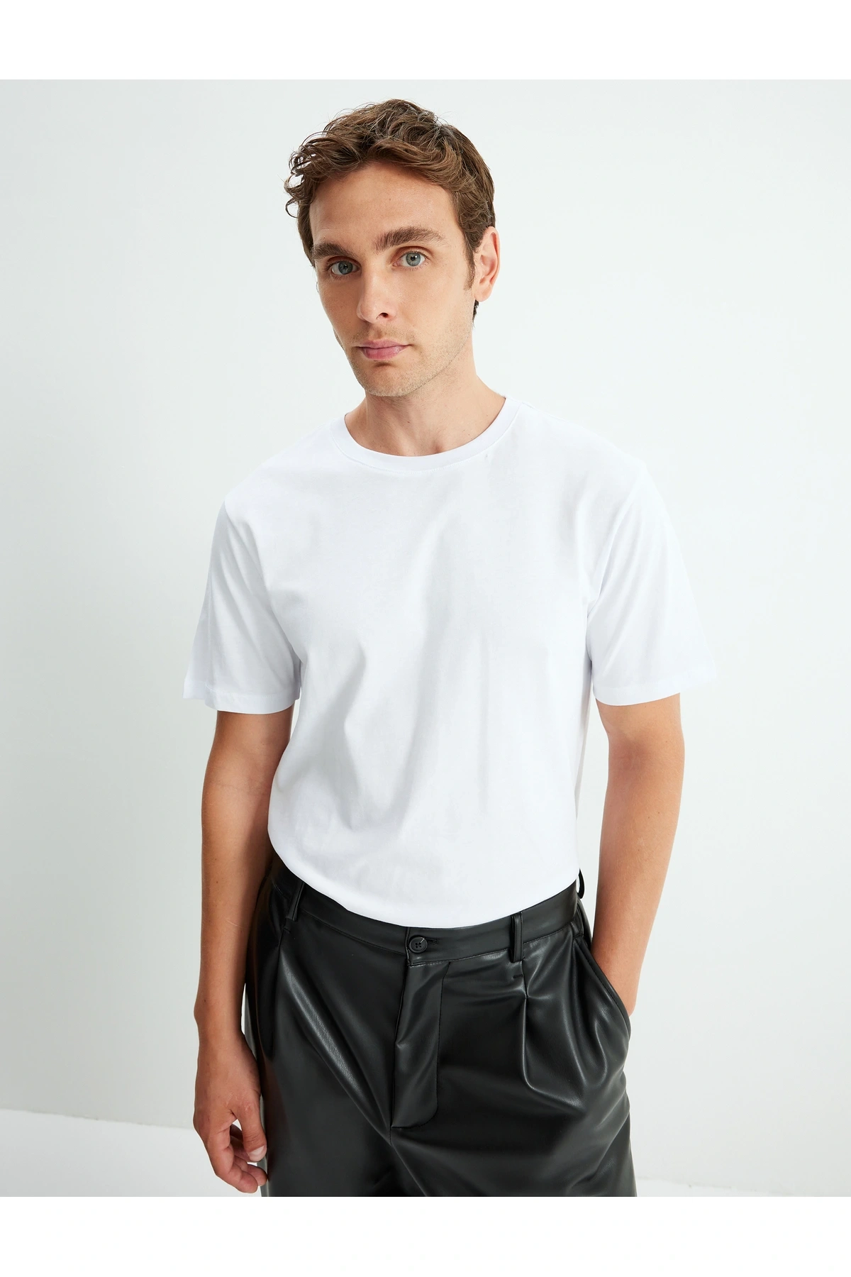Kısa Kollu Pamuklu Bisiklet Yaka Basic Tişört