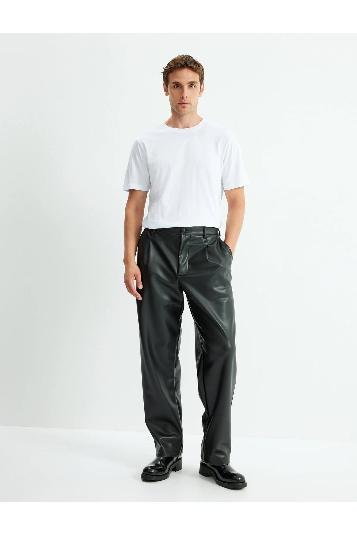 Bisiklet Yaka Tişört Cep Detaylı Kısa Kollu Pamuklu