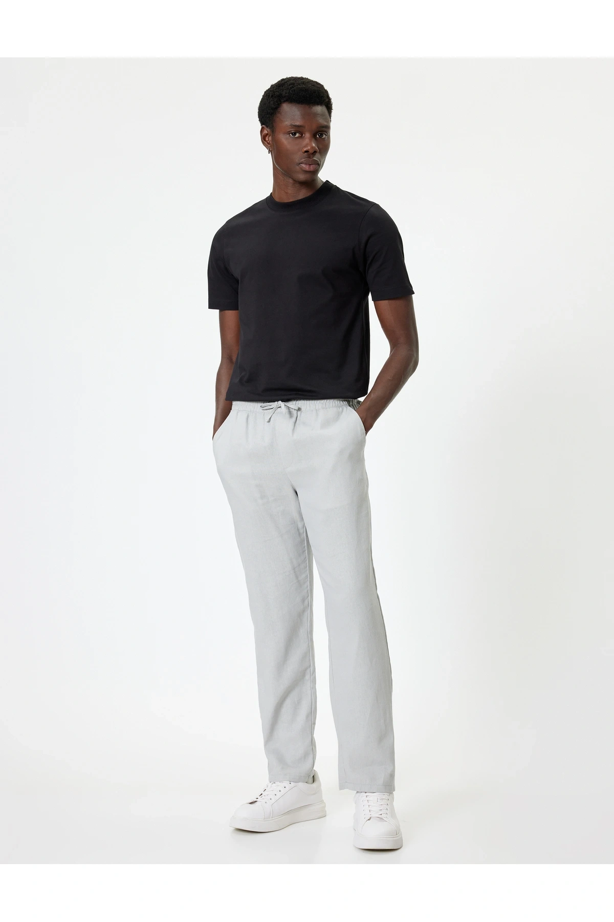 Keten Pantolon Beli Lastikli Cep Detaylı