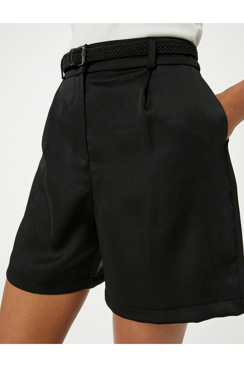 Mini Şort Kemerli Cep Detaylı Normal Bel