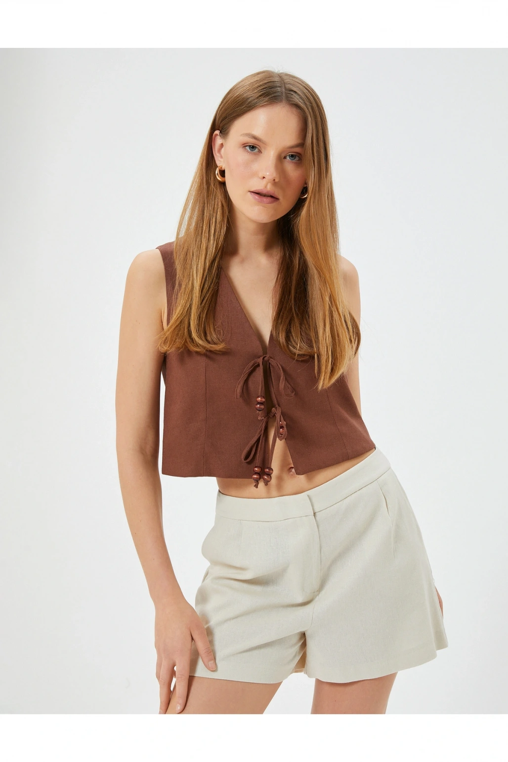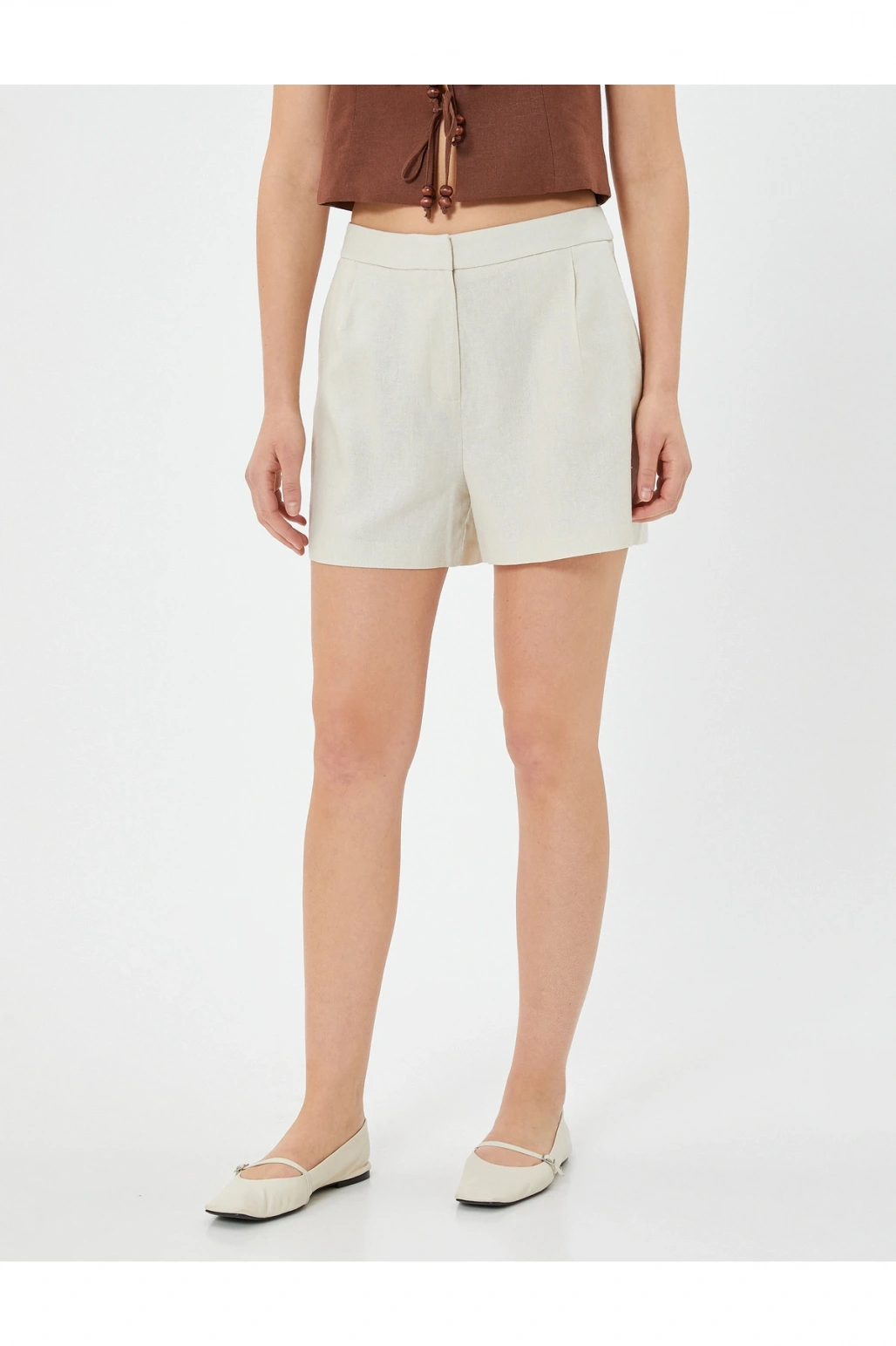 Keten Şort Cepli Standart Bel Bol Kalıp