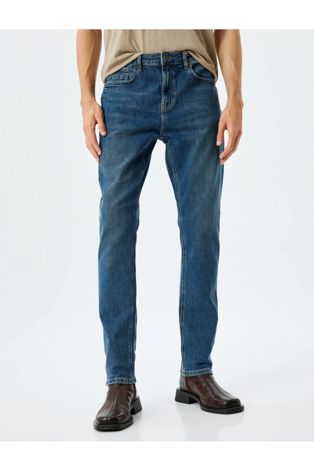 Normal bel, düz kesim, dar paça kot pantolon - Brad Slim Fit Jeans | Her dönem trendlerde olmayı başaran, dizden ayak bileğine hafif daralarak inen Brad Slim Fit Jeans'i oversize tişörtlerinizle kombinleyerek tarzınızı konuşturabilirsiniz! Ürününüzde kullanılan indigo boya, kullanım esnasında giysilerinize bir miktar renk verebilir.; İlk yıkama tersten ve tek başına, sonraki yıkamalarda ise yine tersten ve renkli çamaşırlar ile birlikte yıkamanızı tavsiye ederiz.; | Model Boy: 190 | Model Kalça: 93 | Model Üst: 81 | Model Bel: M | Model Göğüs: 96 | Model Jean: 32/32
