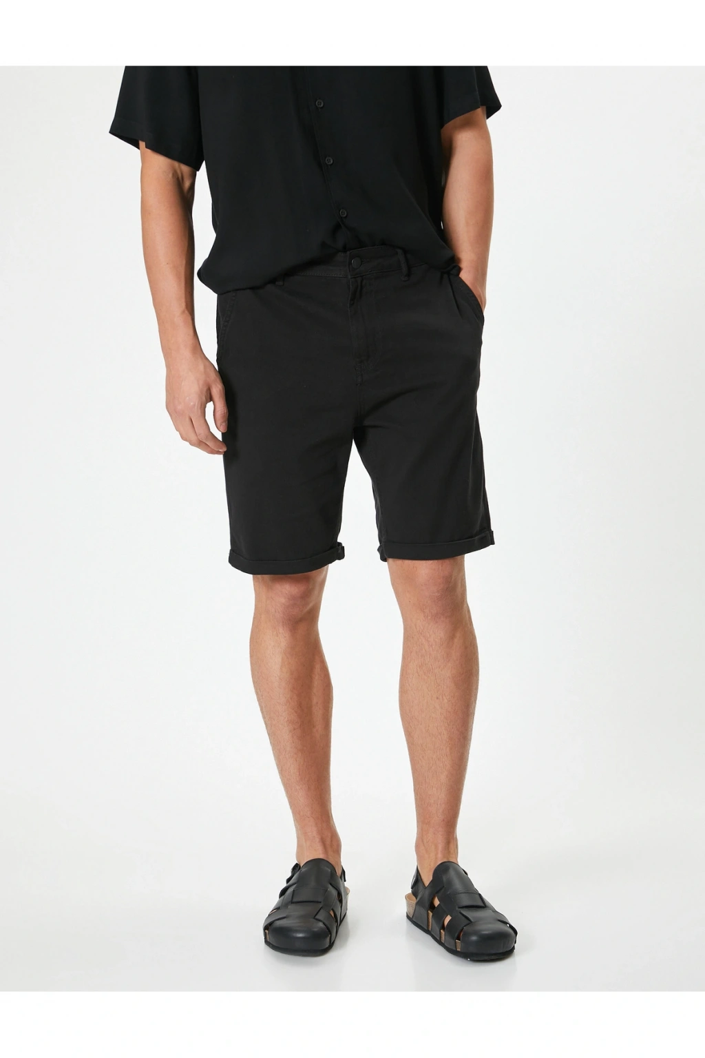 Kumaş Şort Bermuda Chino Slim Fit Düğmeli Cepli Katlı Paça