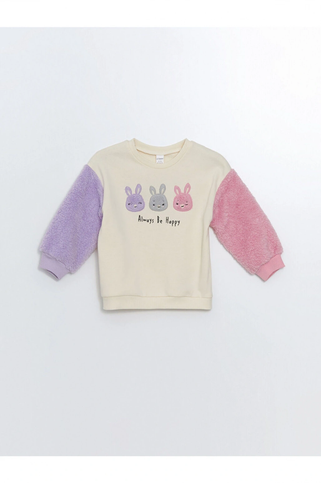 Lcw Kids Ekru Bisiklet Yaka Kalın Baskılı Kız Bebek Sweatshirt