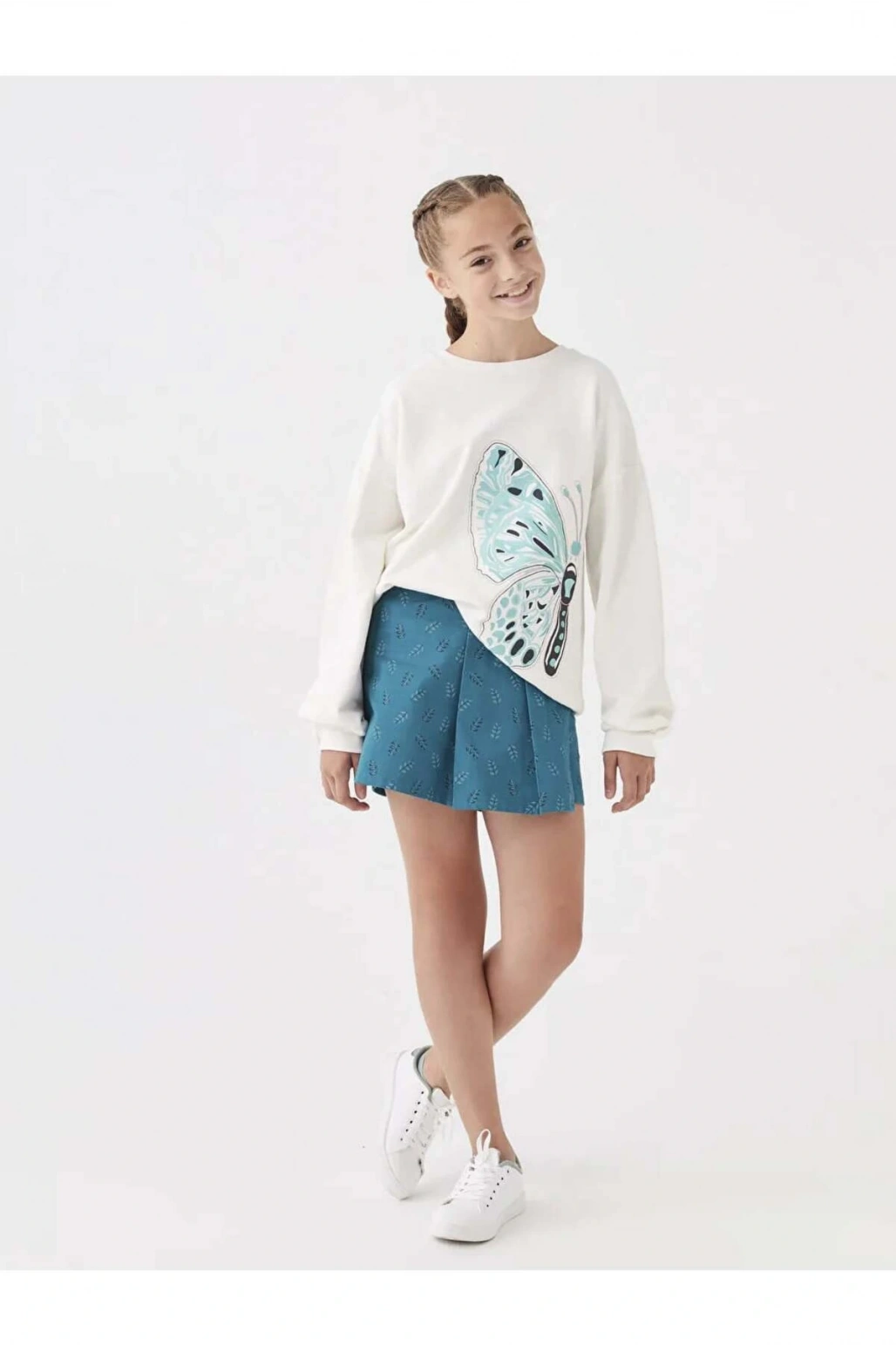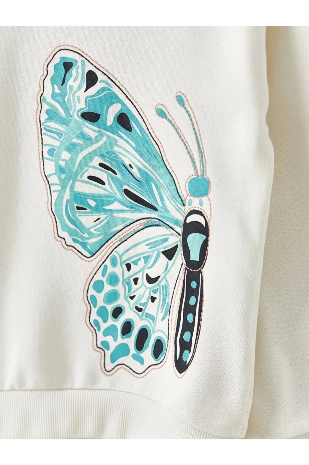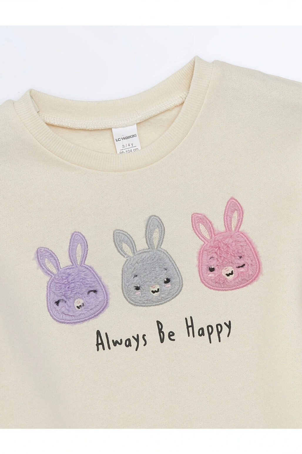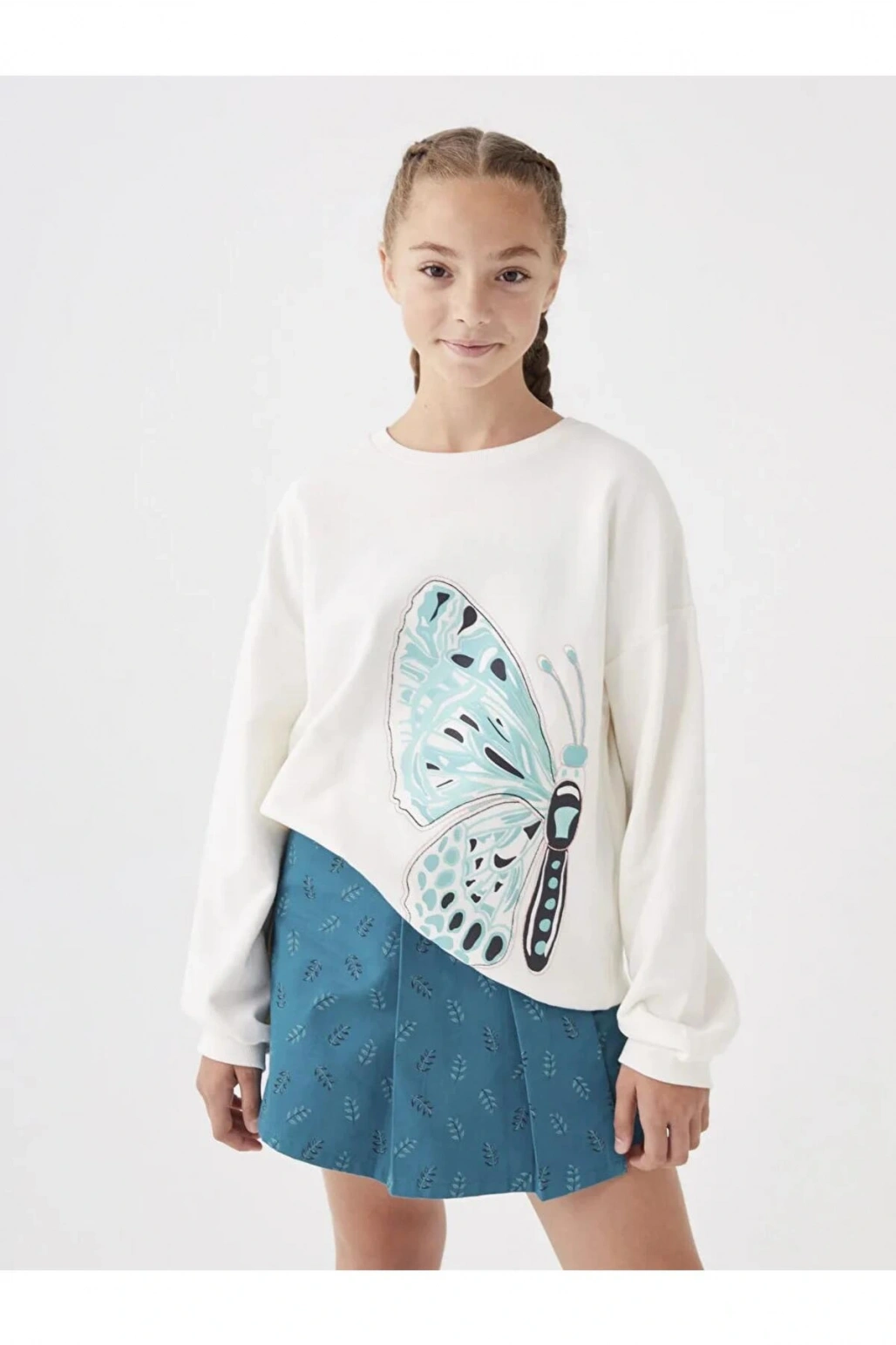 LCW Kids Ekru Bisiklet Yaka Baskılı Uzun Kollu Kız Çocuk Sweatshirt