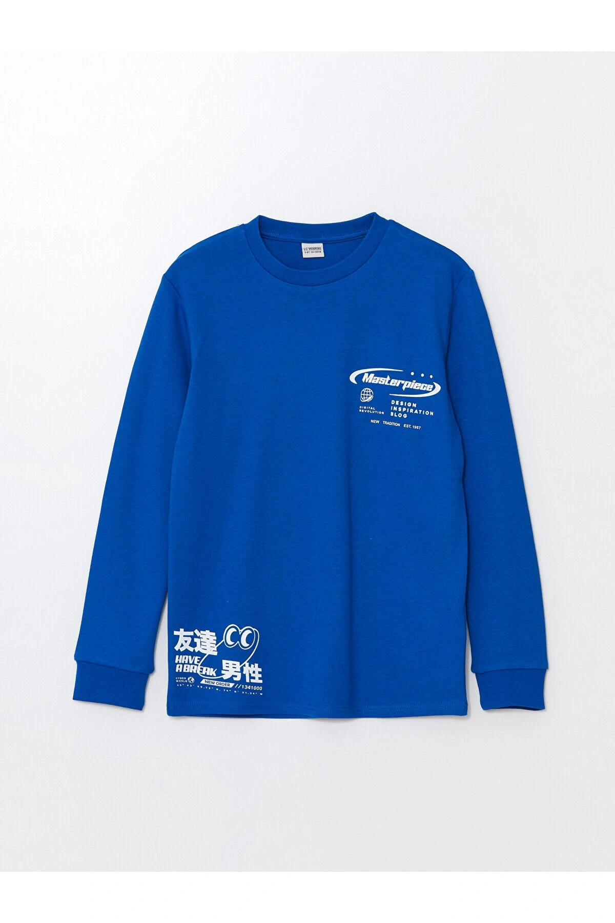 Bisiklet Yaka Baskılı Uzun Kollu Erkek Çocuk Tişört