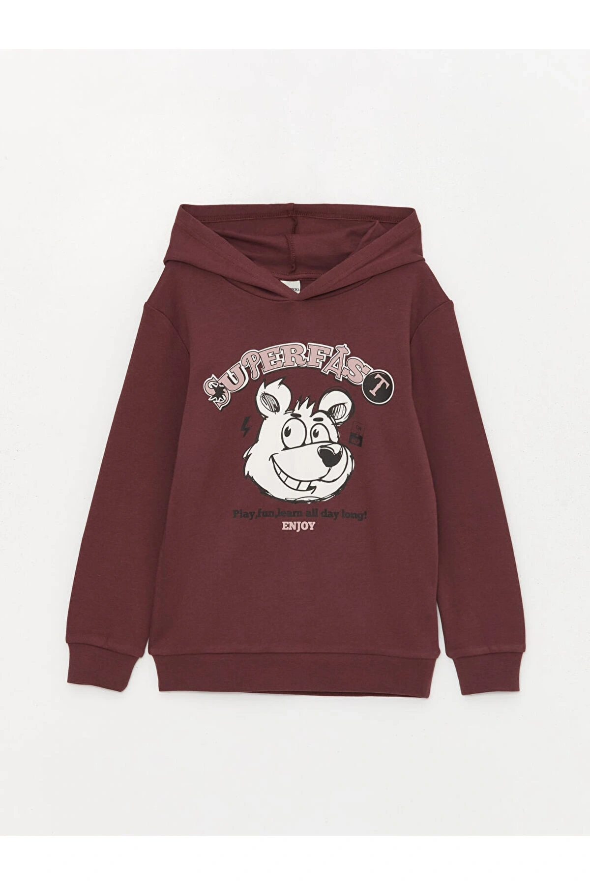LCW Kids Mürdüm Kapüşonlu Baskılı Uzun Kollu Erkek Çocuk Tişört