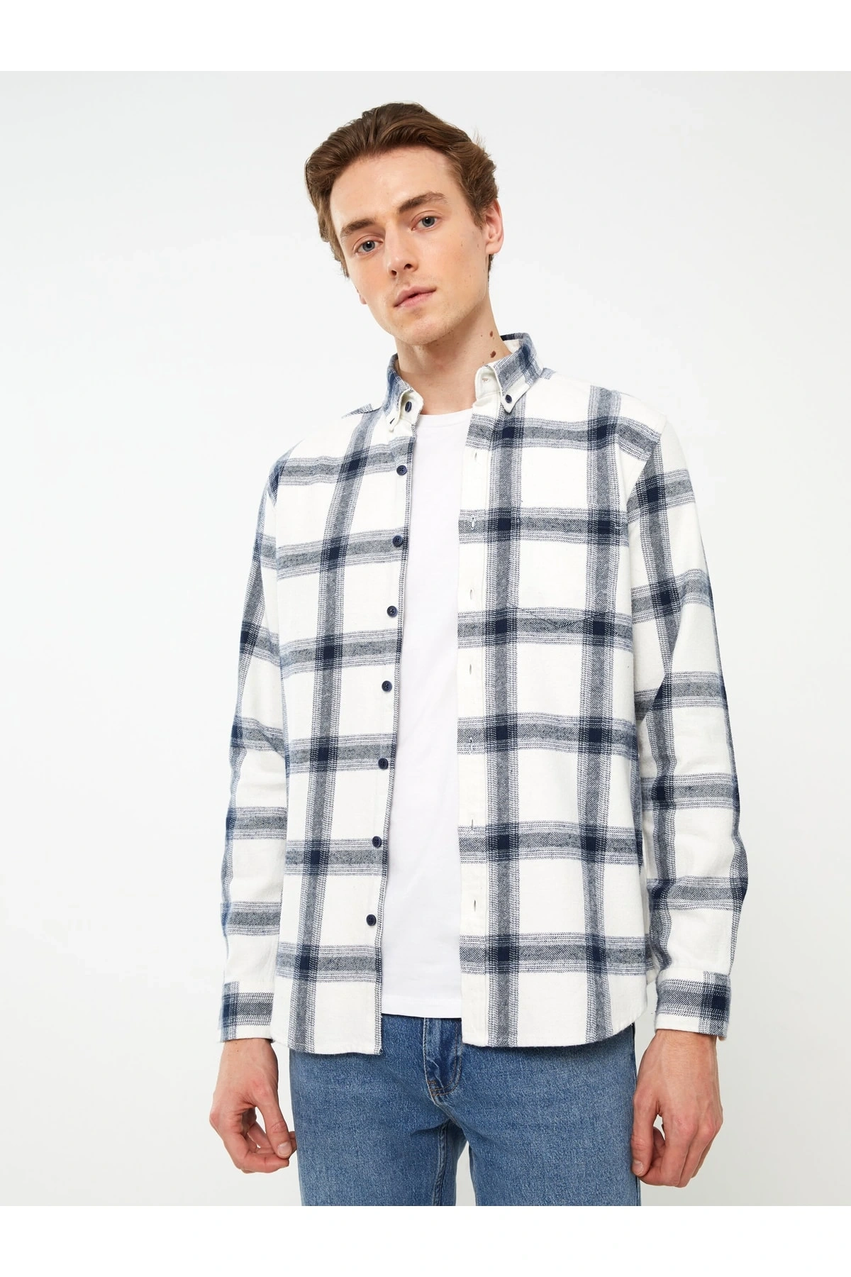 Regular Fit Uzun Kollu Ekose Gabardin Erkek Gömlek