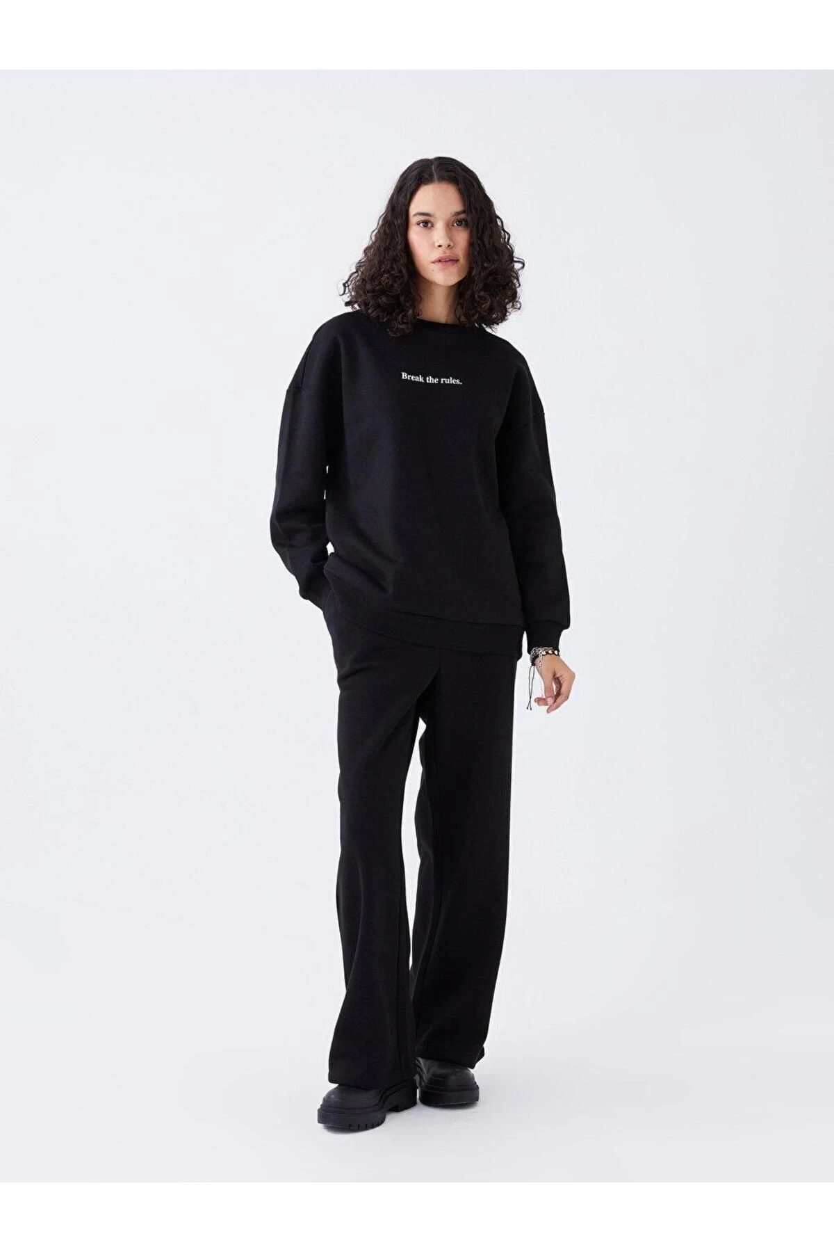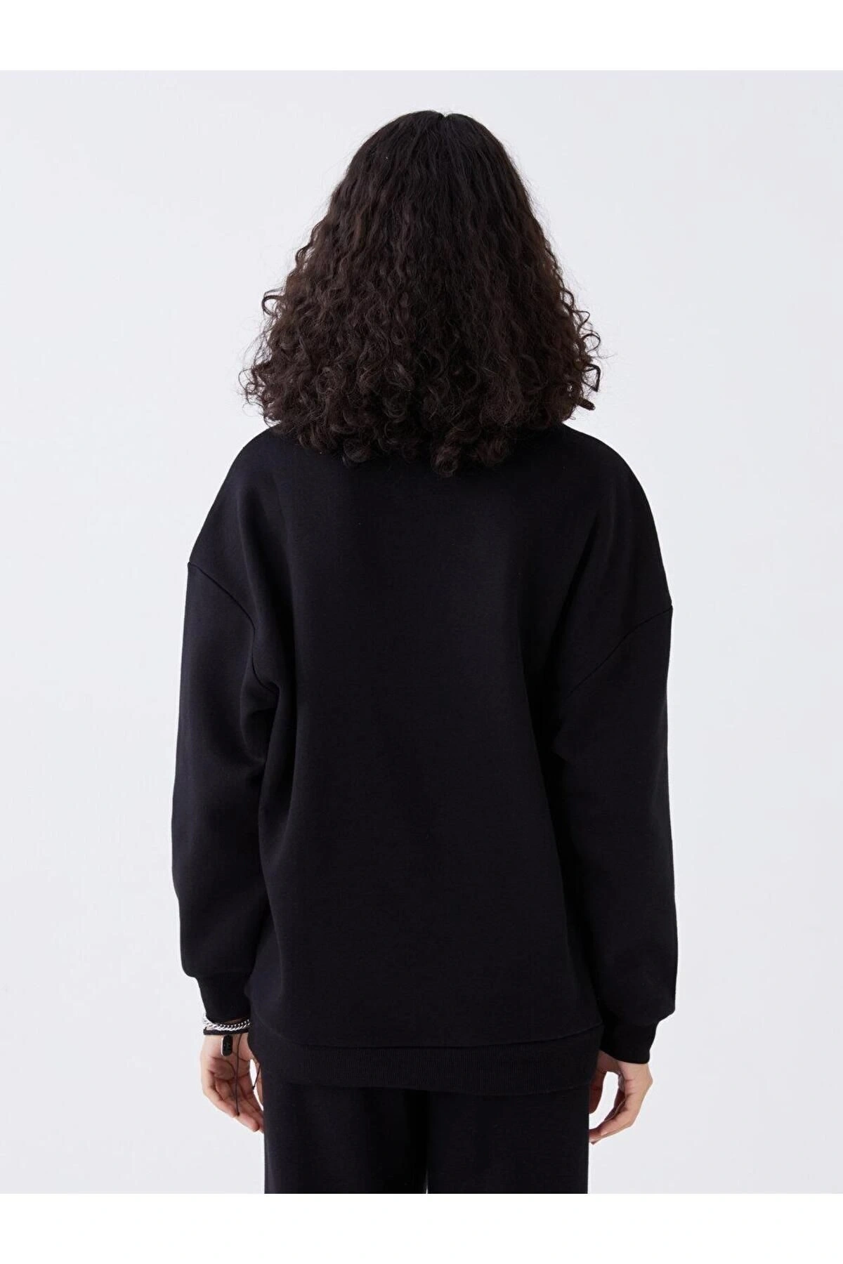 LCW Vision Bisiklet Yaka Baskılı Uzun Kollu Oversize Kadın Sweatshirt