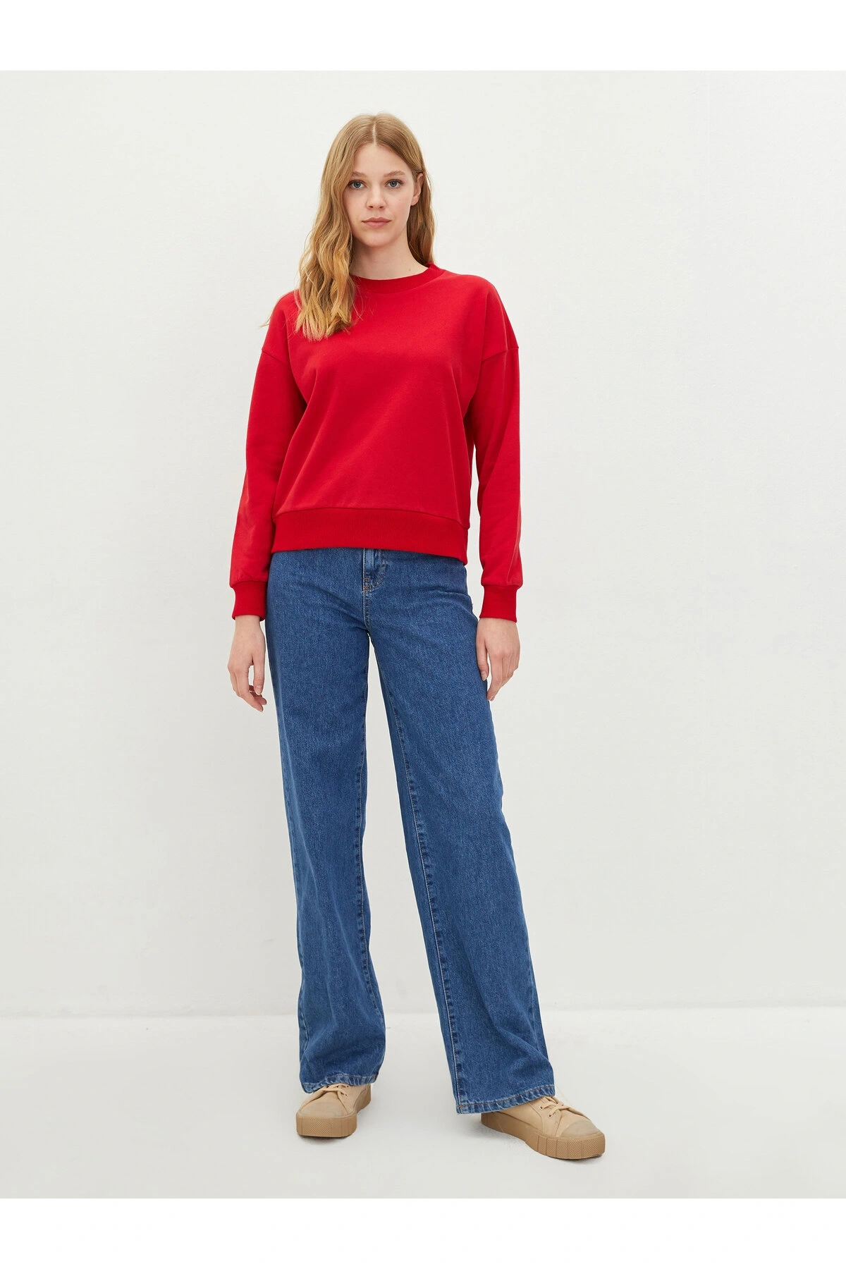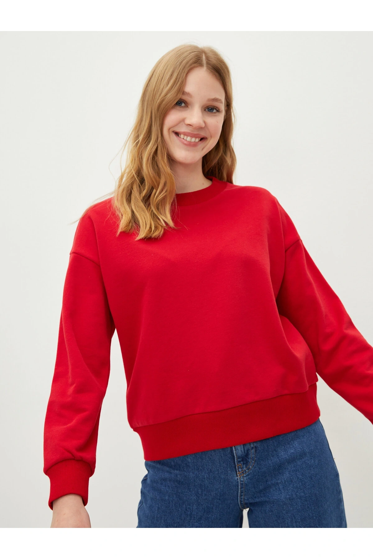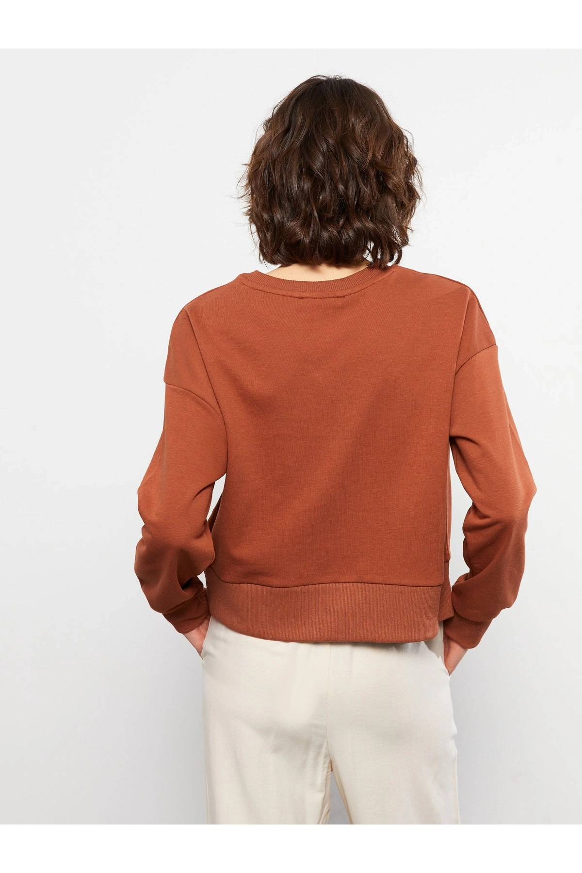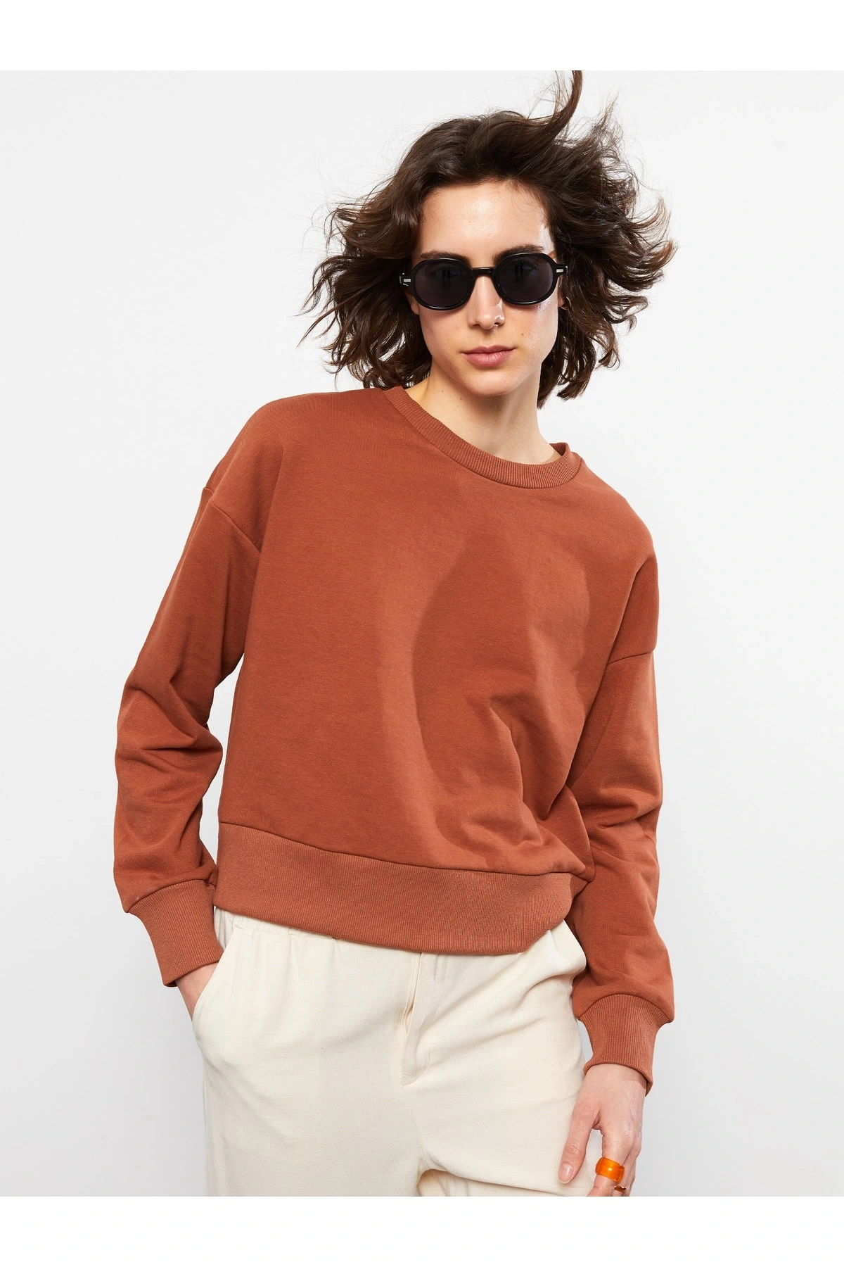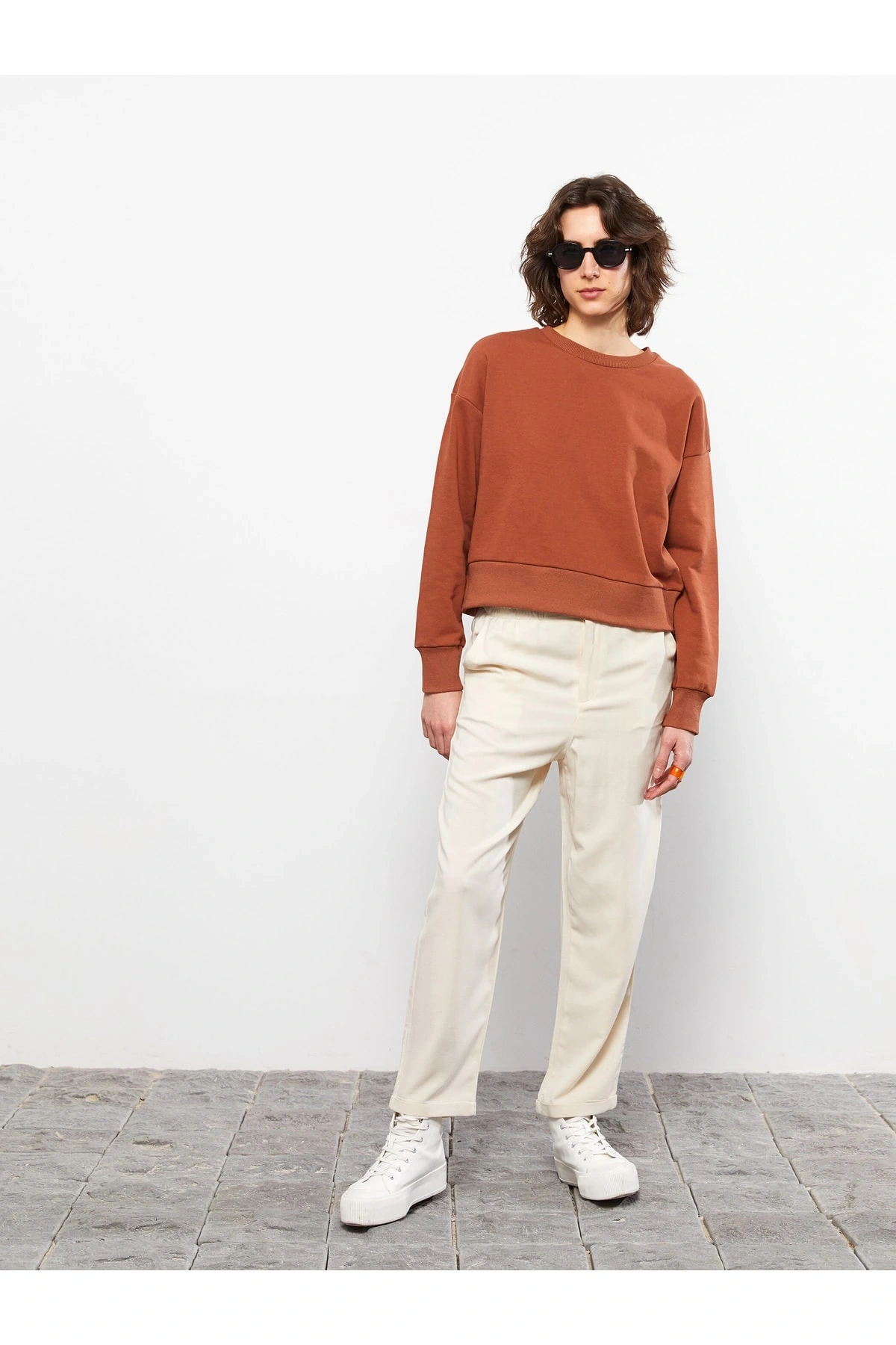 Bisiklet Yaka Düz Uzun Kollu Kadın Sweatshirt