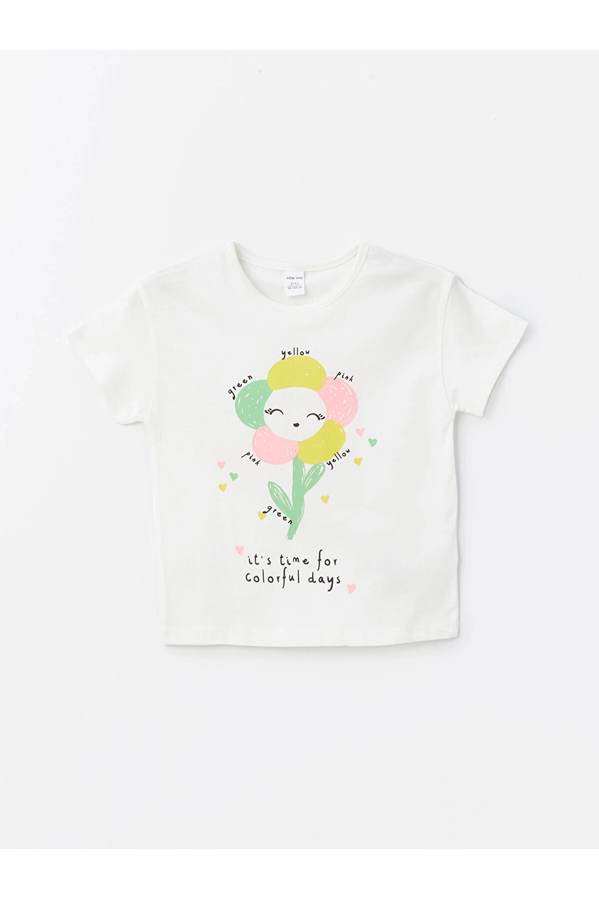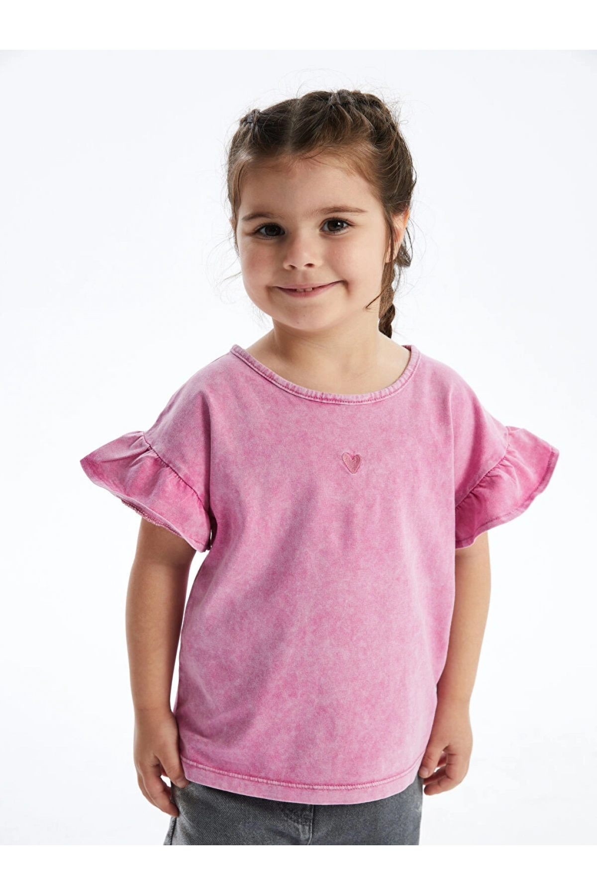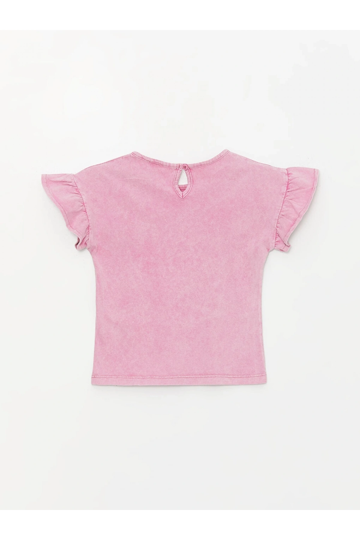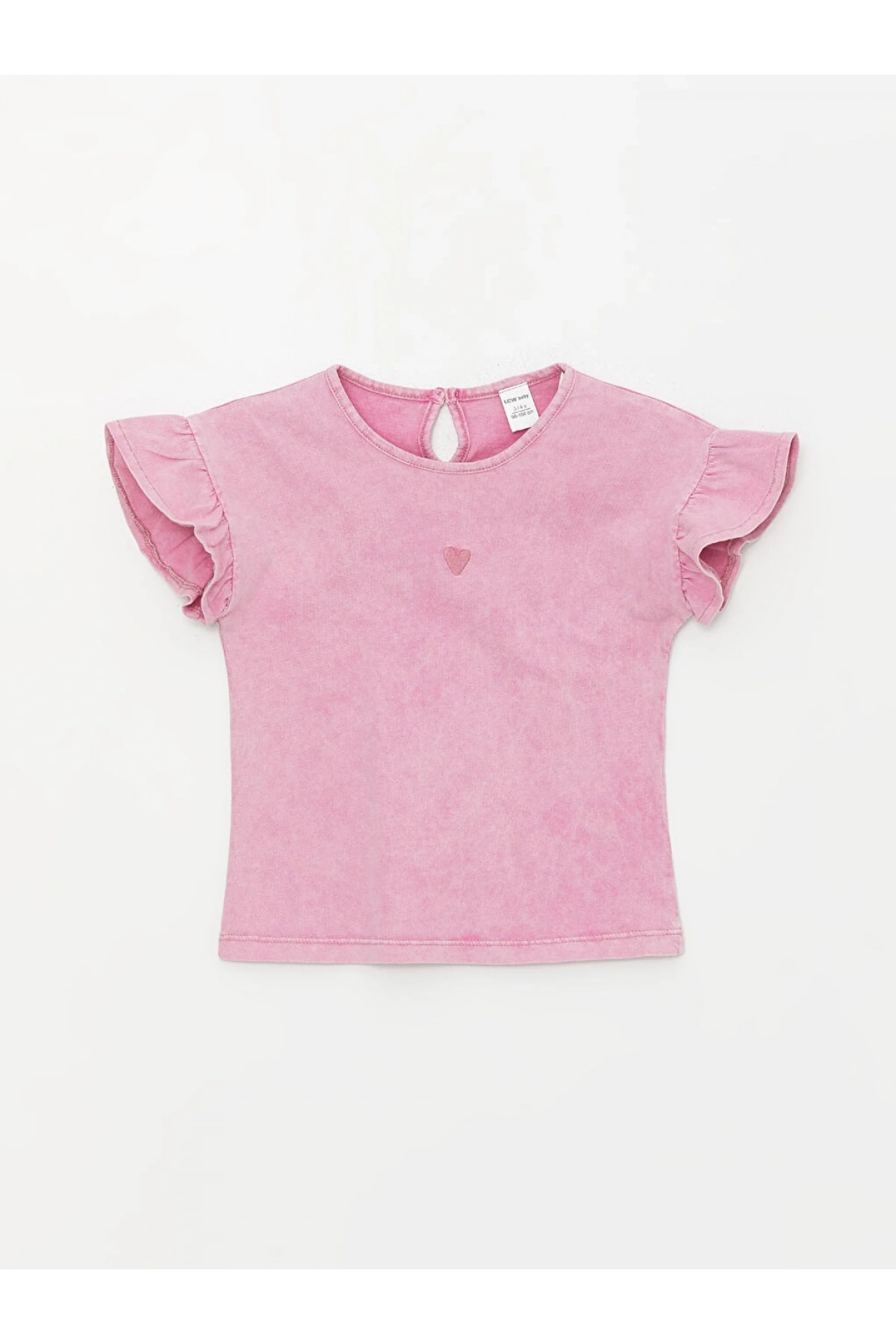 LCW baby Bisiklet Yaka Nakışlı Kız Bebek Tişört
