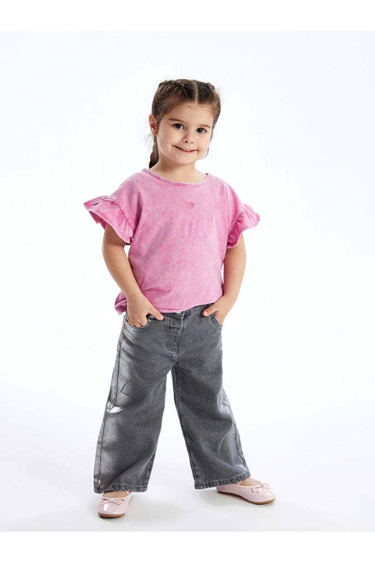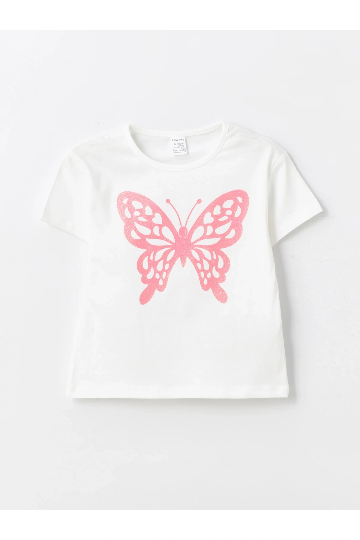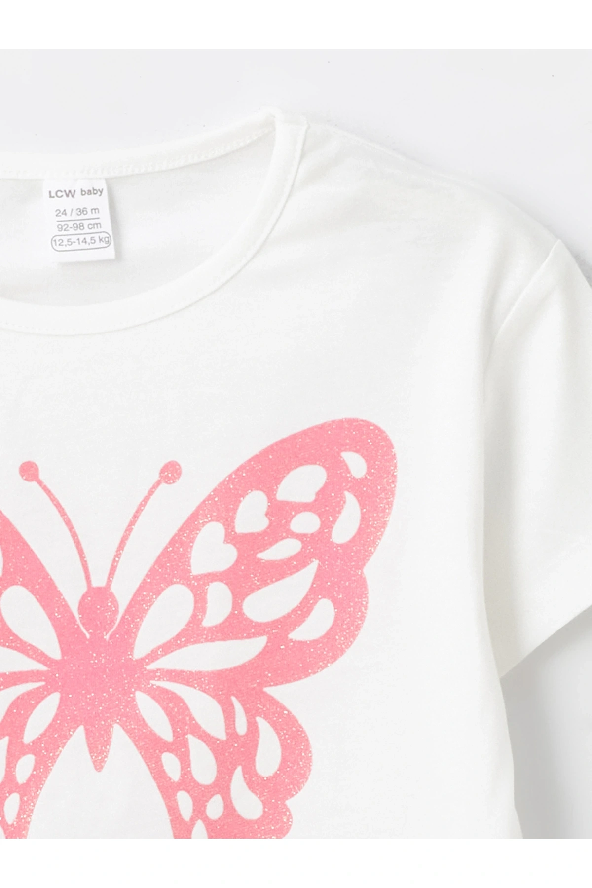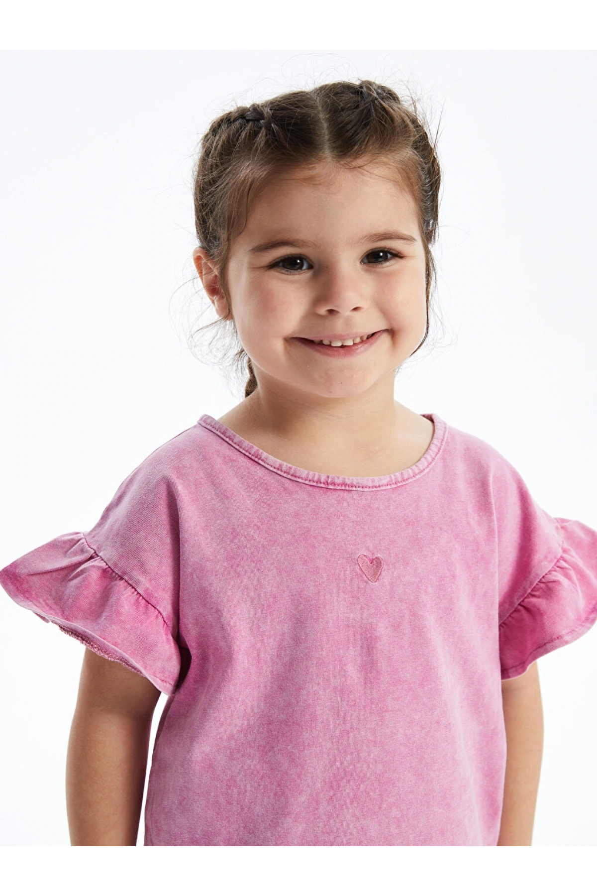 LCW baby Bisiklet Yaka Nakışlı Kız Bebek Tişört