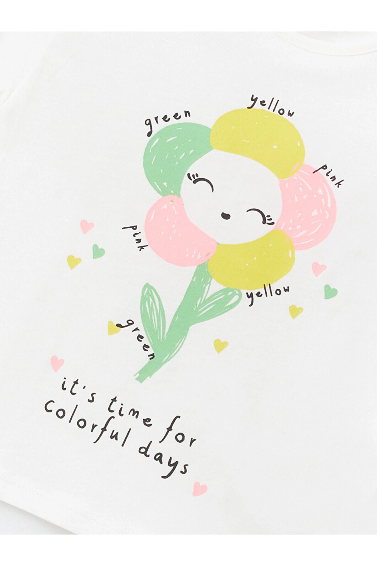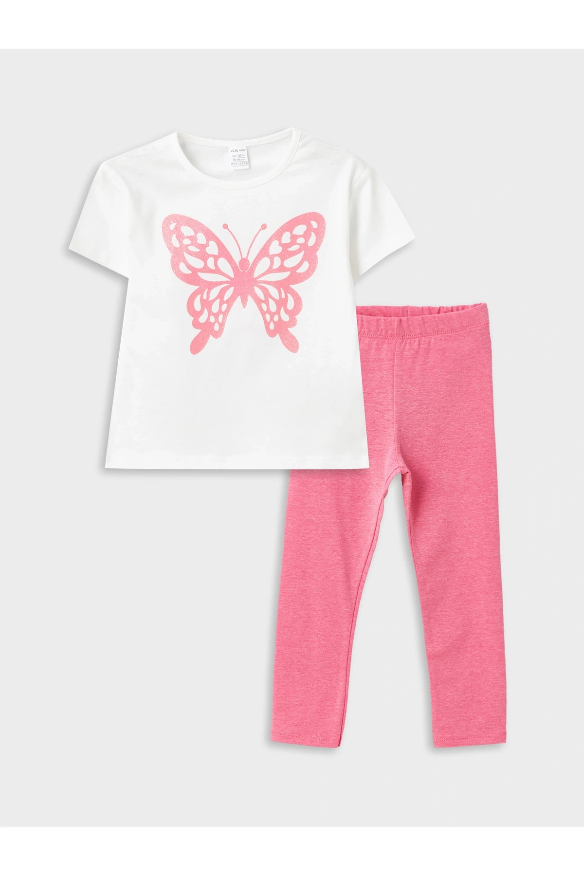 Bisiklet Yaka Kısa Kollu Baskılı Kız Bebek Tişört ve Tayt 2'li Takım