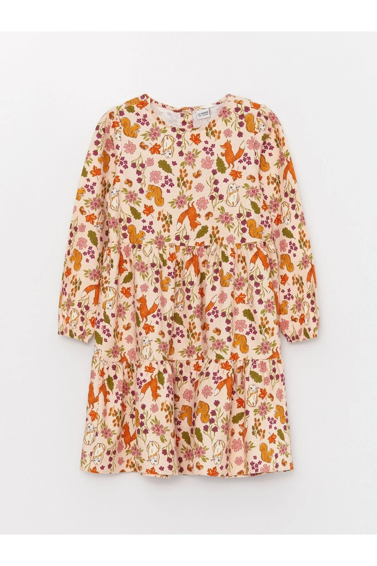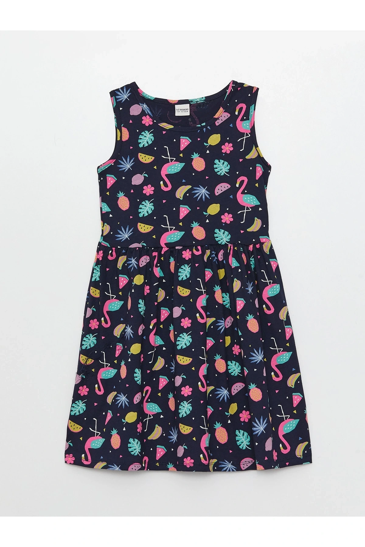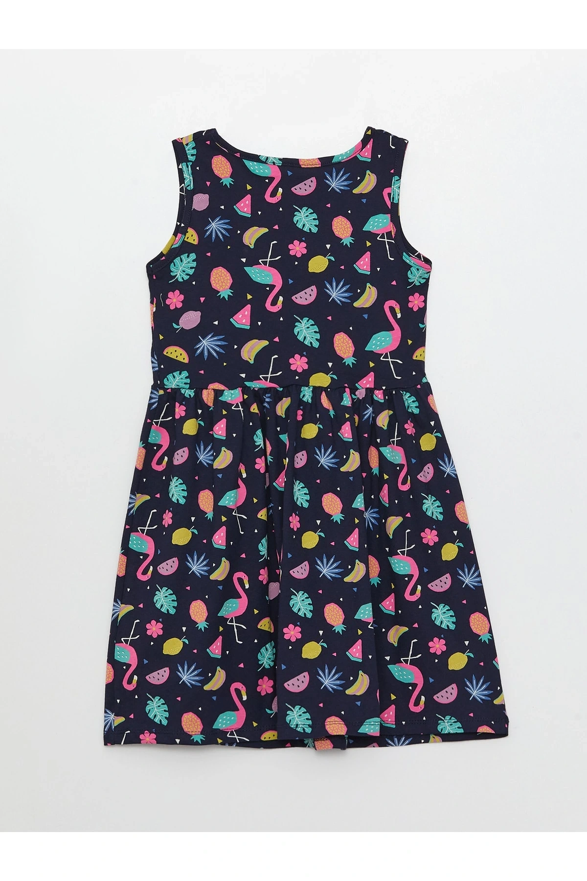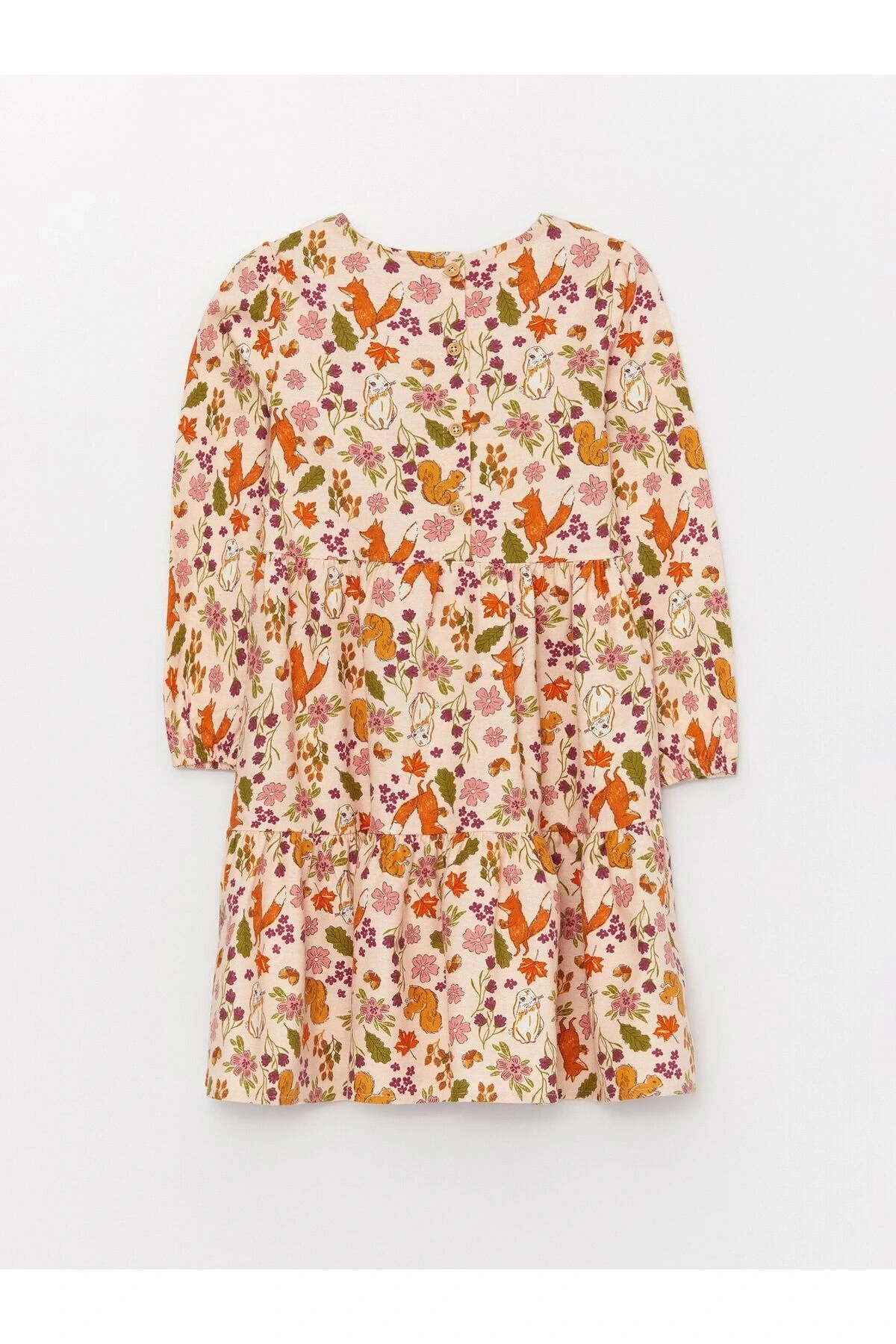 Bisiklet Yaka Baskılı Kız Çocuk Elbise