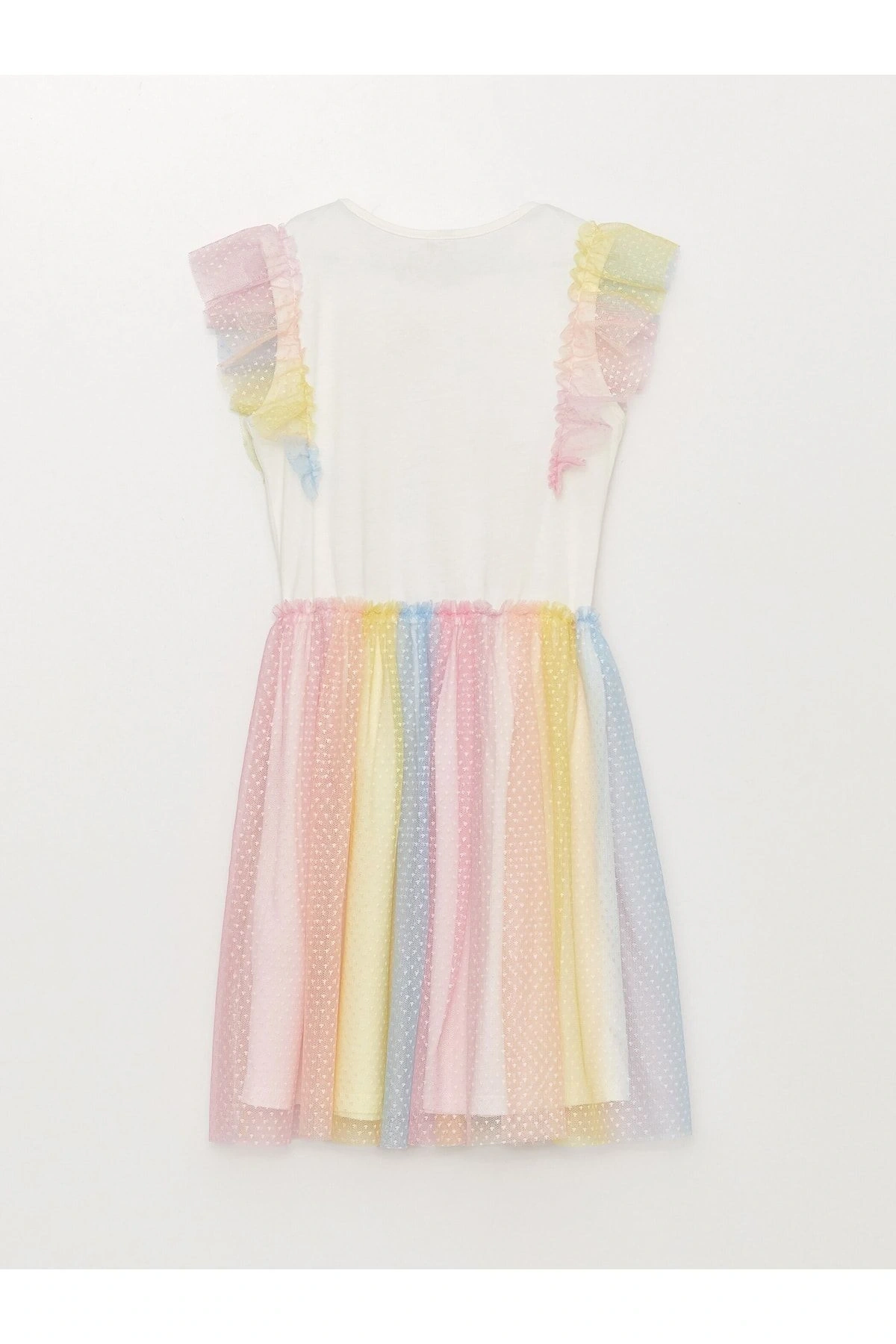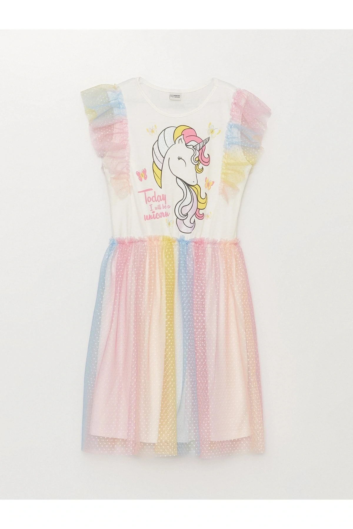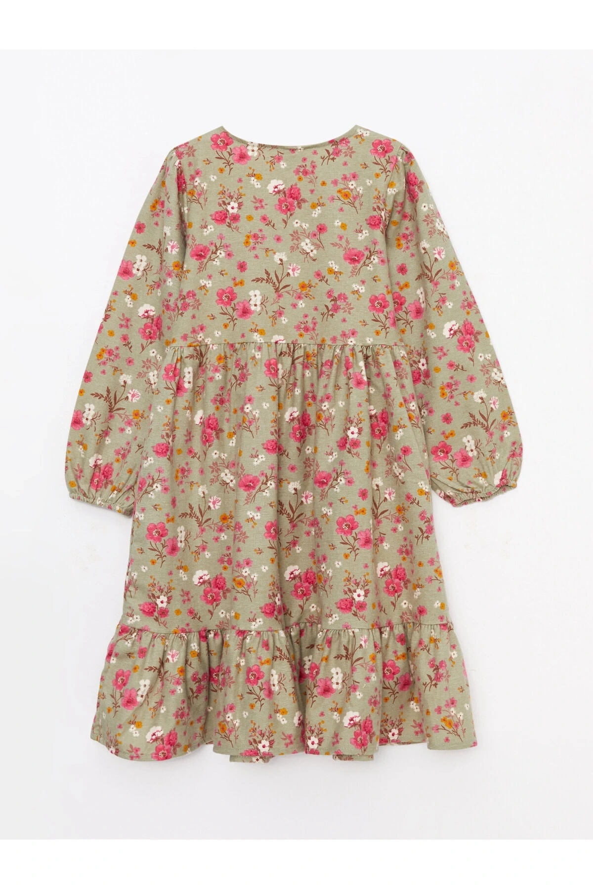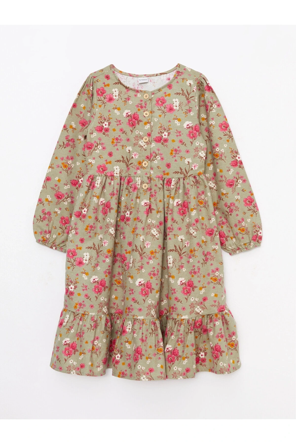 Bisiklet Yaka Baskılı Kız Çocuk Elbise