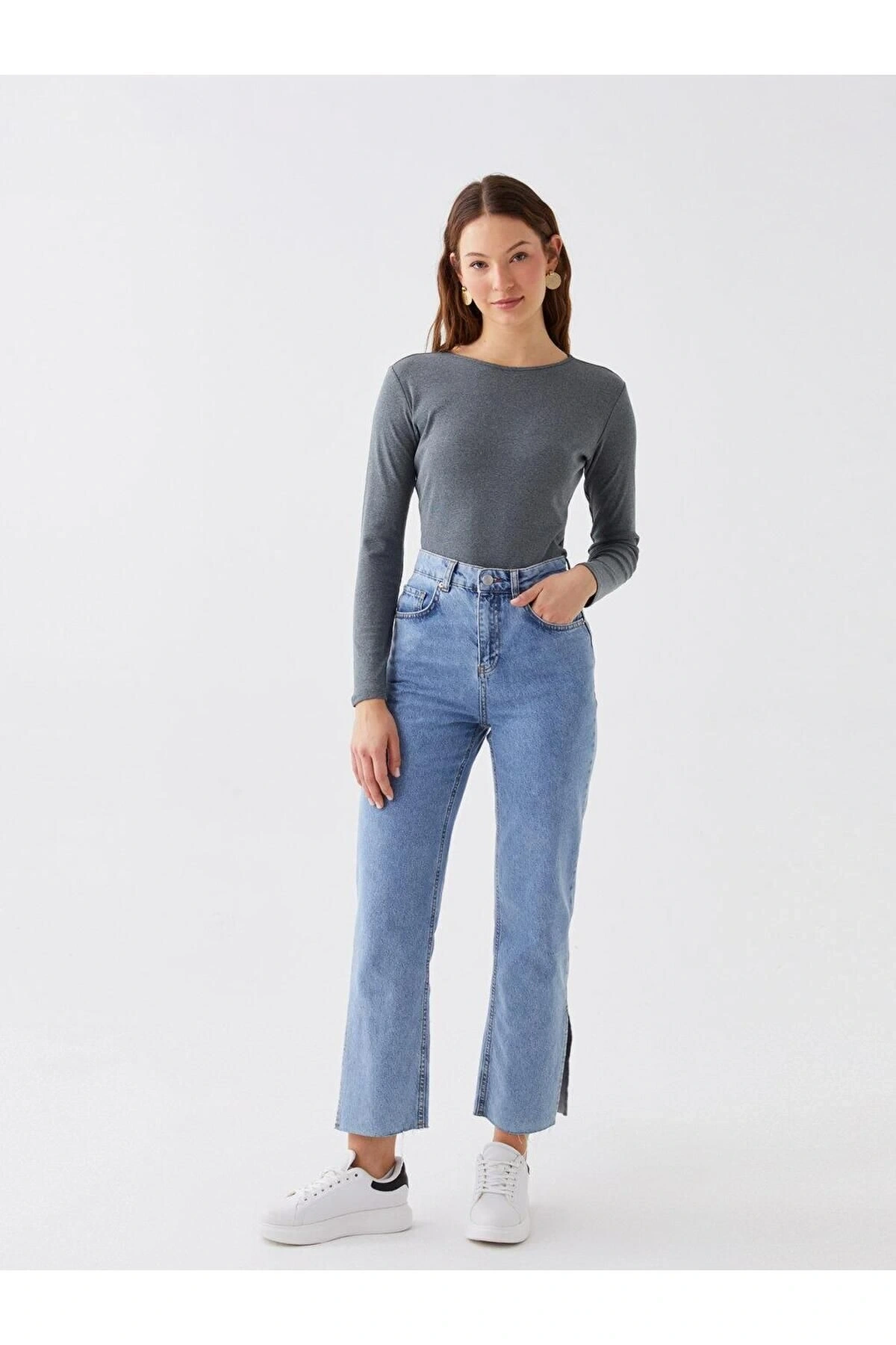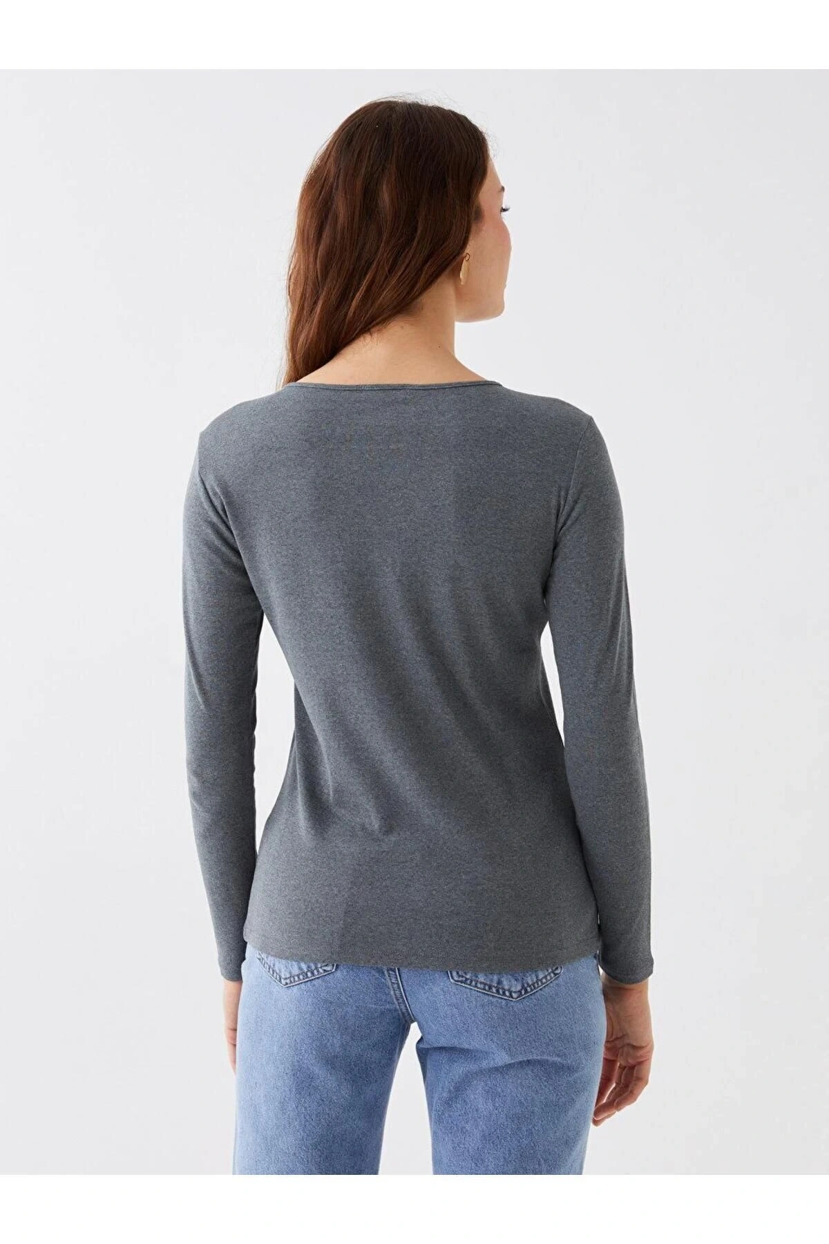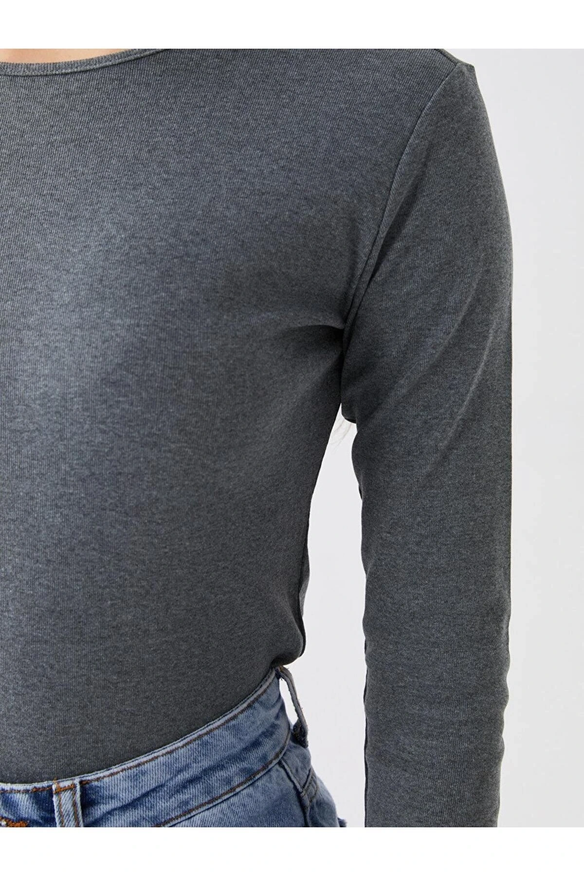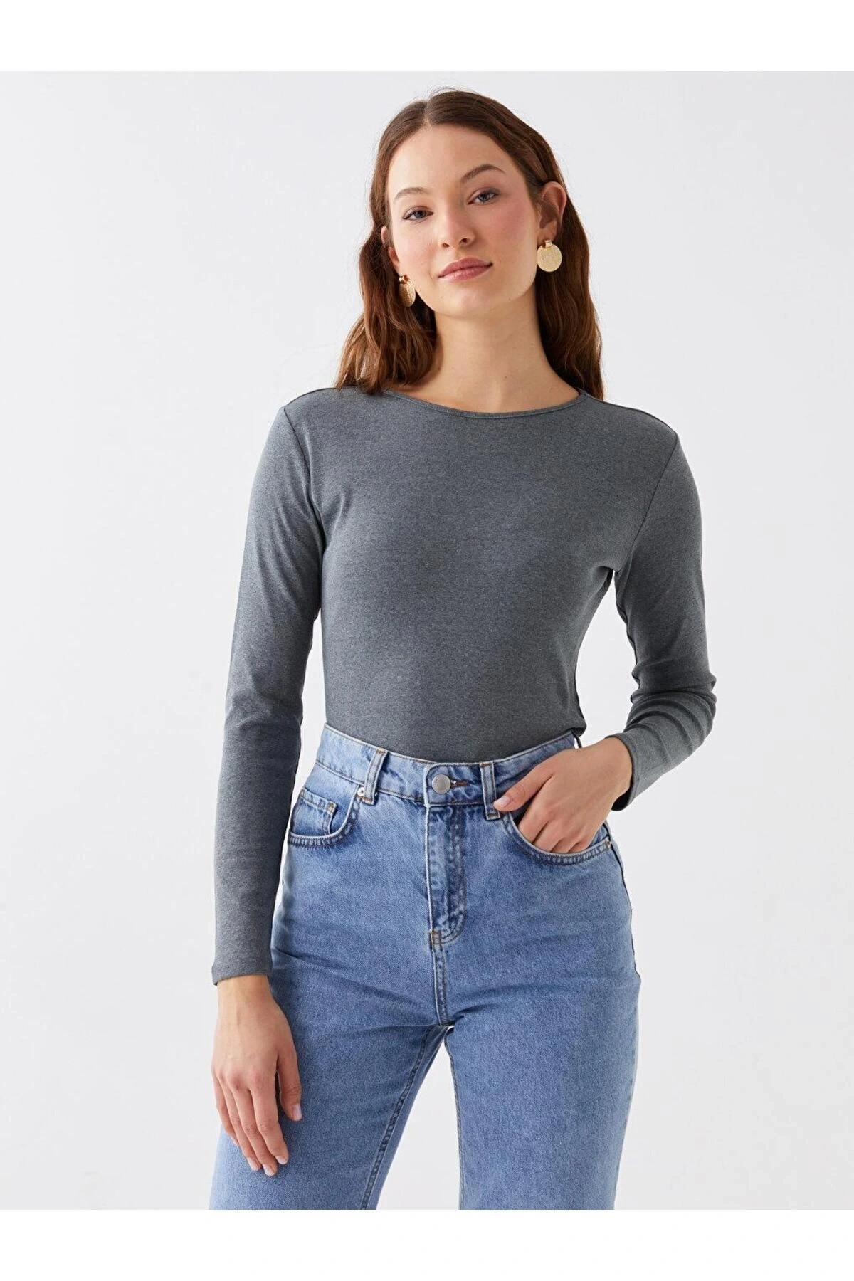 LCWAIKIKI Classic Bisiklet Yaka Düz Uzun Kollu Kadın Tişört
