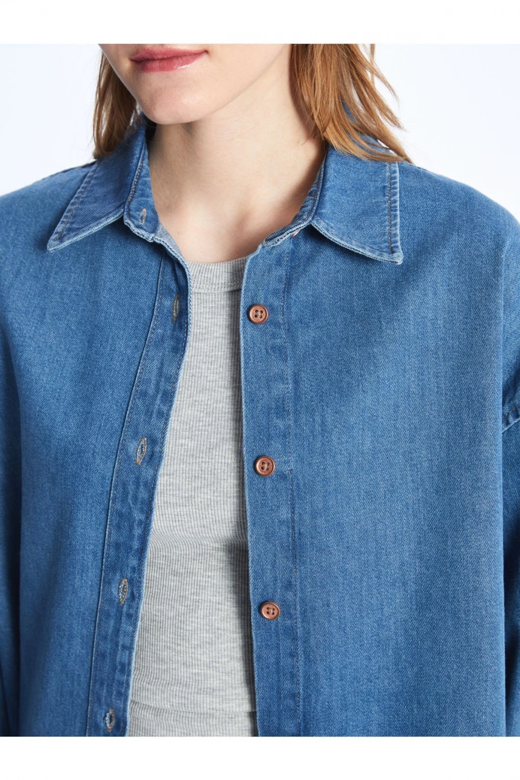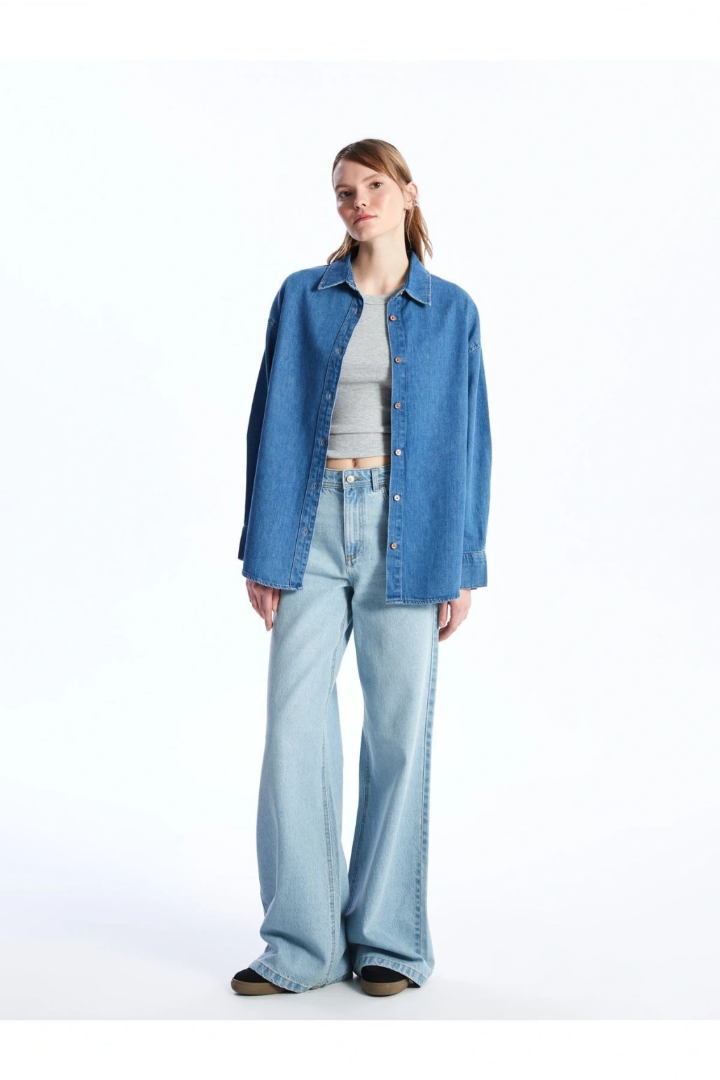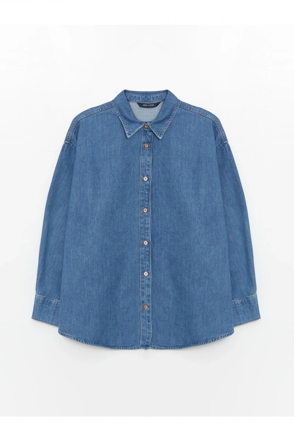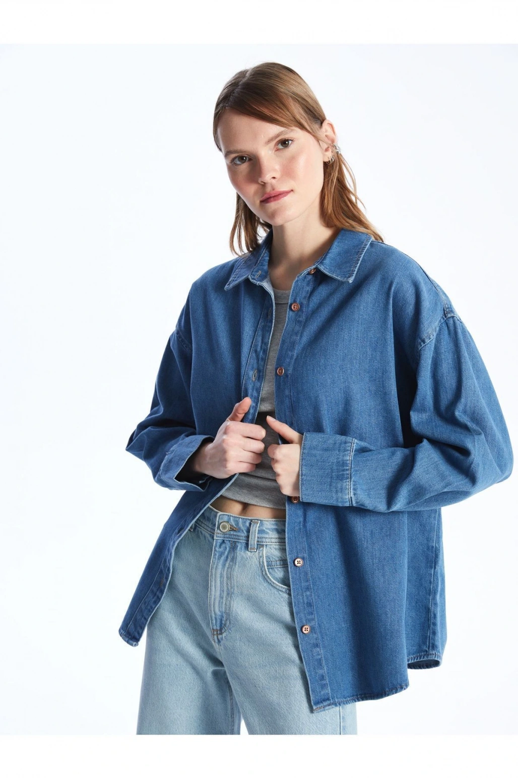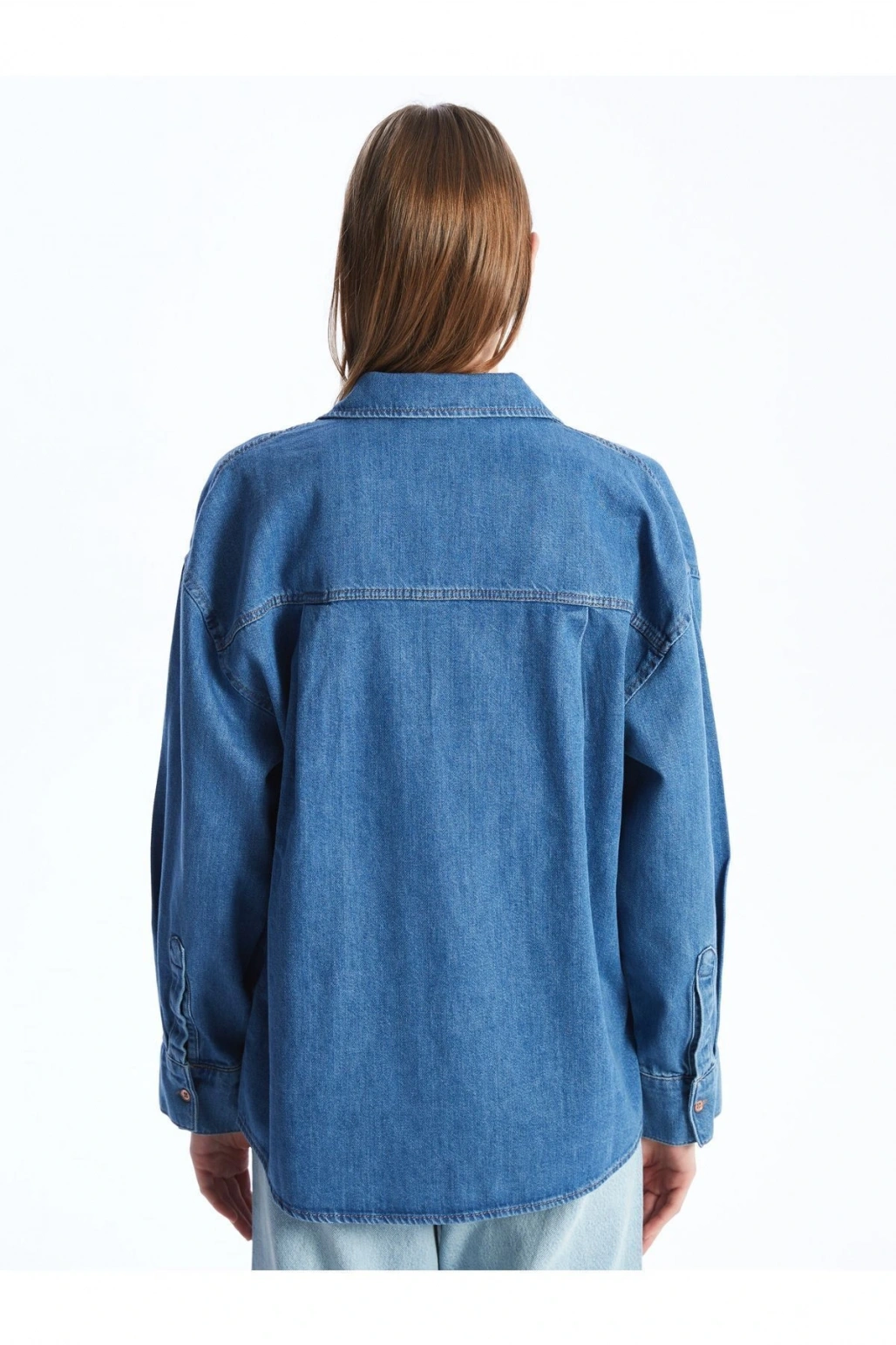 Düz Uzun Kollu Oversize Kadın Jean Gömlek