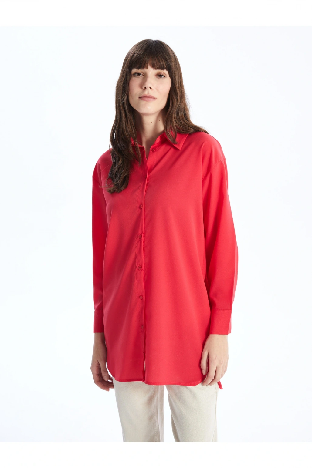 Düz Uzun Kollu Oversize Kadın Gömlek Tunik