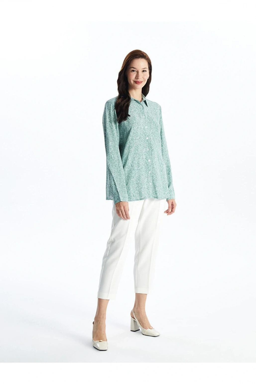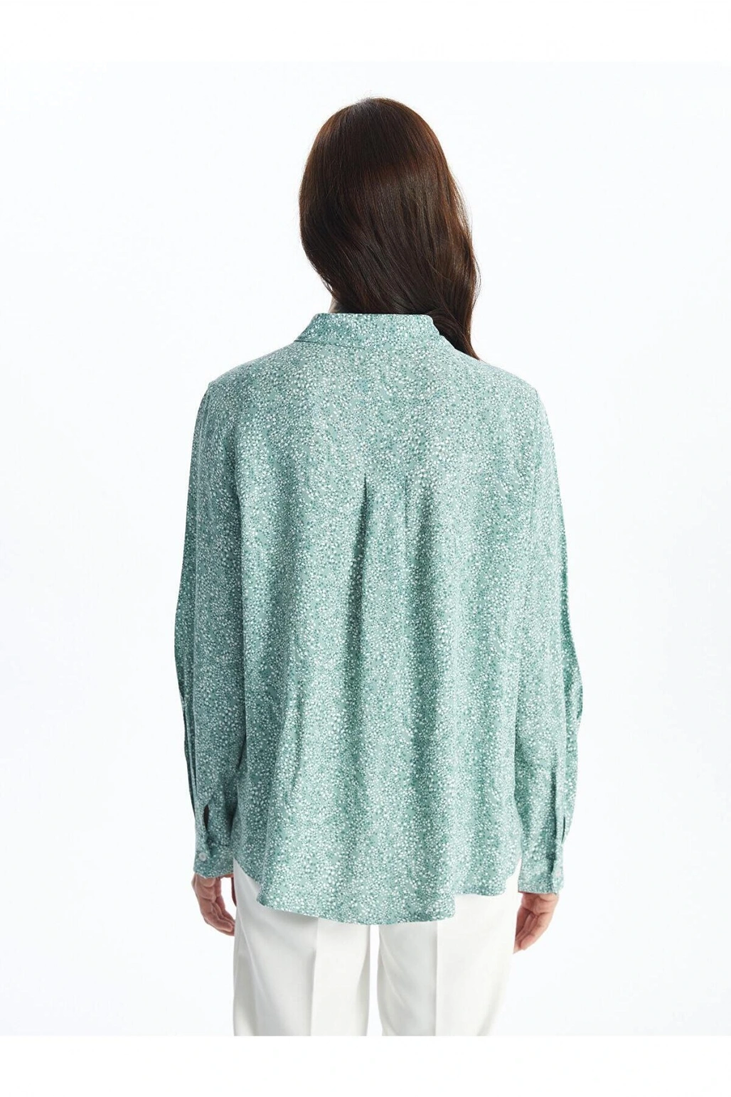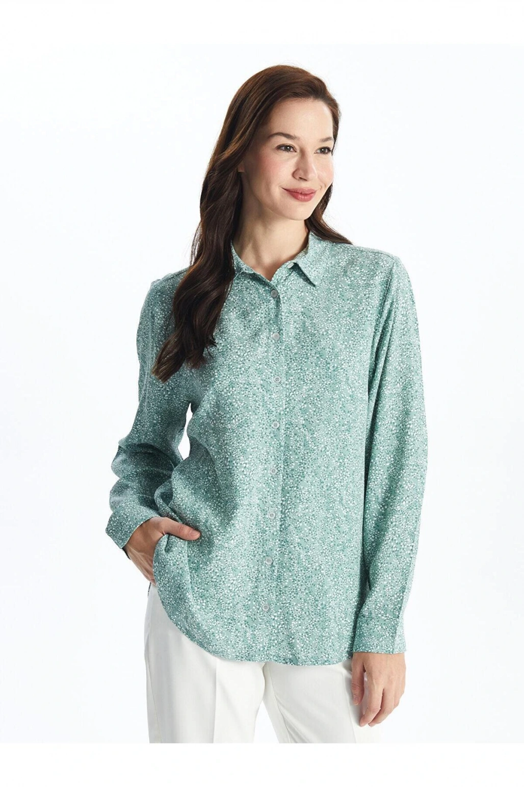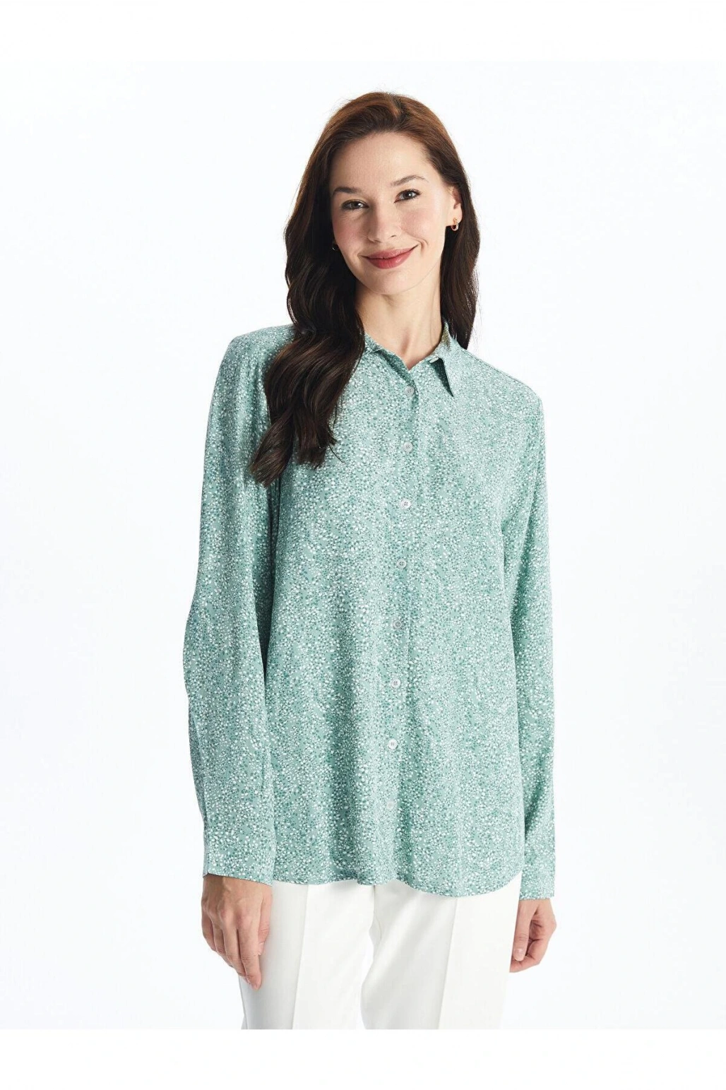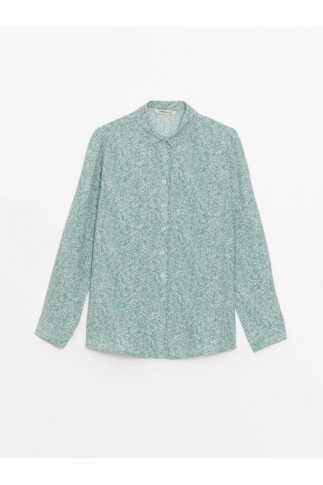 LCW Grace Nane Yeşili Baskılı Desenli Uzun Kollu Kadın Gömlek