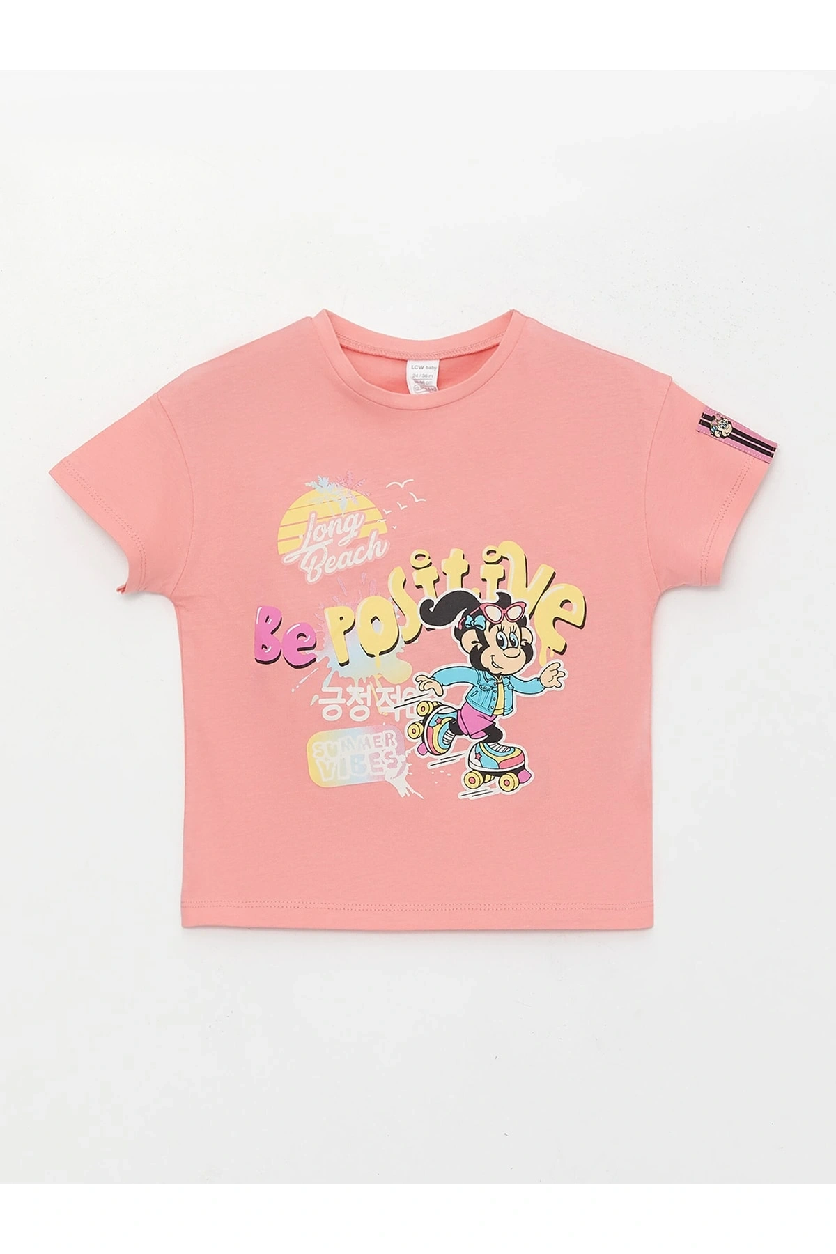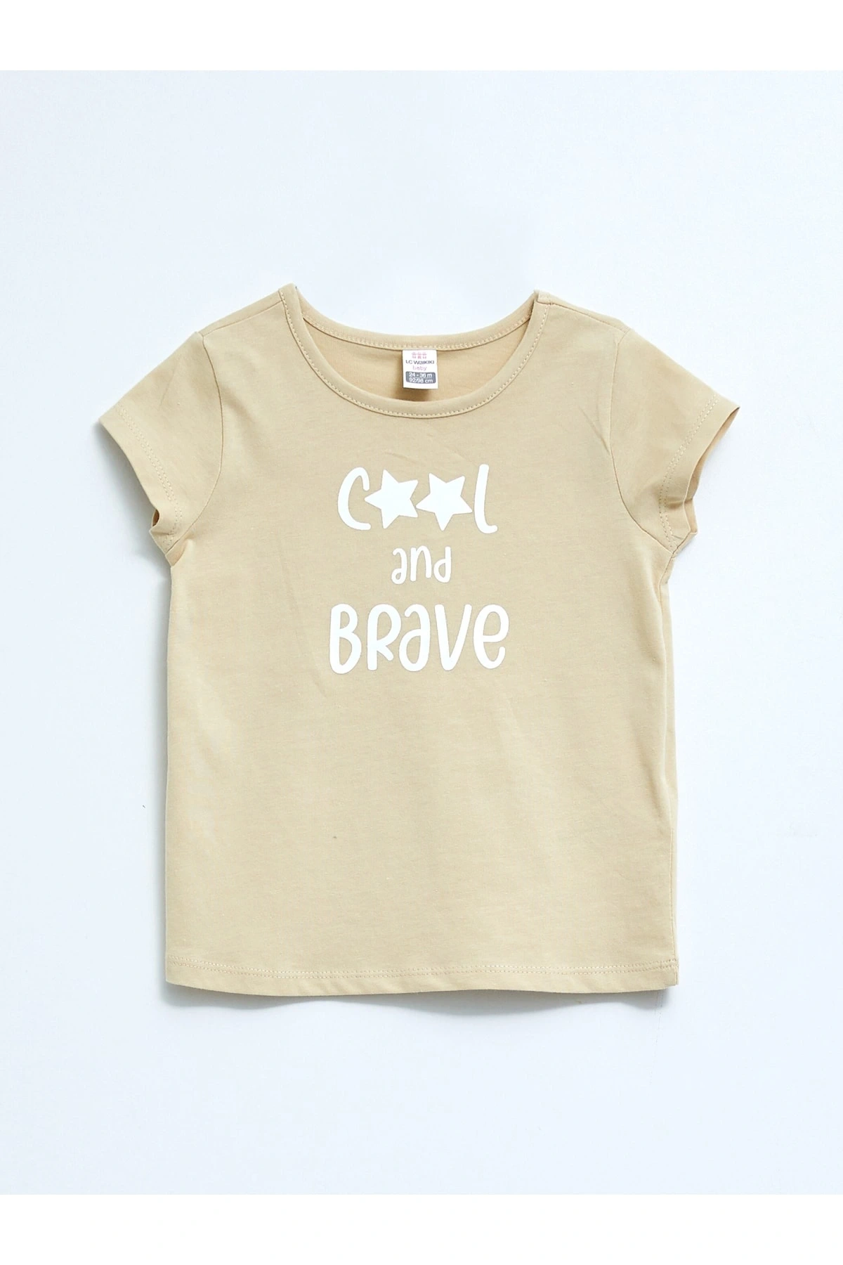 Bisiklet Yaka Kısa Kol Baskılı Pamuklu Kız Bebek Tişört