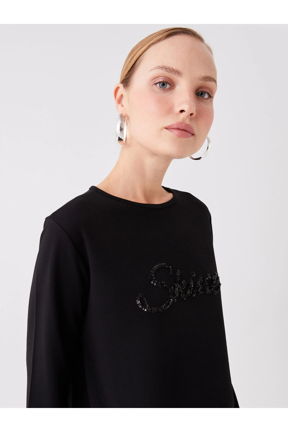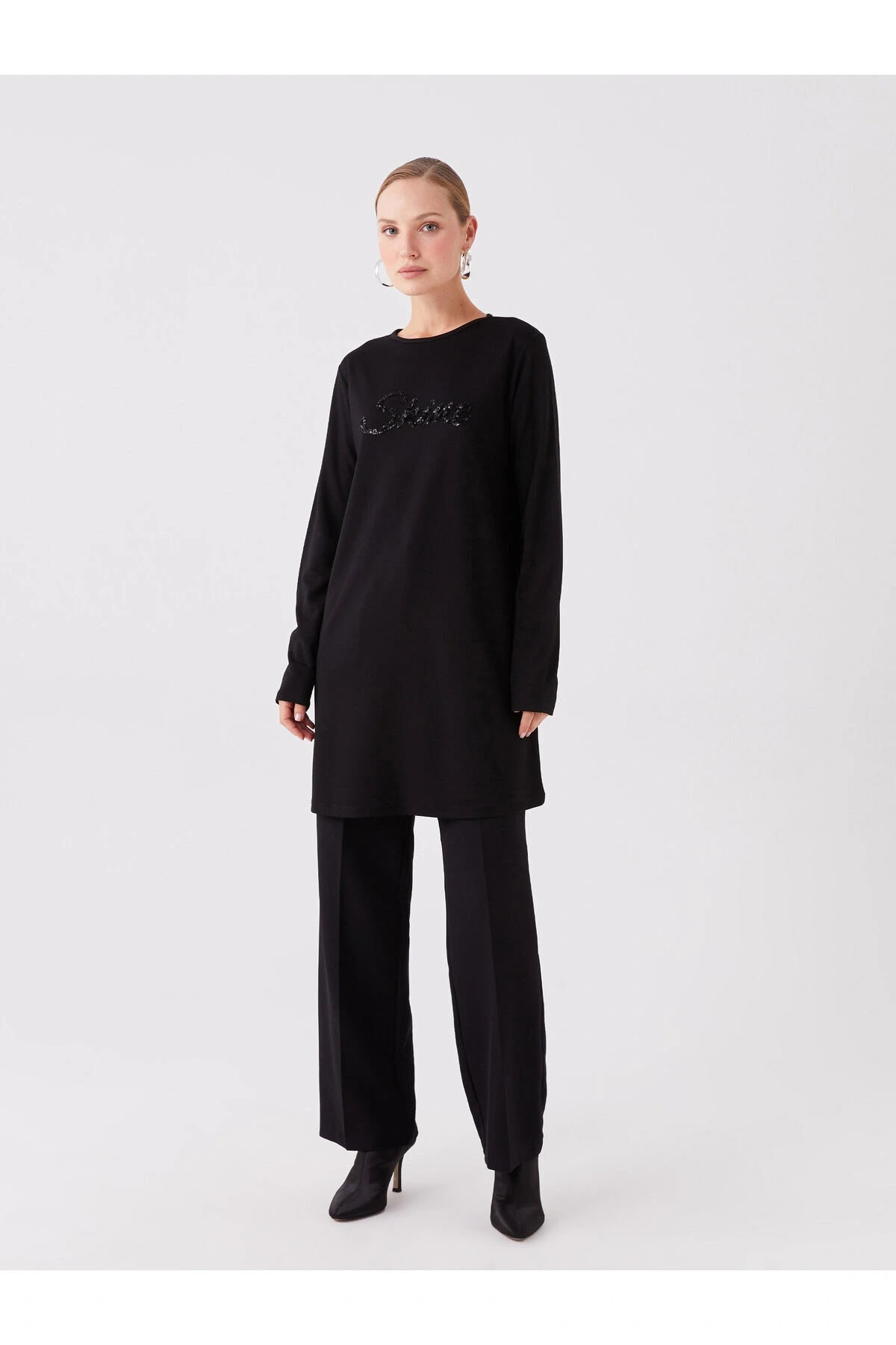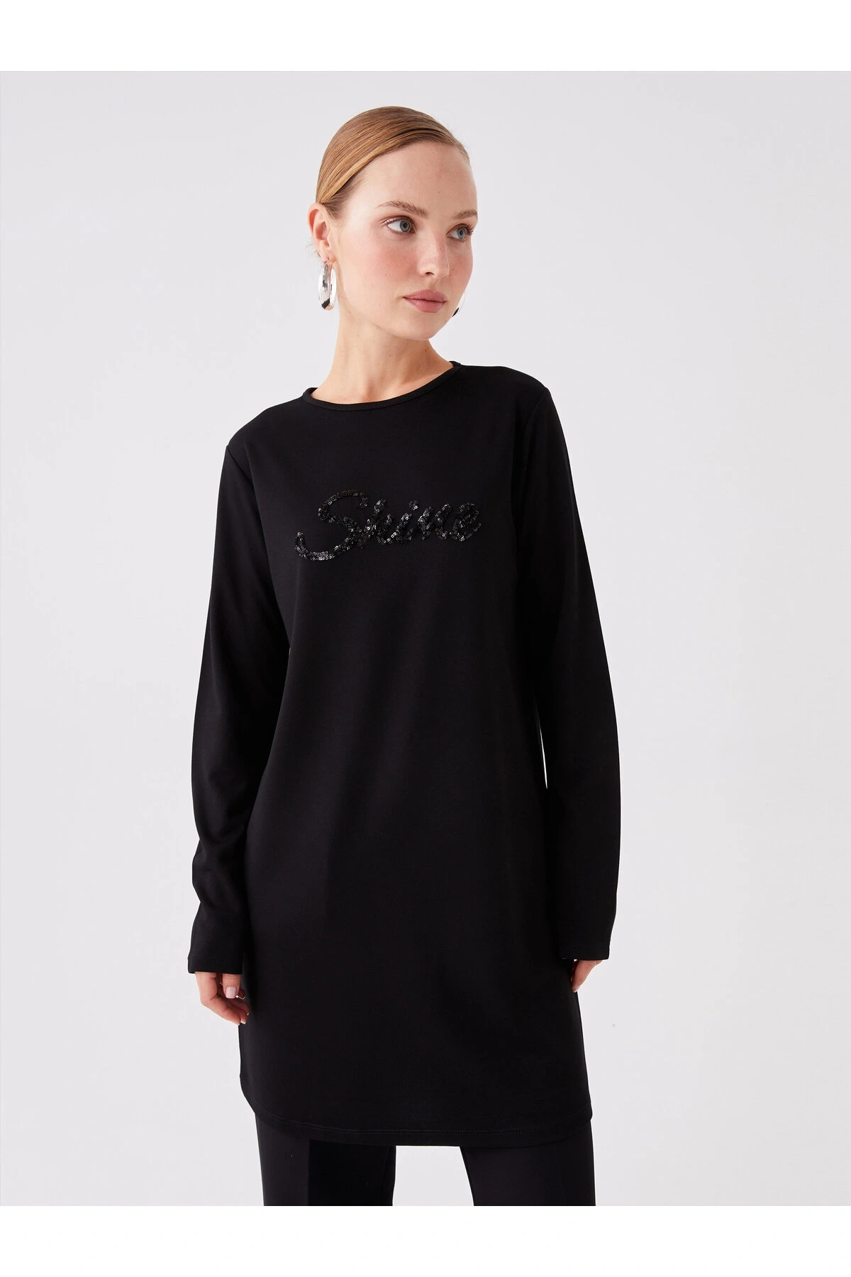 Bisiklet Yaka Payet İşlemeli Uzun Kollu Kadın Tunik