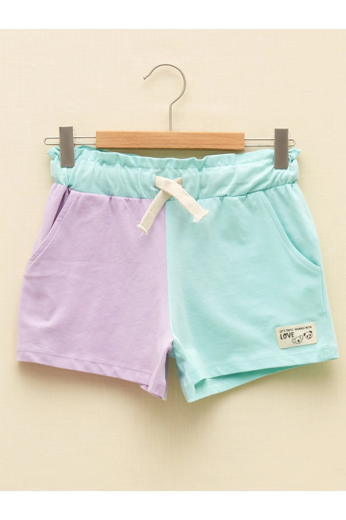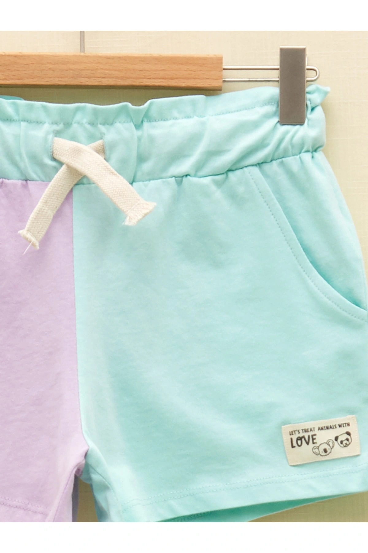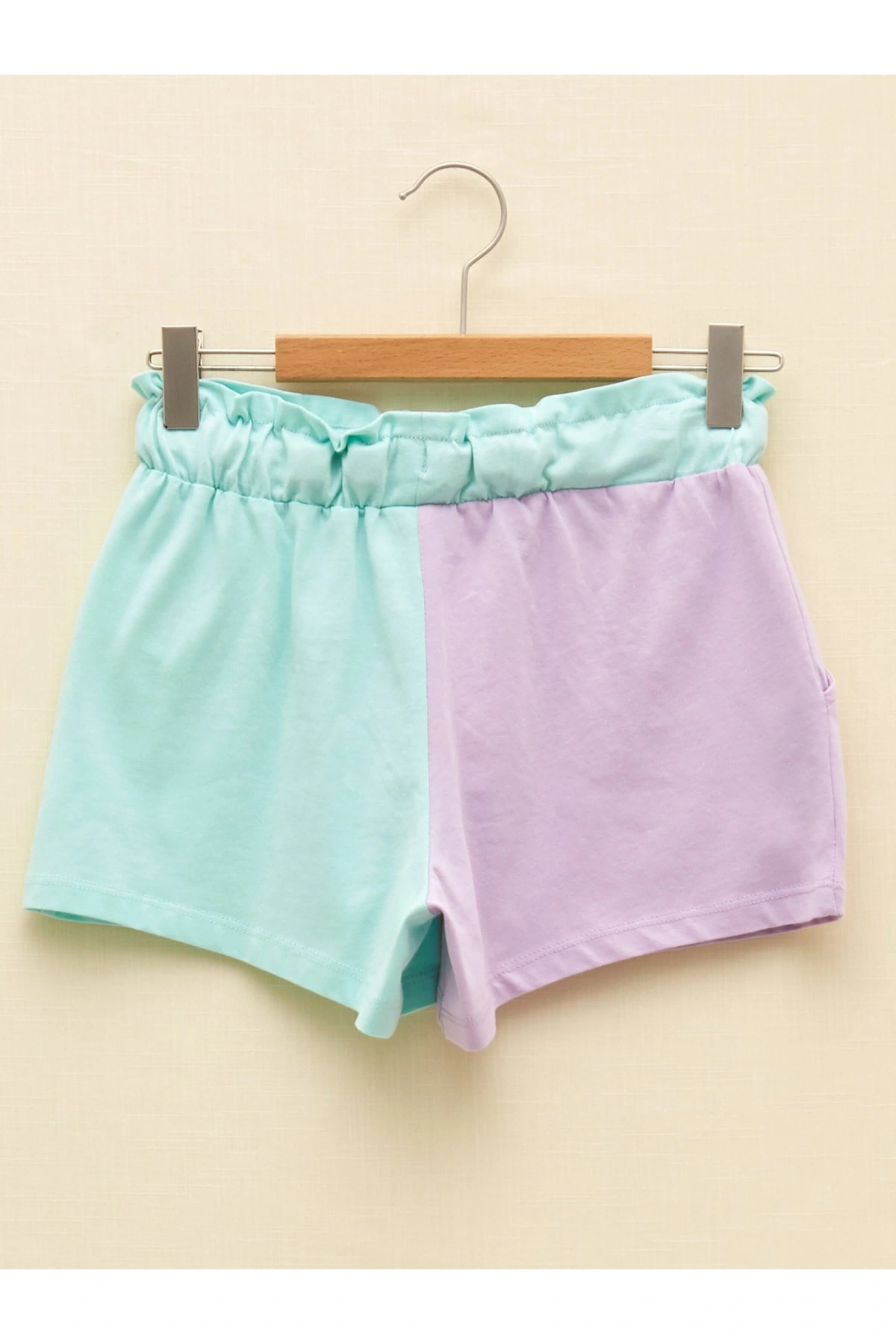 Beli Lastikli Renk Bloklu Kız Çocuk Şort