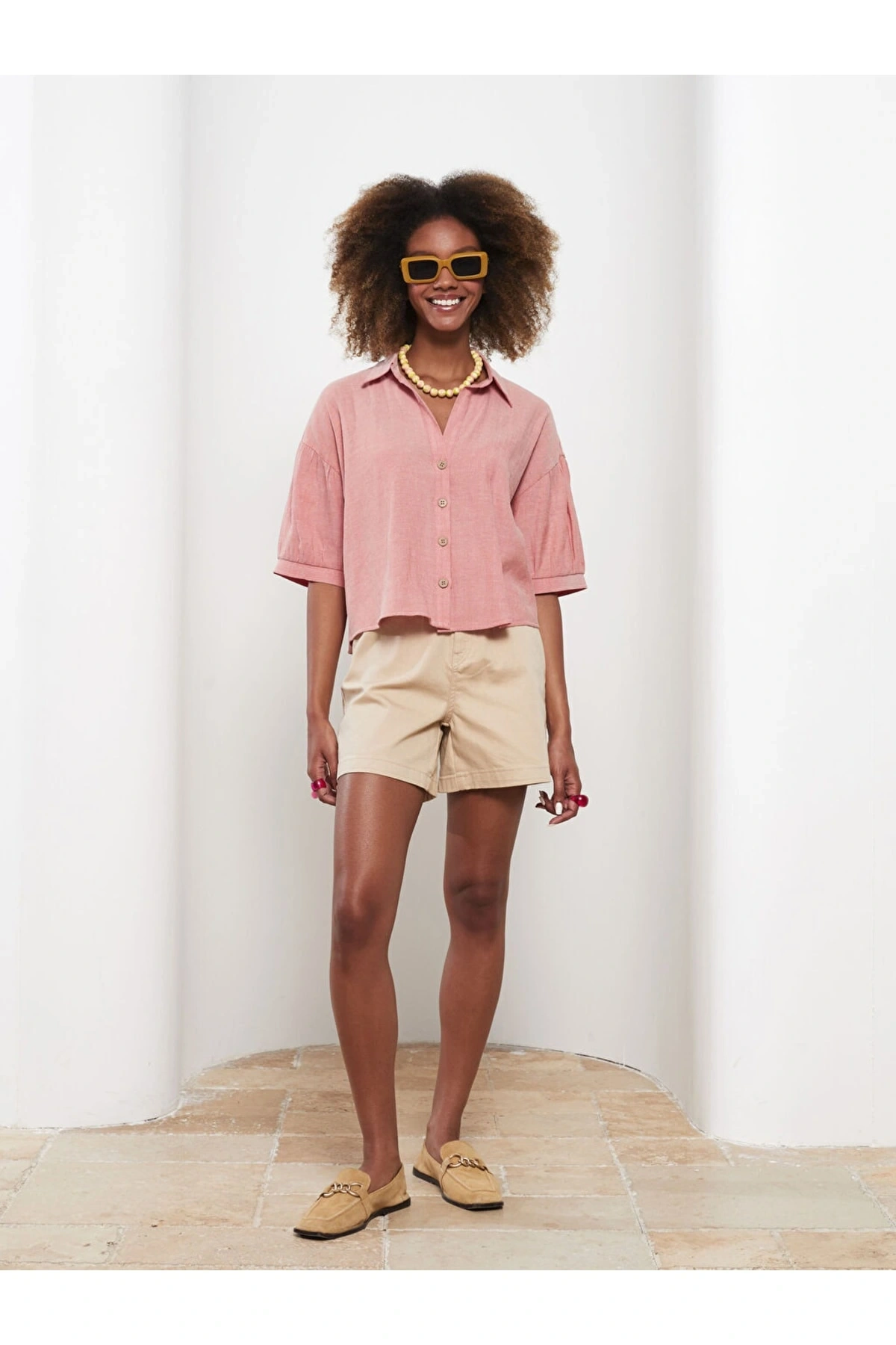 LCW Kids Pembe Kare Yaka Basic Kısa Kollu Kız Çocuk Gömlek