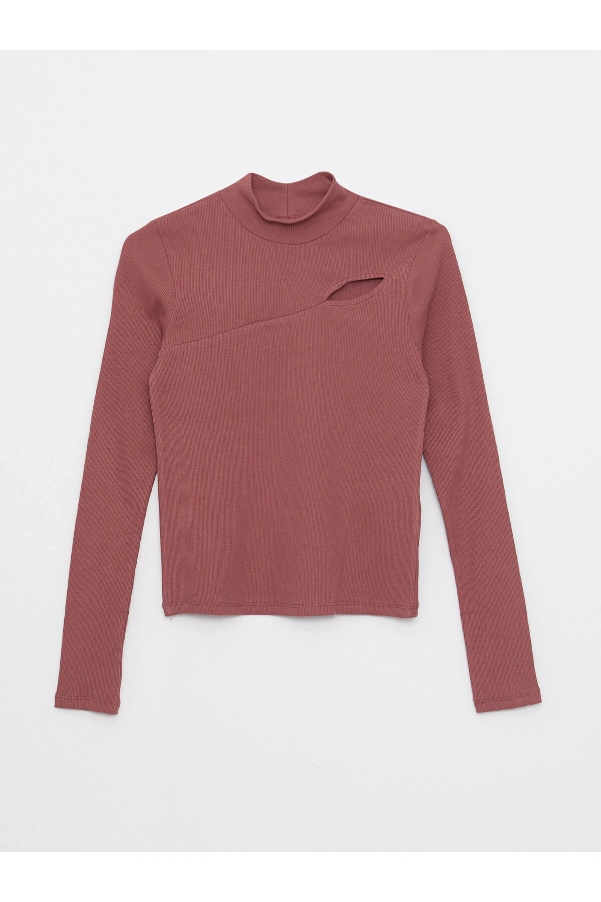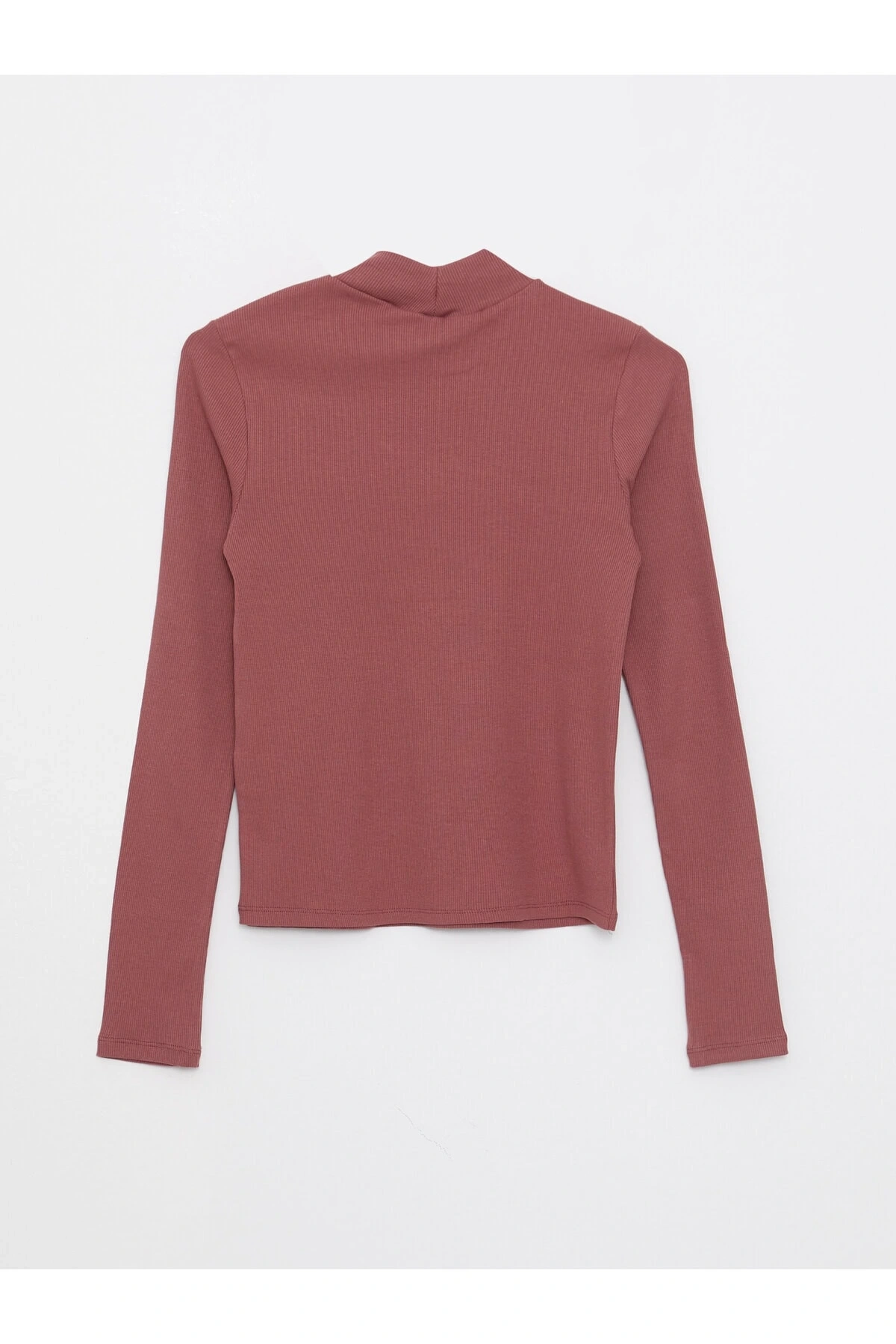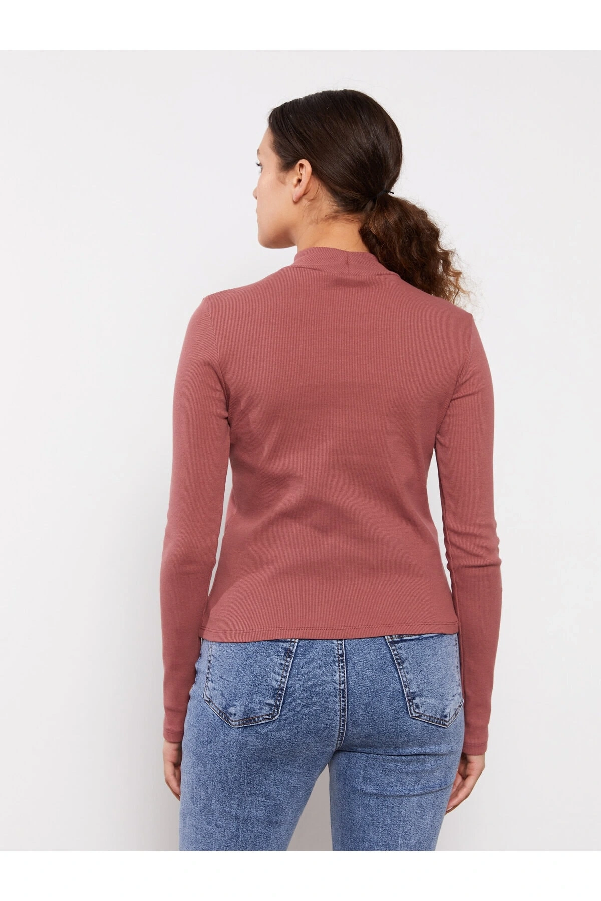 Dik Yaka Düz Uzun Kollu Kadın Tişört