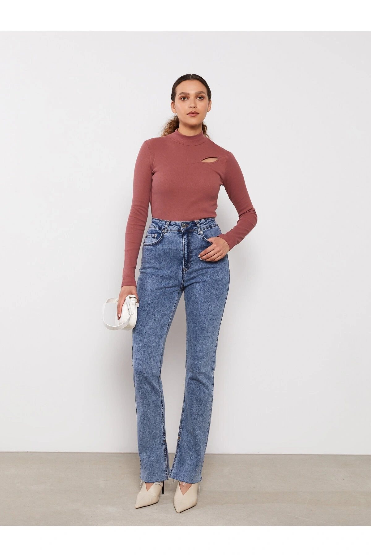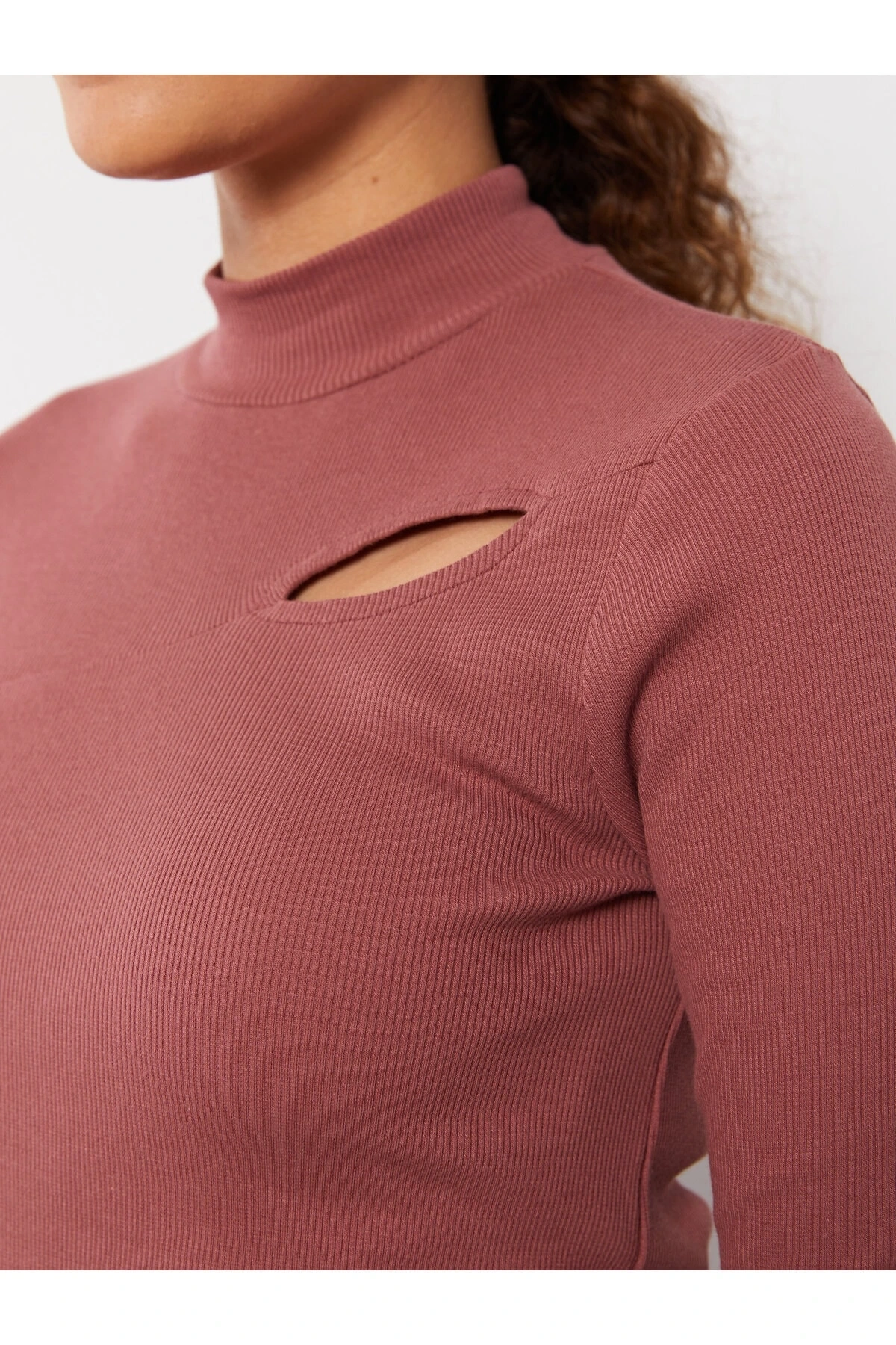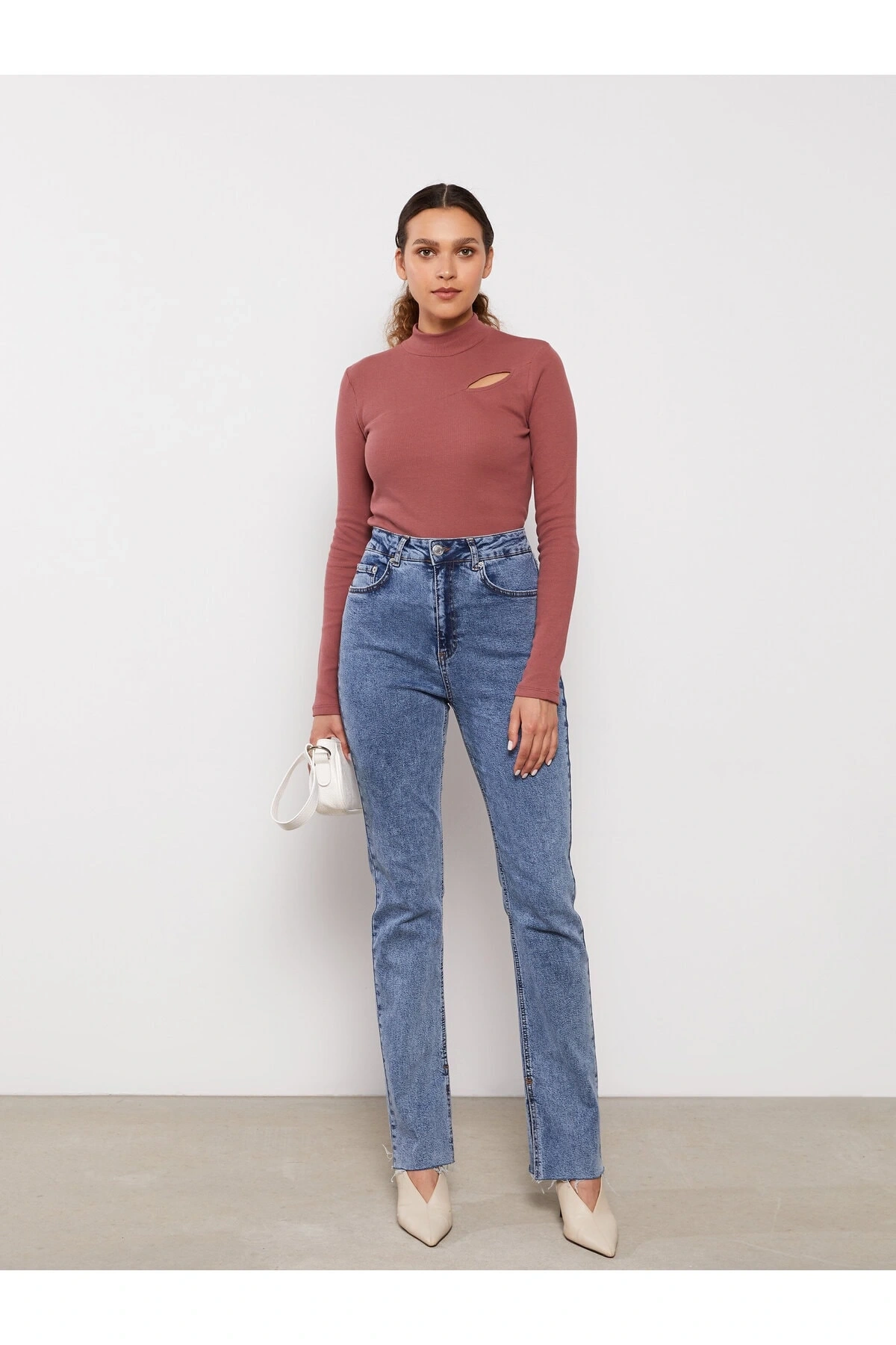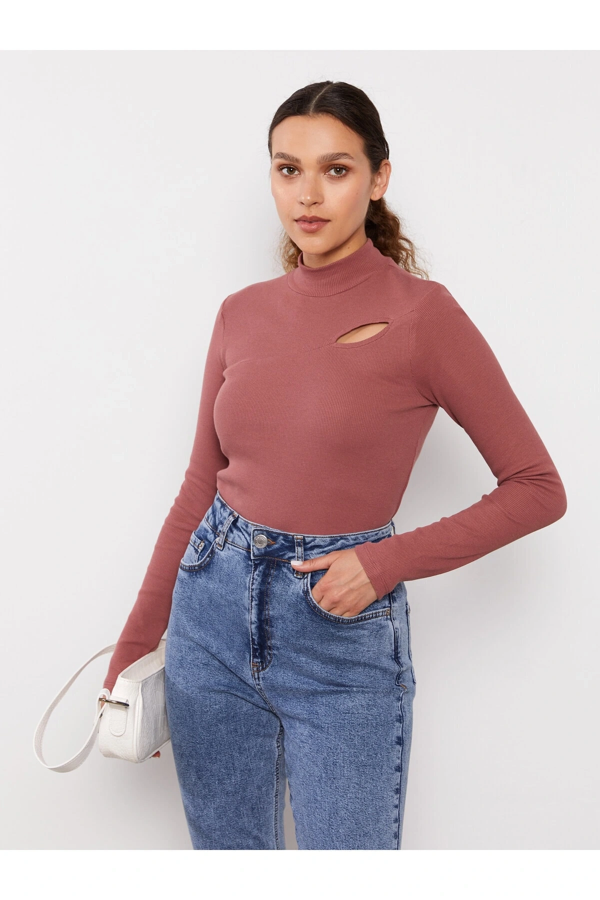 Dik Yaka Düz Uzun Kollu Kadın Tişört