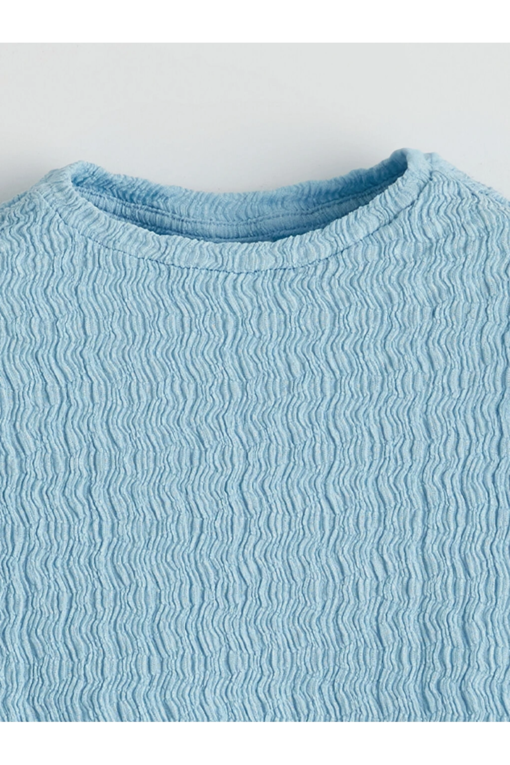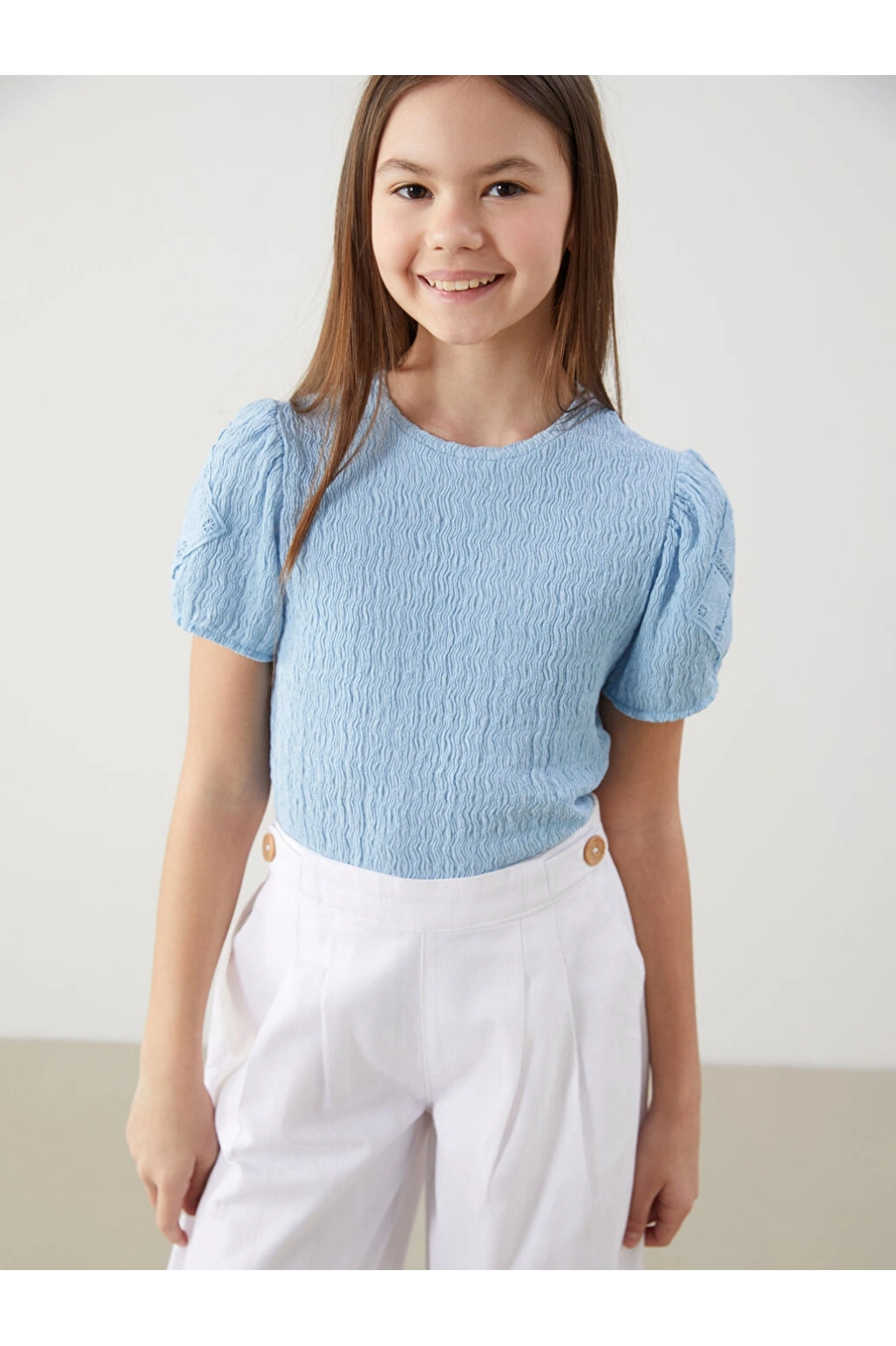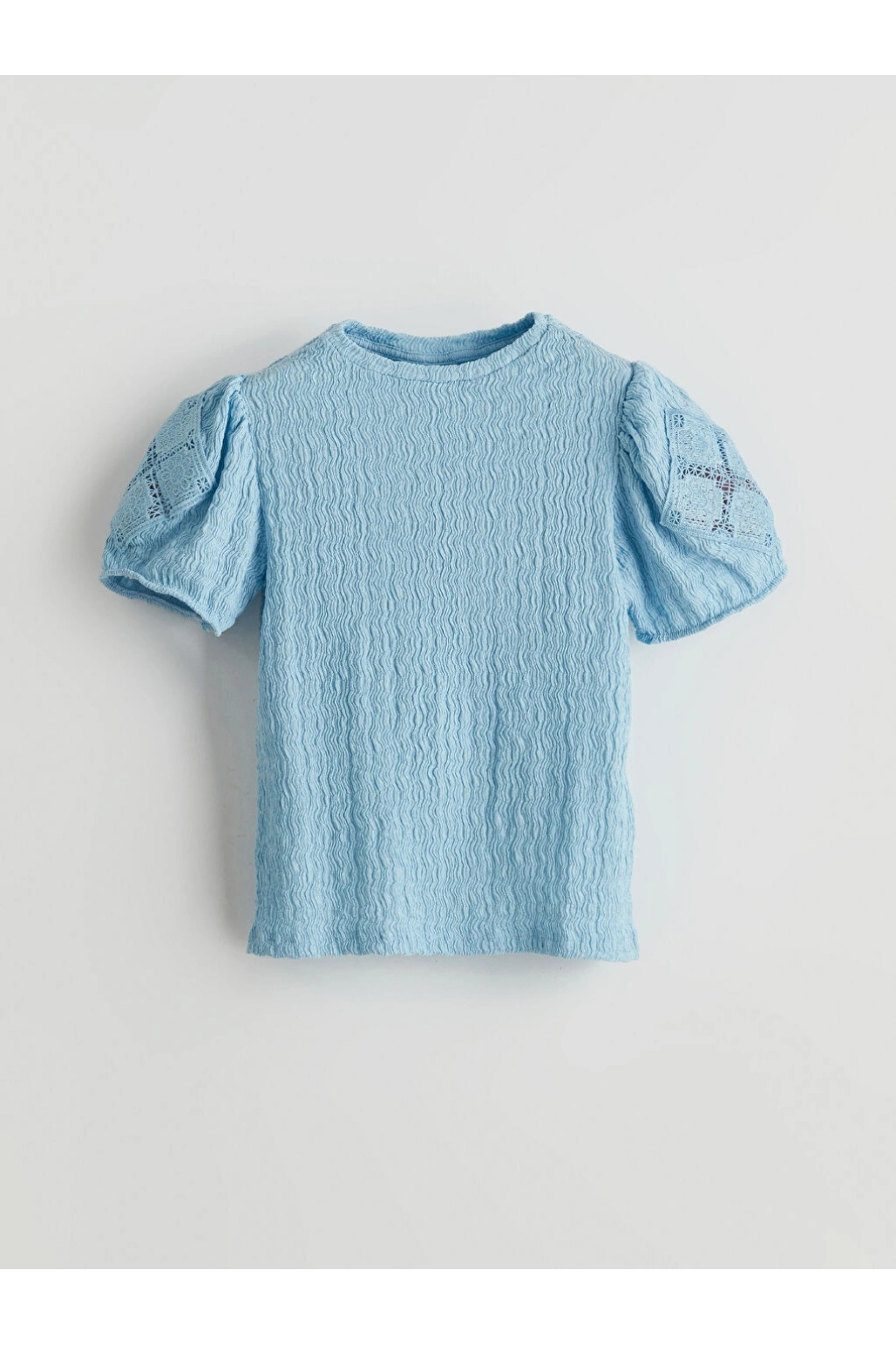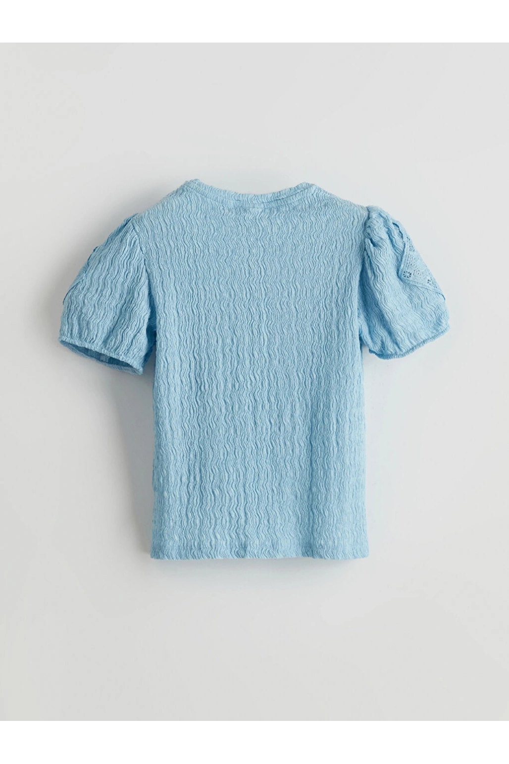 LCW Kids Mavi Bisiklet Yaka Dokulu Kız Çocuk Tişört